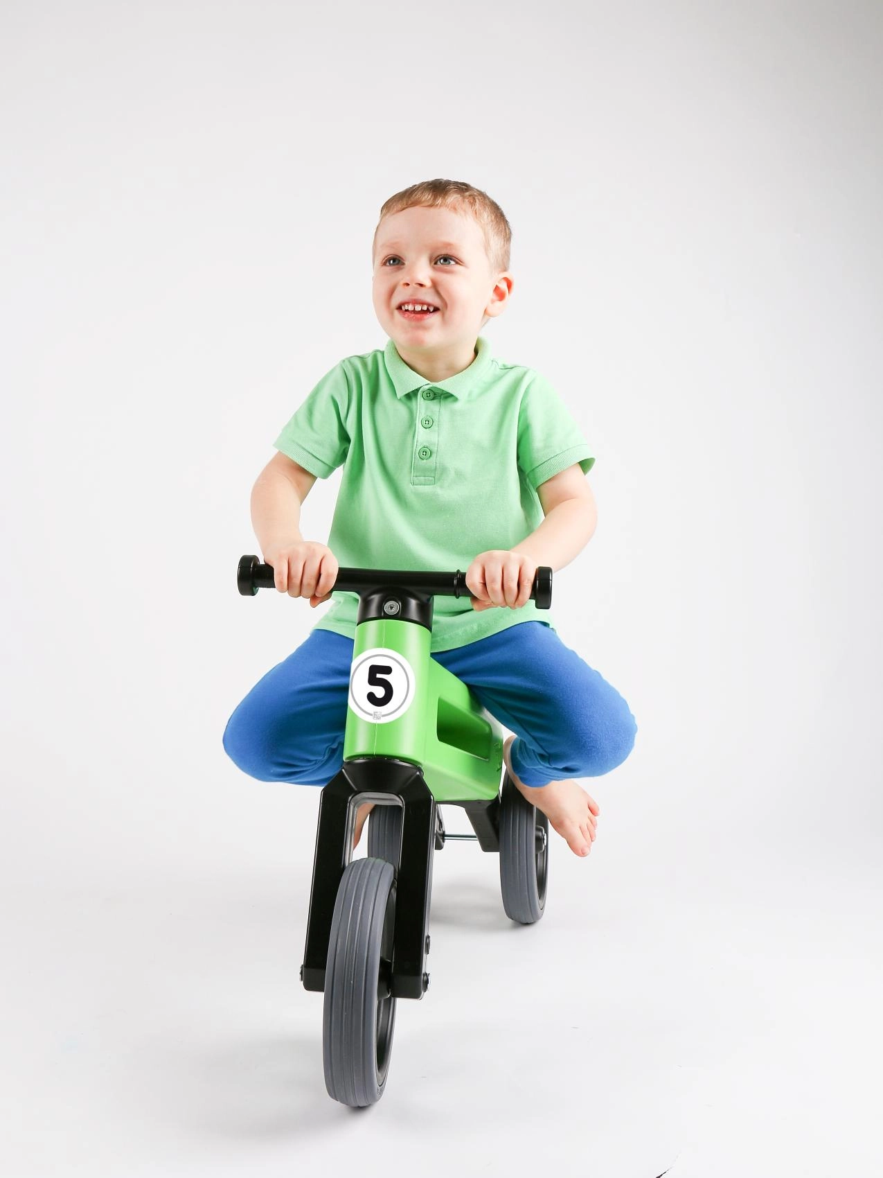 Začnite stabilnou trojkolkou a neskôr prejdite na dvojkolesové odrážadlo na tréning rovnováhy. Všetko potrebné je v balení.