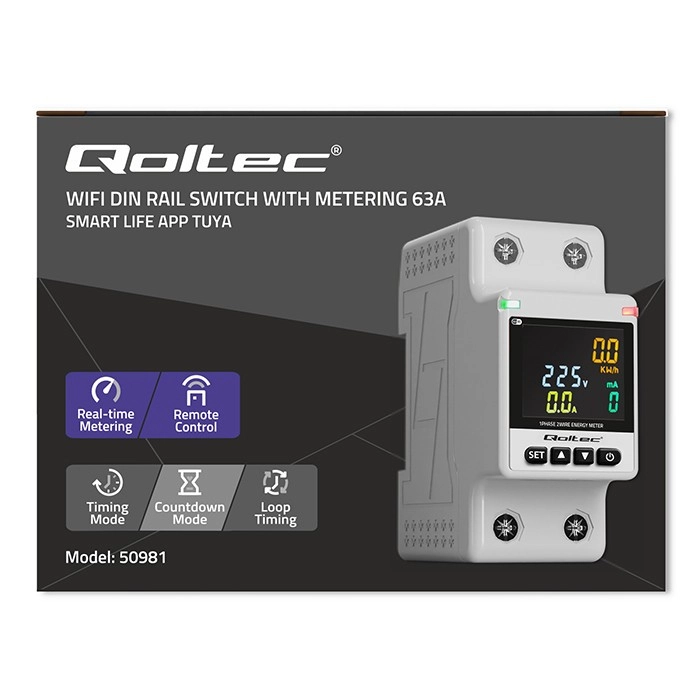 Tento kompaktný jednofázový, dvojvodičový elektromer na montáž na DIN lištu 35 mm prináša presné meranie a pohodlné ovládanie. LCD displej zobrazuje kľúčové parametre v reálnom čase, zatiaľ čo Wi‑Fi pripojenie umožňuje vzdialenú kontrolu cez TUYA / Smart Life v systémoch Android a iOS. Zariadenie je vhodné pre domácnosti, kancelárie, dielne aj ľahký priemysel.