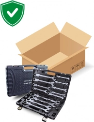 Kľúče sú vyrobené z chróm‑vanádiovej ocele (CrV) pre vysokú odolnosť voči opotrebovaniu, korózii aj deformáciám. Ergonomický tvar zaisťuje istý úchop a efektívny prenos sily, zatiaľ čo odolný prepravný kufor udržiava náradie prehľadne usporiadané a chránené pri transporte.