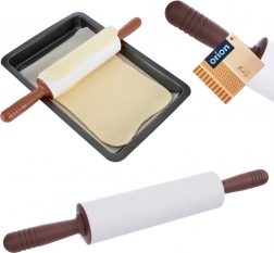 Rukoväte z pevného plastu v hnedej farbe majú protišmykový a ergonomický tvar, takže valček drží isto a pohodlne. Silikón odoláva teplotám od -40 °C do +220 °C, čo oceníte pri každodennom pečení aj profesionálnom použití.