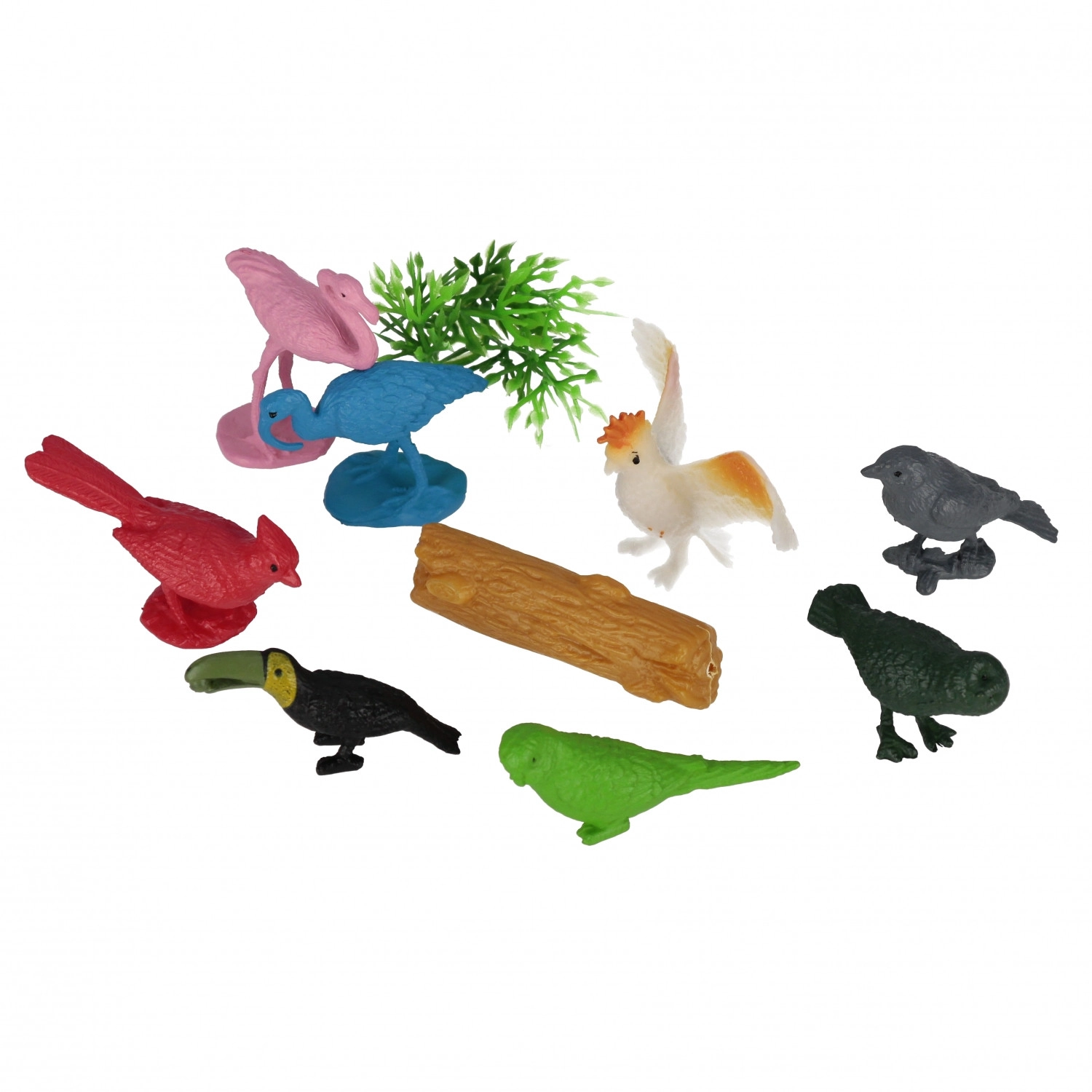 - 8 figúrok vtákov + dekorácie (strom, tráva) na tvorbu realistických scén