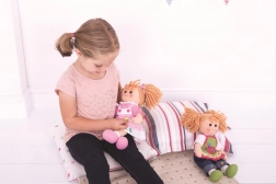 Doprajte svojej bábike nový outfit: nežné kvetinové šaty doplnené tyrkysovým svetríkom a ladiacou čelenkou. Oblečky sú navrhnuté pre látkové bábiky s veľkosťou 38 cm a ľahko sa obliekajú, takže deti zvládnu prezliekanie samy a posilnia si jemnú motoriku aj sebestačnosť.