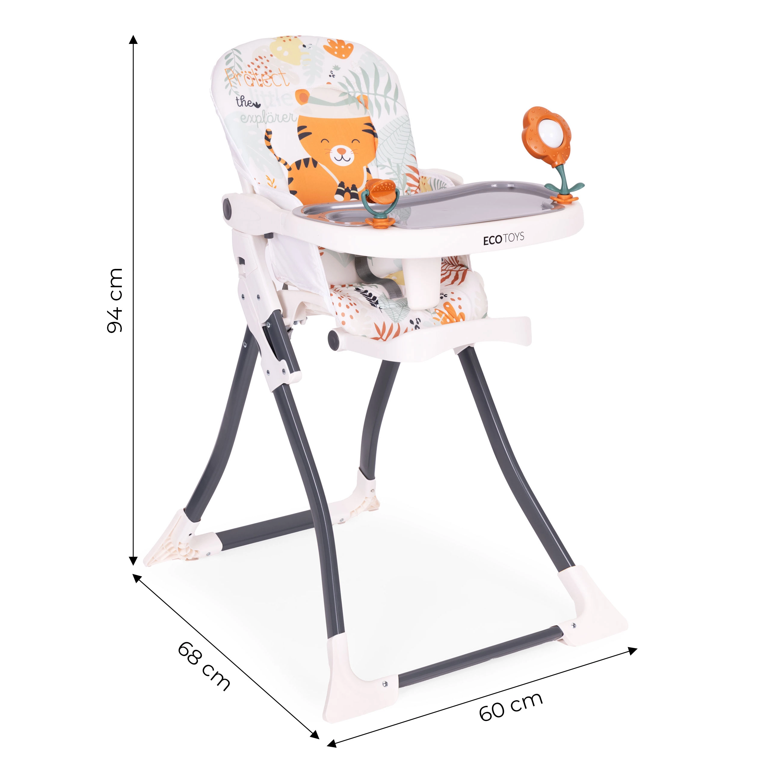 Jedálenská stolička ECOTOYS uľahčí spoločné stolovanie aj prvé pokusy o samostatné jedenie. Široký pultík ponúka dosť miesta na tanierik aj hranie a zmyslovú stimuláciu vďaka integrovaným hračkám. Odnímateľný poťah z elastanu a dvojitý pult s hornou snímateľnou vrstvou zaručia rýchle čistenie.