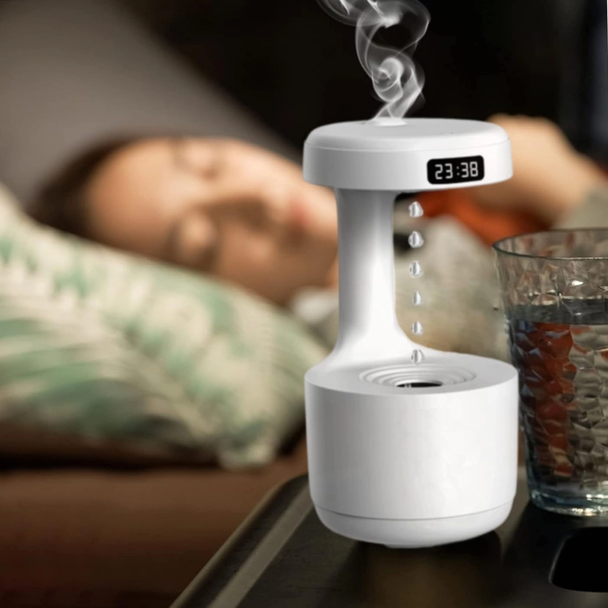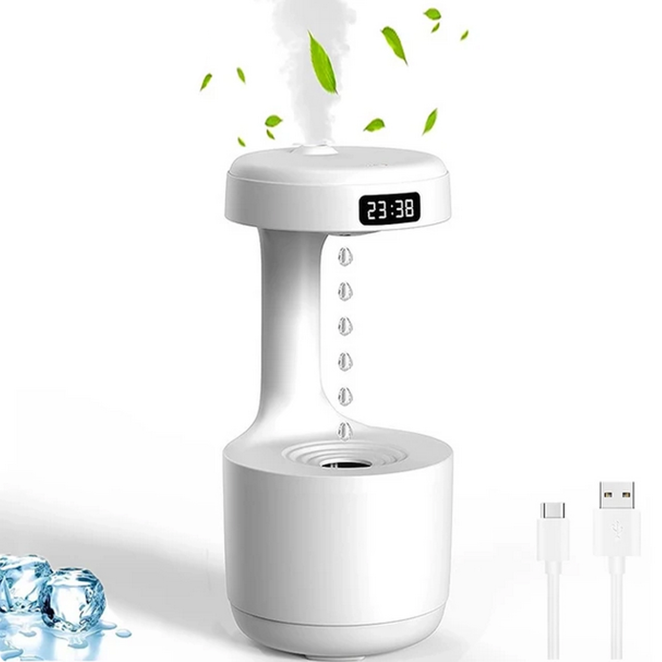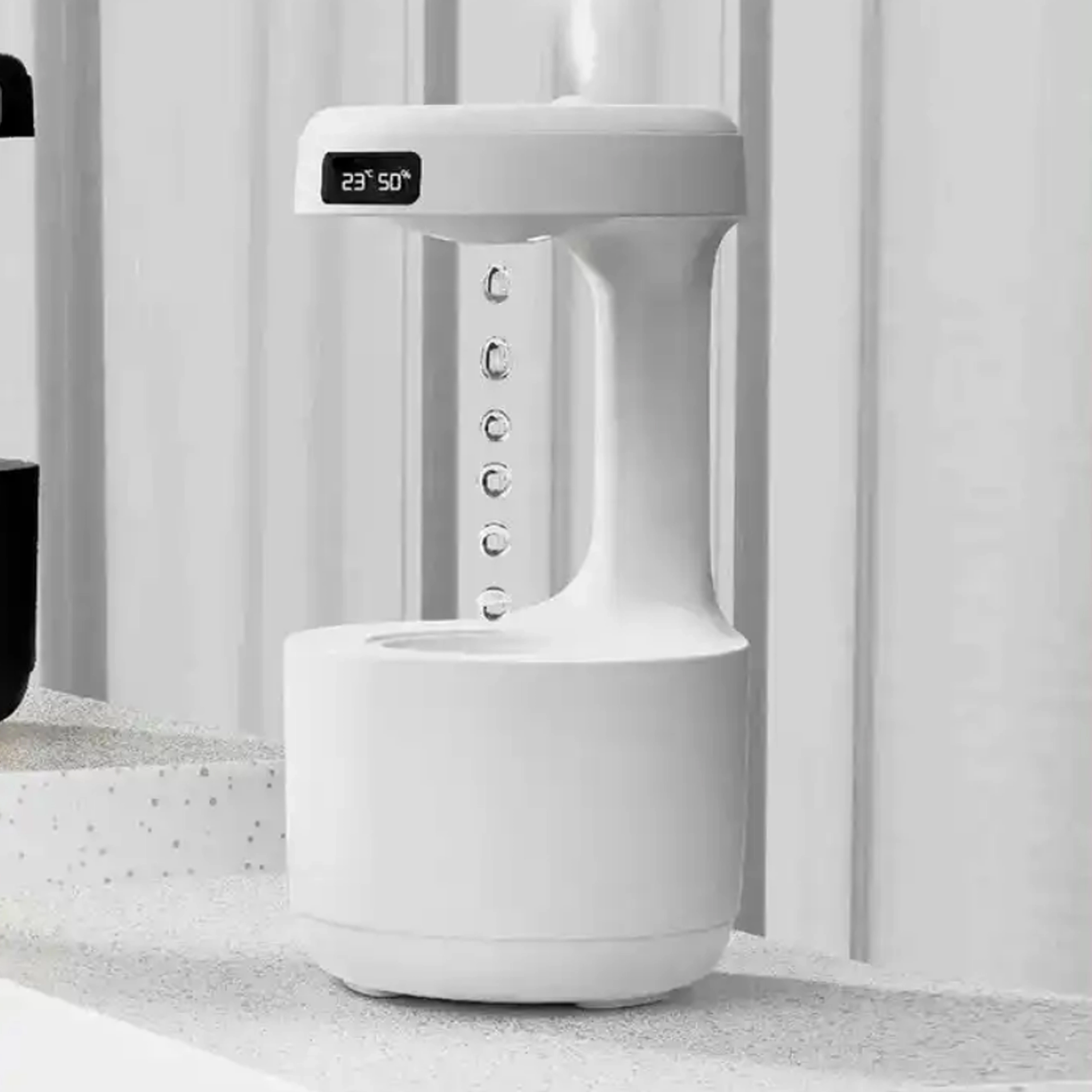Antigravitačný zvlhčovač vzduchu prináša pôsobivý vizuálny efekt „stúpajúcich kvapiek“ a zároveň účinne zvyšuje vlhkosť v interiéri. Vďaka pokročilej technológii vytvára jemnú hmlu, ktorá pomáha zmierniť suchý vzduch, podráždenie slizníc a uľahčuje dýchanie počas dňa aj v noci. Integrovaný LED displej zobrazuje čas a stav, zatiaľ čo tichý chod neruší spánok.