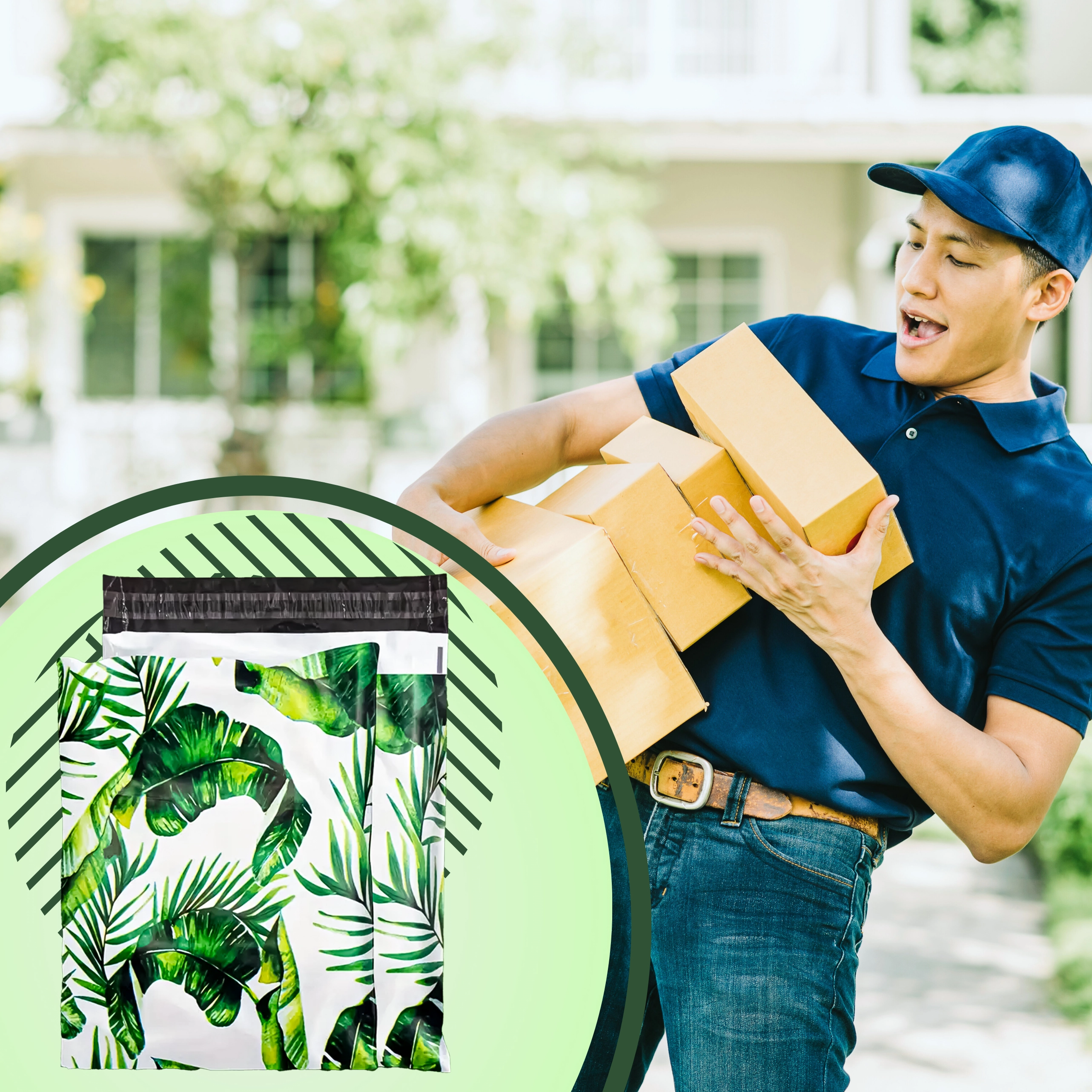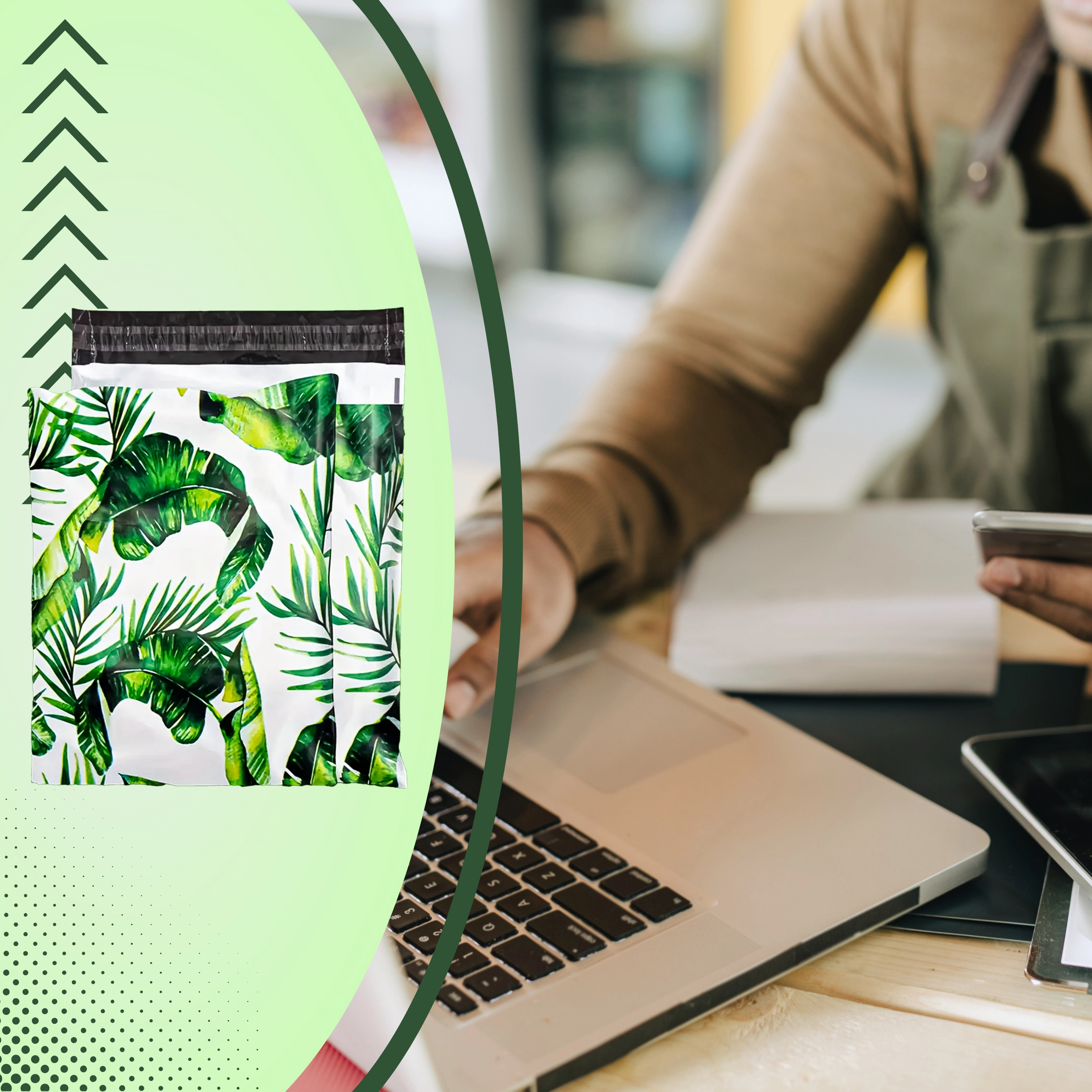 Hľadáte spoľahlivé a atraktívne balenie pre e‑shop alebo domáce zásielky? Tieto plastové poly mailery s motívom zelených listov kombinujú odolnosť, nízku hmotnosť a profesionálny vzhľad. Rozmer 255 × 370 mm je ideálny pre textil, doplnky, tlačoviny a ďalšie ľahšie produkty.