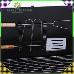 Vďaka vetracím otvorom je spaľovanie uhlia účinnejšie, takže pokrmy pripravíte rýchlejšie a rovnomernejšie. Na bokoch nájdete praktické úchyty pre jednoduché prenášanie. V balení navyše dostanete základné príslušenstvo – lopatku, kliešte a špíz, aby ste mohli začať grilovať ihneď.