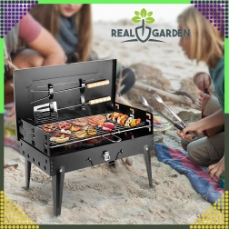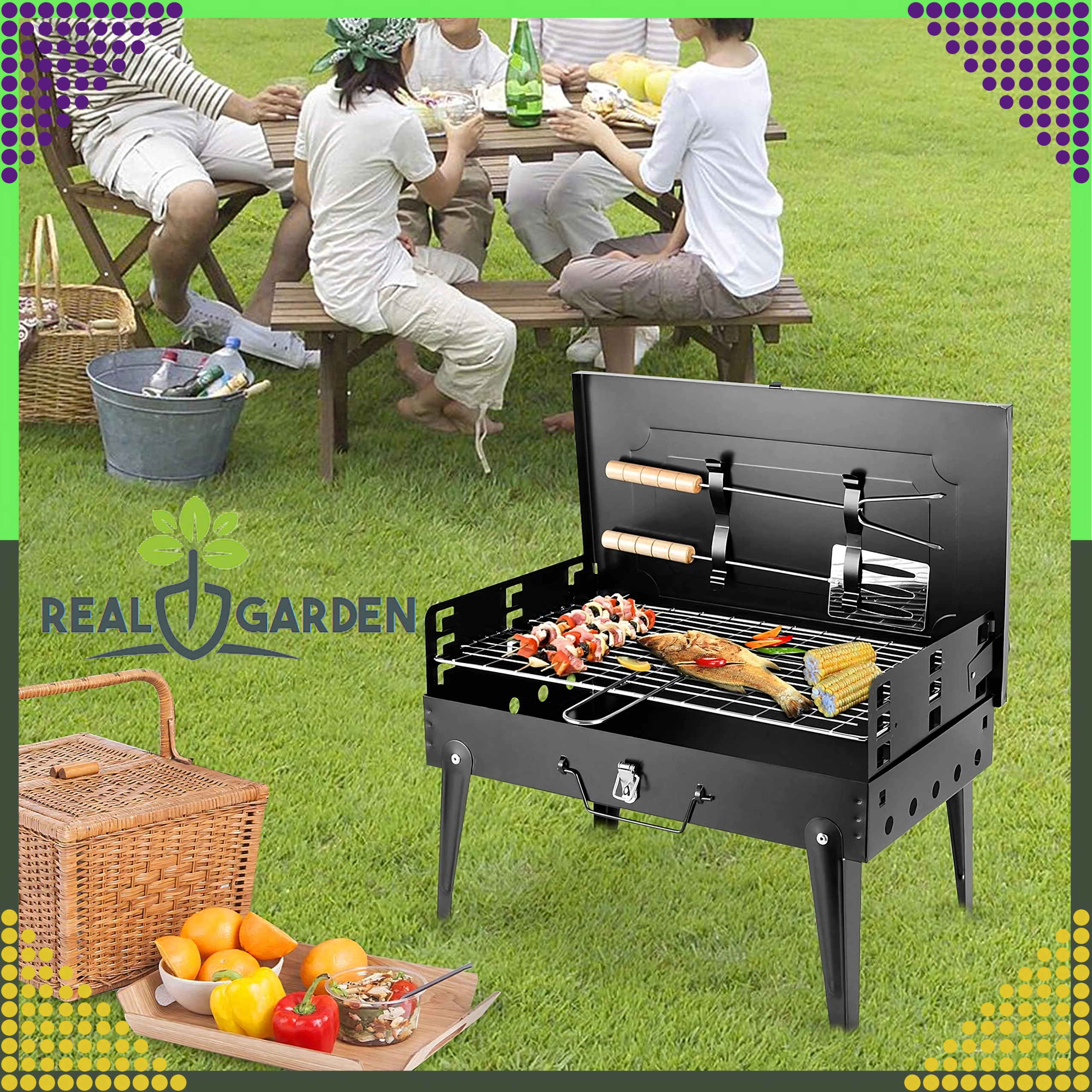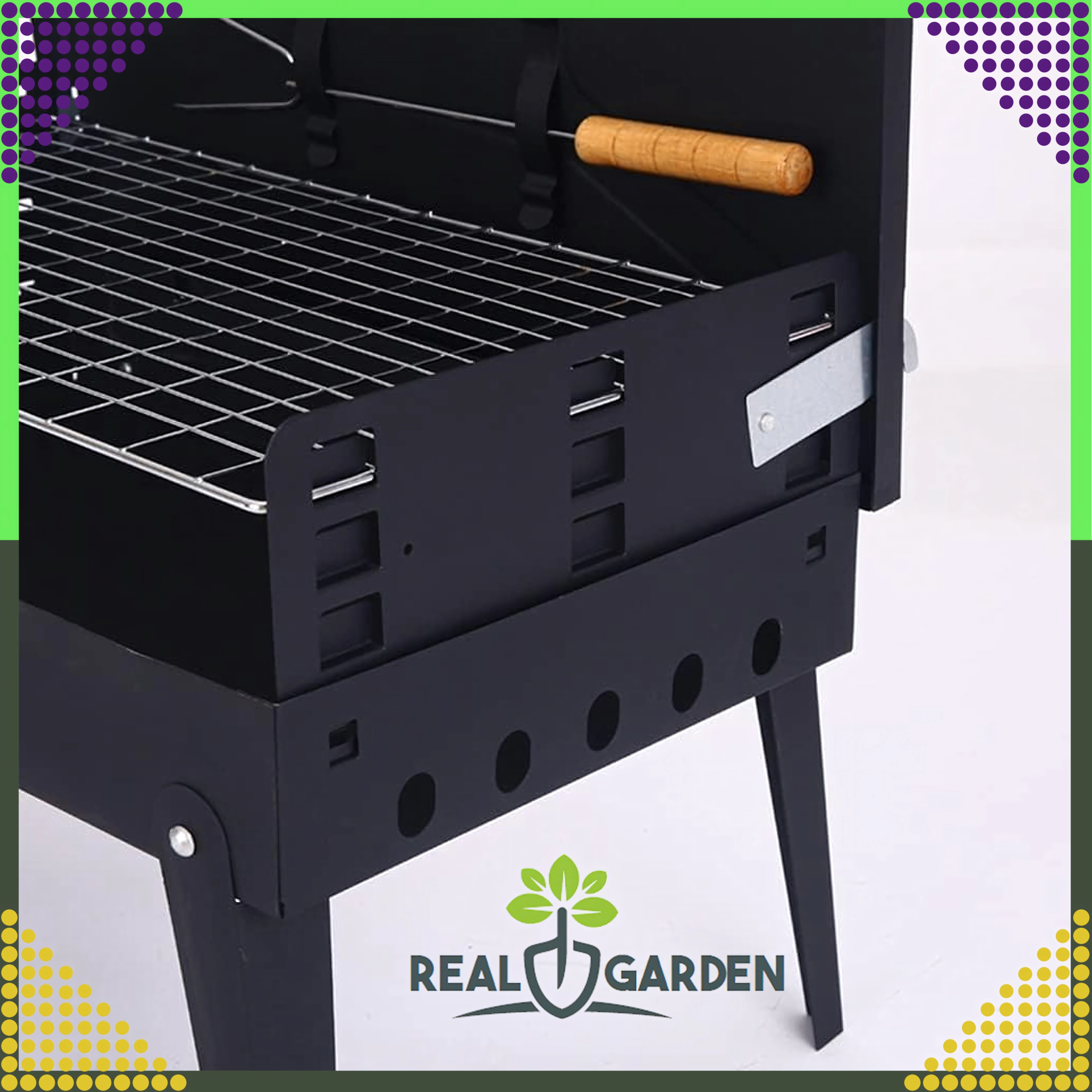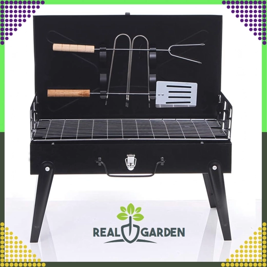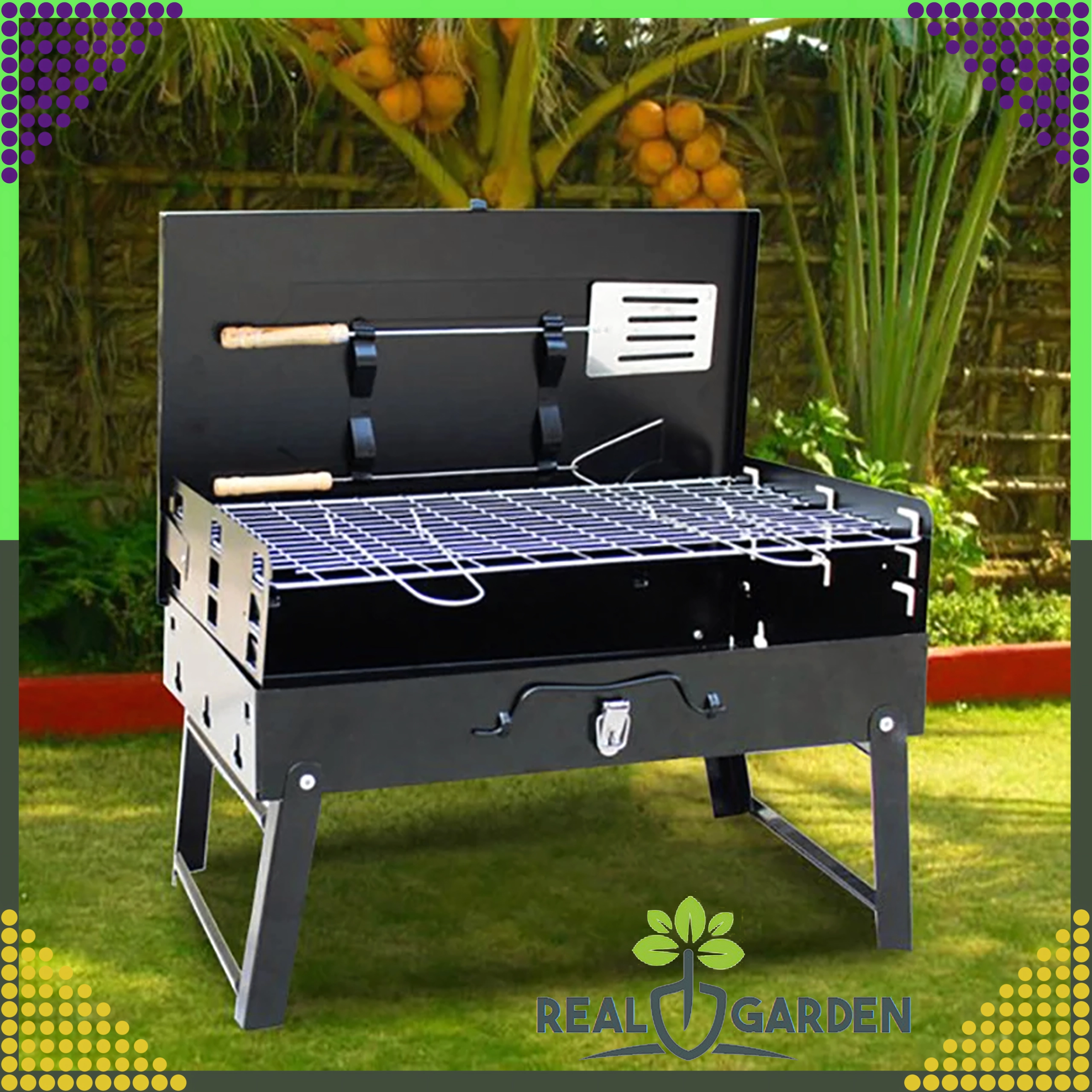 Užite si grilovanie kdekoľvek s týmto skladacím a prenosným uhlíkovým grilom v praktickom kufríkovom dizajne. Rýchla montáž bez náradia, stabilná konštrukcia a kompaktné rozmery 44 × 27 × 47 cm z neho robia ideálnu voľbu na kempovanie, záhradu aj piknik. Súčasťou je rošt aj základné grilovacie náradie (lopatka, kliešte, špíz). Vetracie otvory zabezpečujú efektívnejšie horenie a rýchlejšiu prípravu jedál.