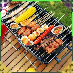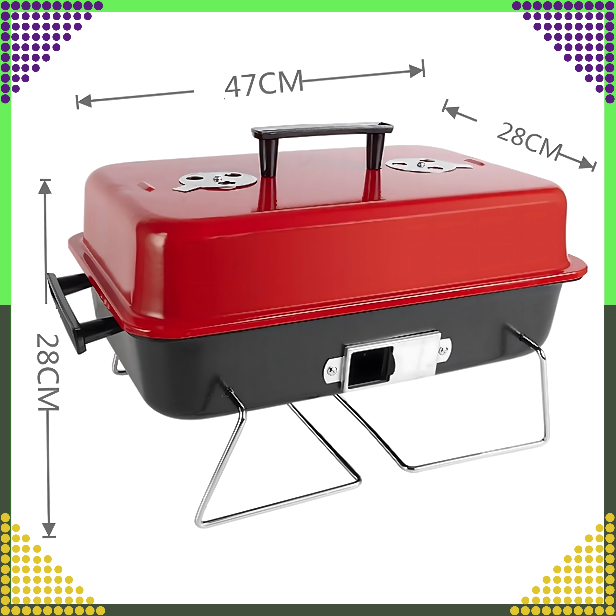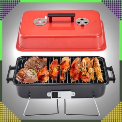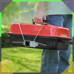 Kompaktný stolový gril na drevené uhlie s vekom je ideálny na kempovanie, piknik, pláž aj záhradu. Vďaka skladacím nohám a zámku veka sa ľahko prenáša, zmestí sa do kufra auta a ponúkne pohodlnú reguláciu teploty pomocou vetracích otvorov. Chrómovaný rošt zabezpečí rovnomerné grilovanie a kompaktné rozmery 43 × 28 × 26 cm uľahčia skladovanie.