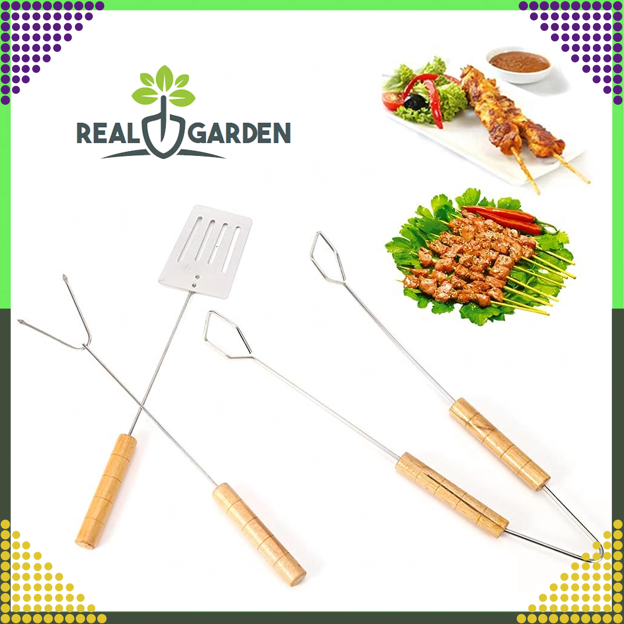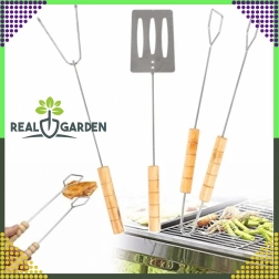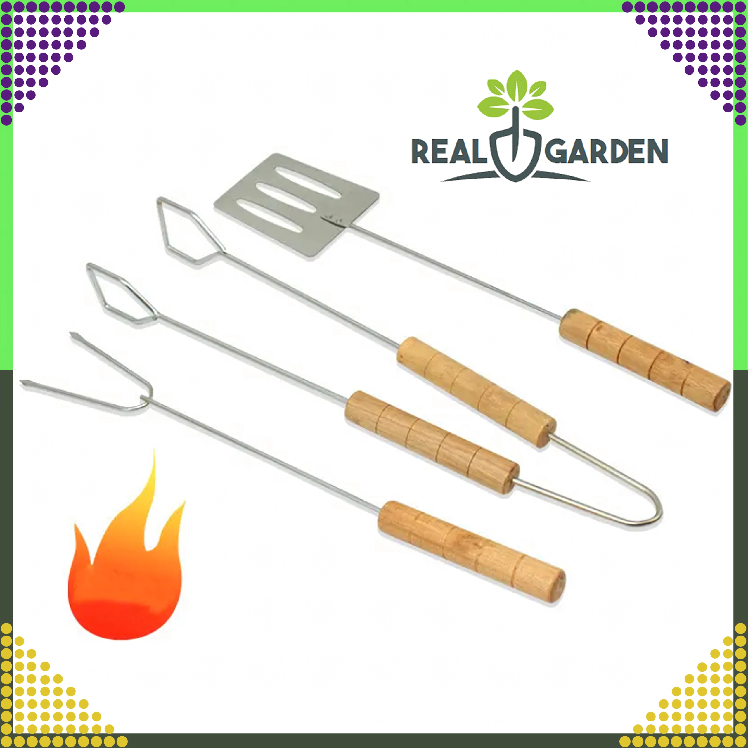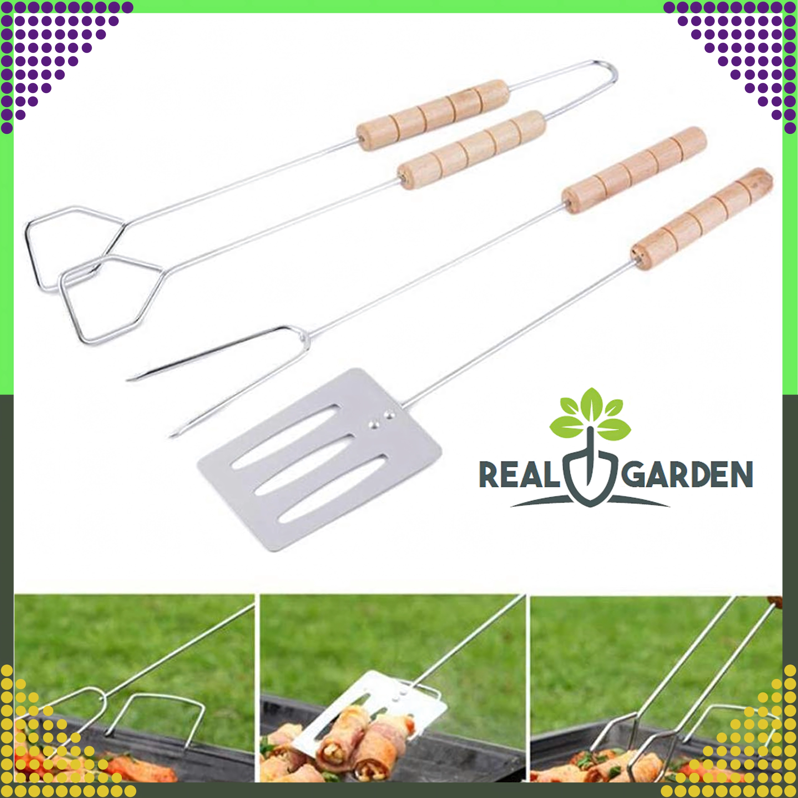 Praktická súprava grilovacieho náradia 3v1 urobí z každého grilovania radosť. Obsahuje kliešte, obracačku a vidlicu z nehrdzavejúcej ocele s pohodlnými drevenými rukoväťami pre pevný úchop a bezpečné ovládanie pri príprave mäsa aj zeleniny.