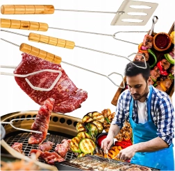 Tento univerzálny set je ideálny pre každého milovníka grilovania. Kvalitná nehrdzavejúca oceľ zaručuje odolnosť a jednoduchú údržbu, zatiaľ čo drevené, ergonomicky tvarované rukoväte poskytujú komfort aj pri dlhšom používaní. Pripravte si burgery, špízy či zeleninu ako profesionál – ľahko a s prehľadom.