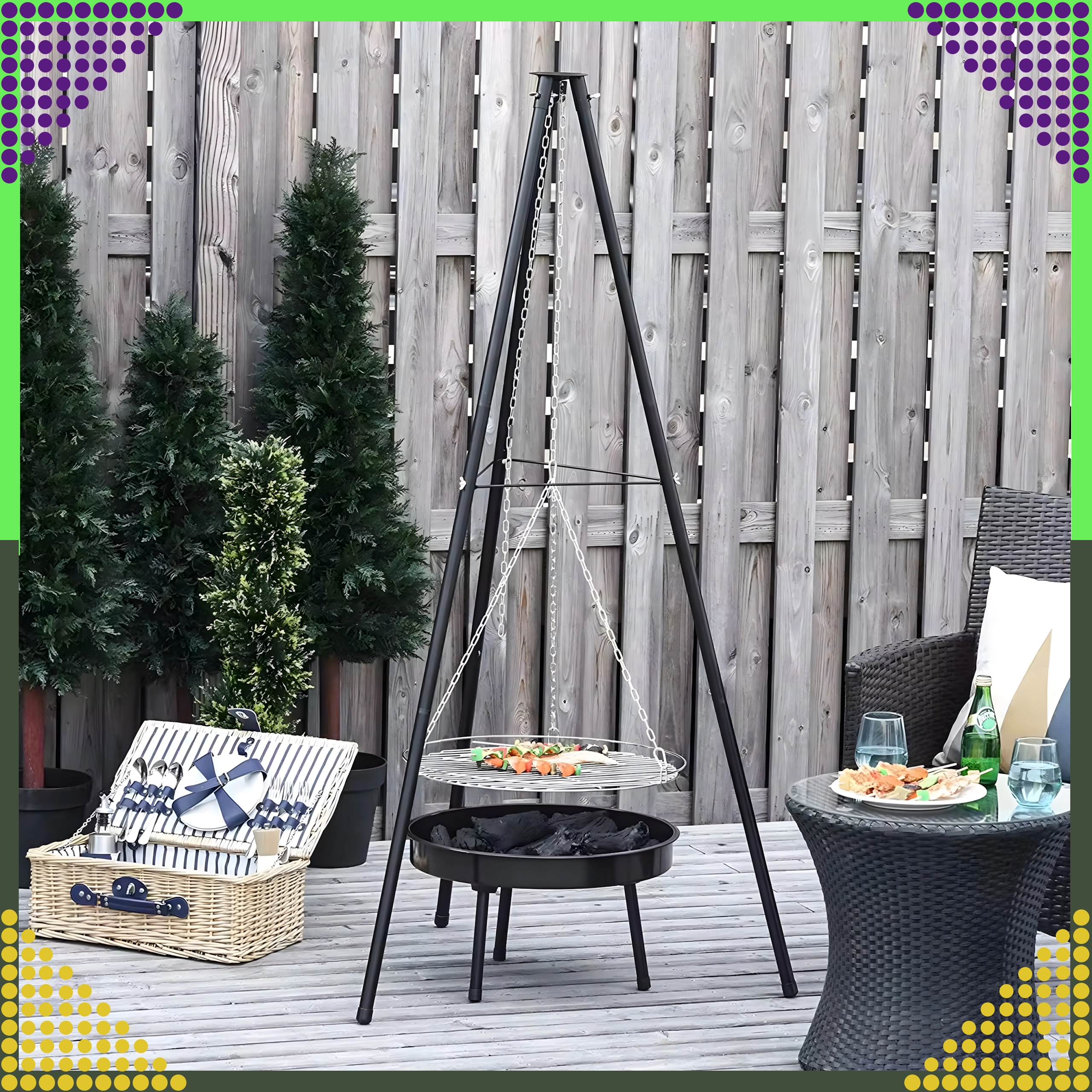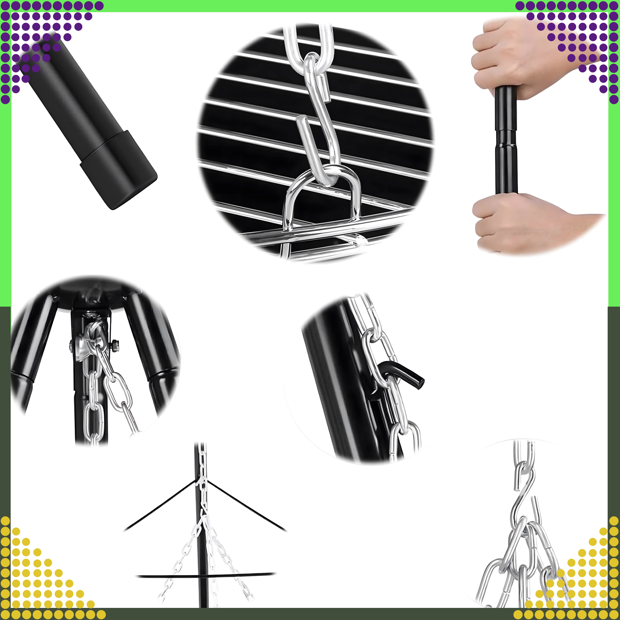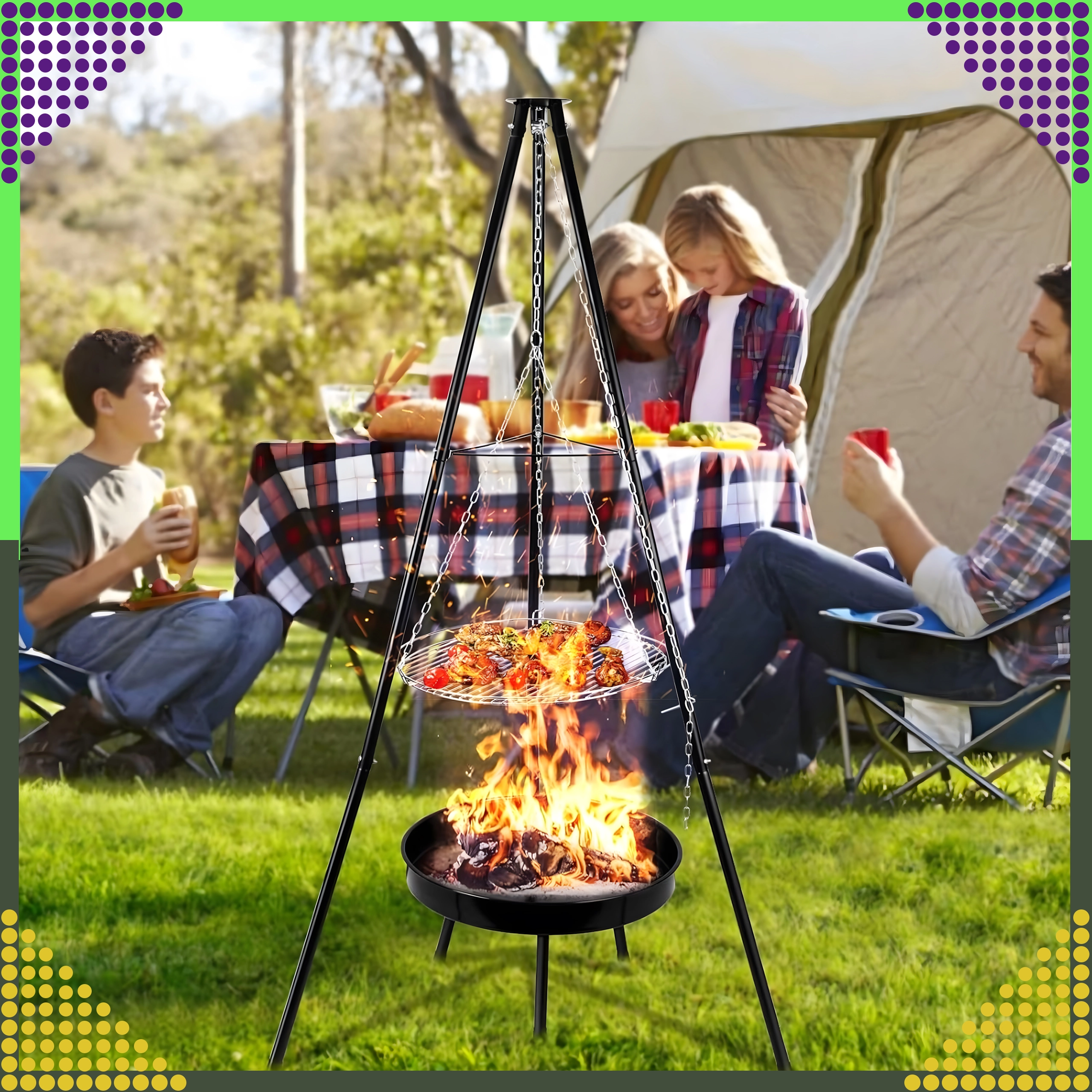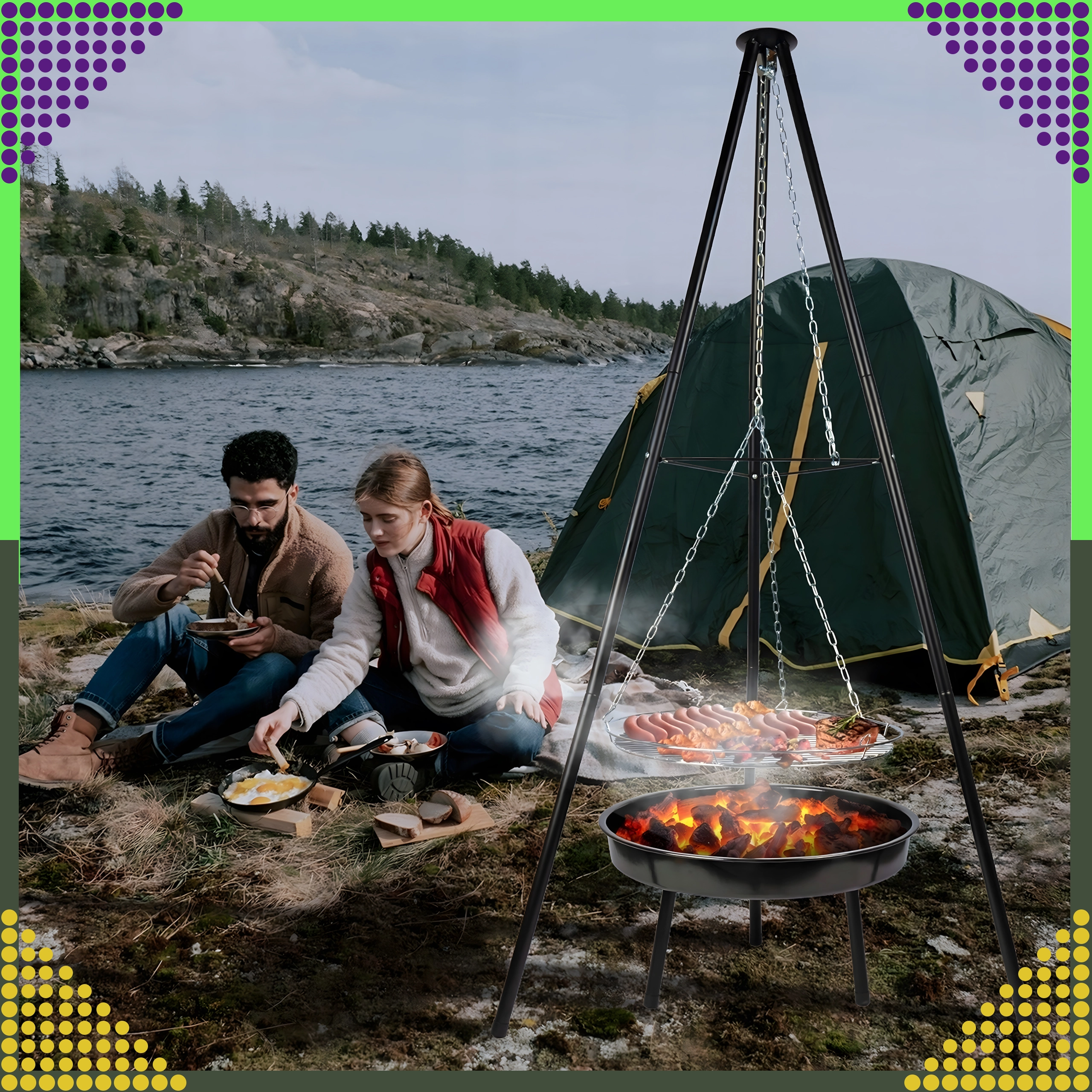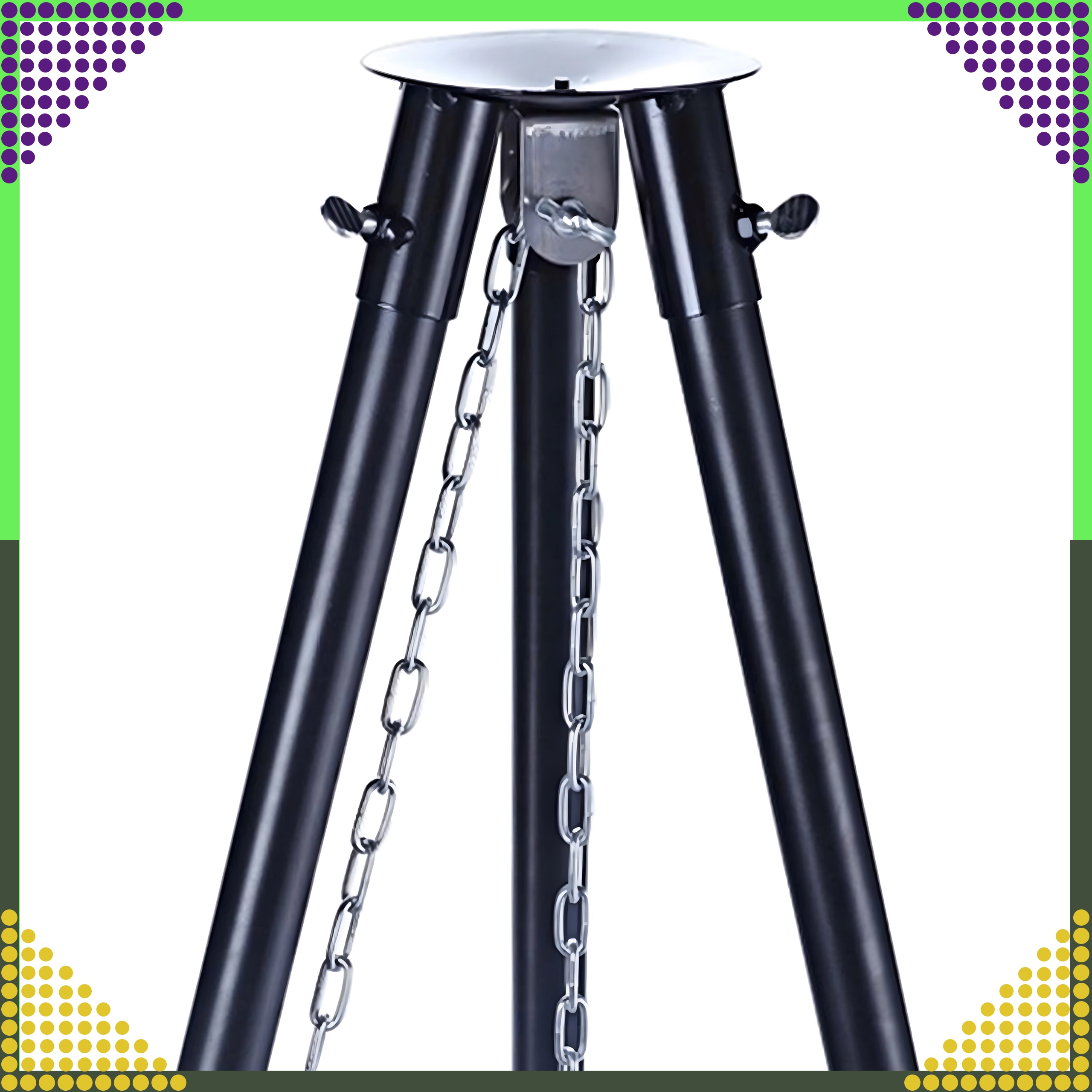 Tento elegantný a odolný záhradný trojnožkový gril je skvelým riešením pre všetkých, ktorí chcú grilovať nad otvoreným ohňom, ale nemajú stále miesto pre ohnisko. Výškovo nastaviteľný rošt (Ø 50 cm) so zavesením na reťaziach umožňuje presnú kontrolu teploty a rovnomerné prepečenie mäsa aj zeleniny. Stabilná trojnohá konštrukcia z práškovo lakovanej ocele je odolná voči vysokým teplotám a ľahko sa udržiava.