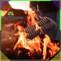 Už žiadne rozpadnuté porcie a pripaľovanie – tento obojstranný rošt so zamykateľnou mriežkou udrží potraviny pevne na mieste a umožní ich pohodlne obracať naraz pomocou ergonomickej drevenej rukoväti. Je skvelou voľbou na grilovanie na záhrade, na chate aj pri kempovaní.