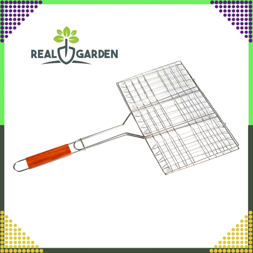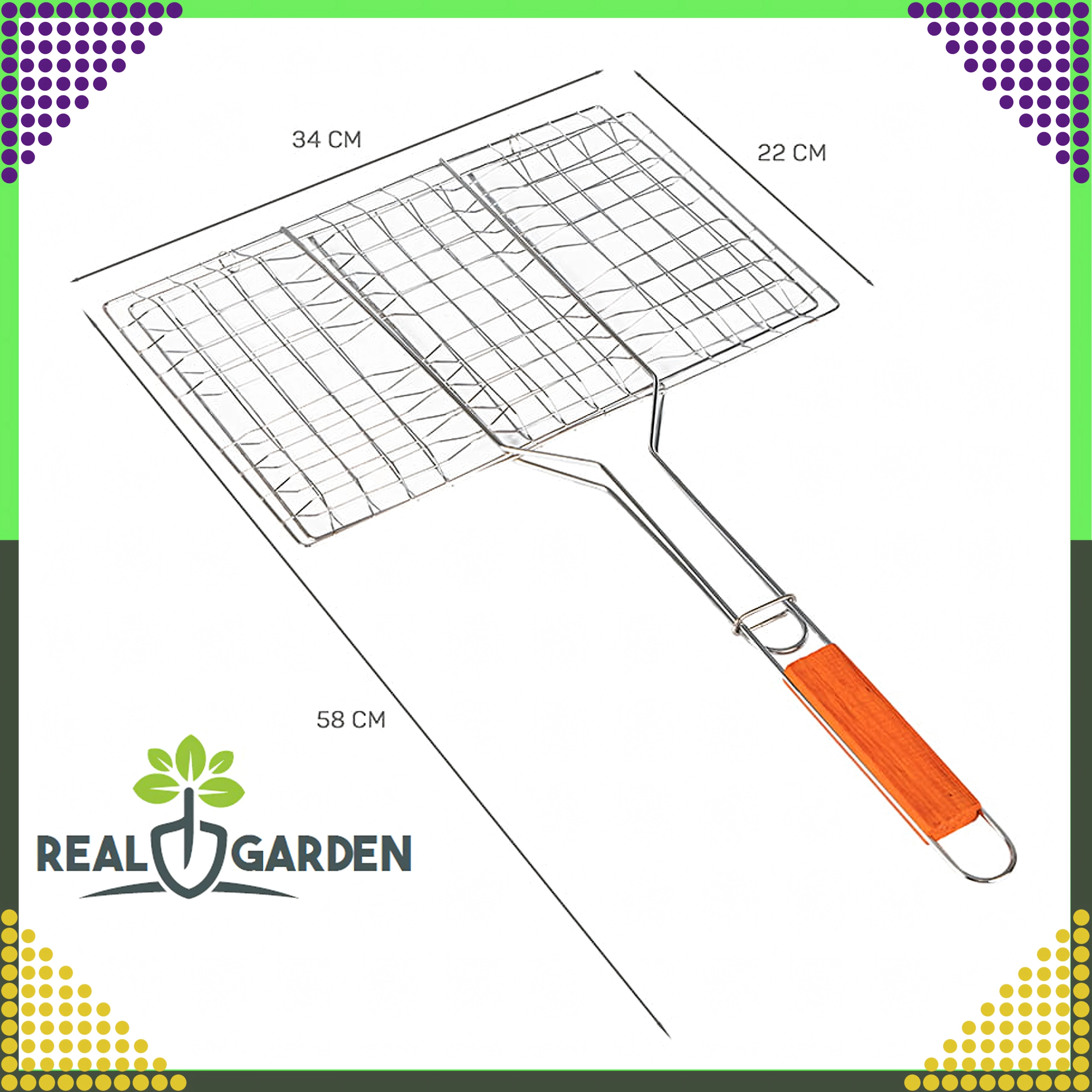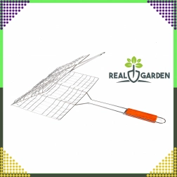 Praktický obojstranný grilovací rošt so zamykateľnou mriežkou a drevenou rukoväťou na bezpečné a pohodlné otáčanie. Ideálny na burgre, mäso, ryby aj zeleninu. Chrómovaný povrch uľahčuje čistenie a stabilné zovretie zabráni rozpadu potravín pri grilovaní.