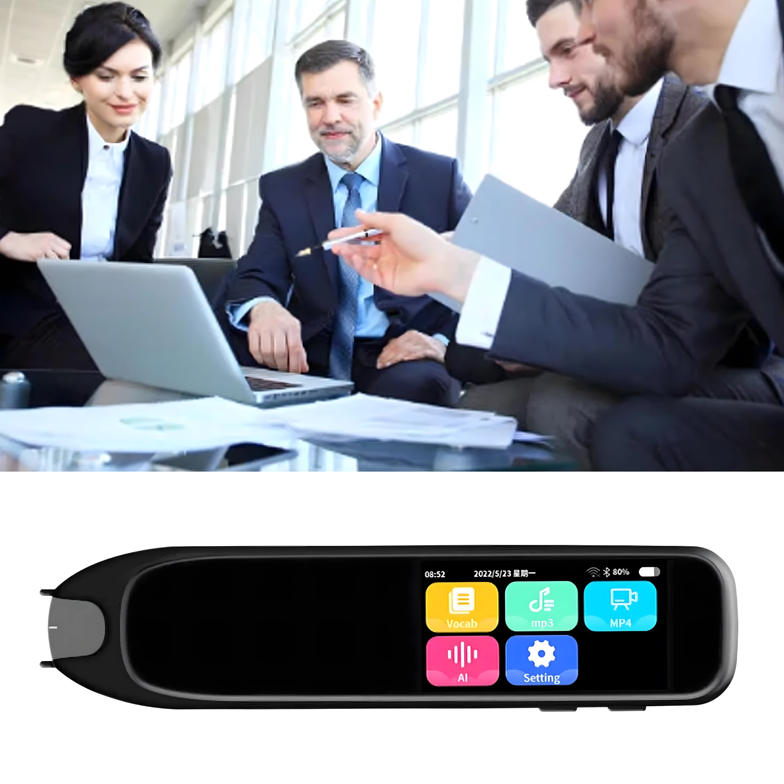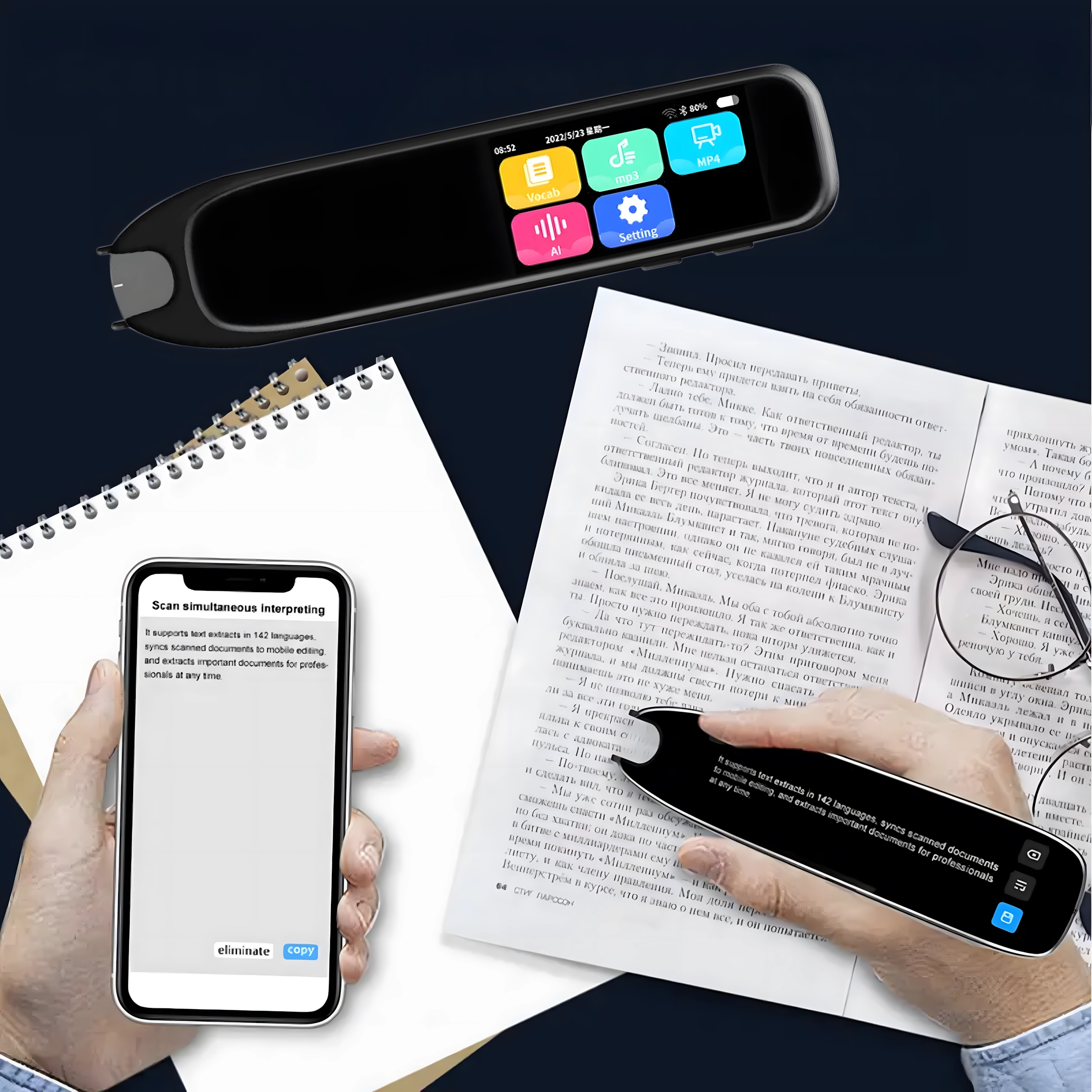 S podporou až 132 jazykov je pero skvelým pomocníkom na cestách, pri štúdiu aj v práci. Funkcie čítania nahlas a nahrávania zvuku zjednodušujú výučbu výslovnosti a uchovávanie poznámok. Pre plnú funkčnosť je vyžadované internetové pripojenie.