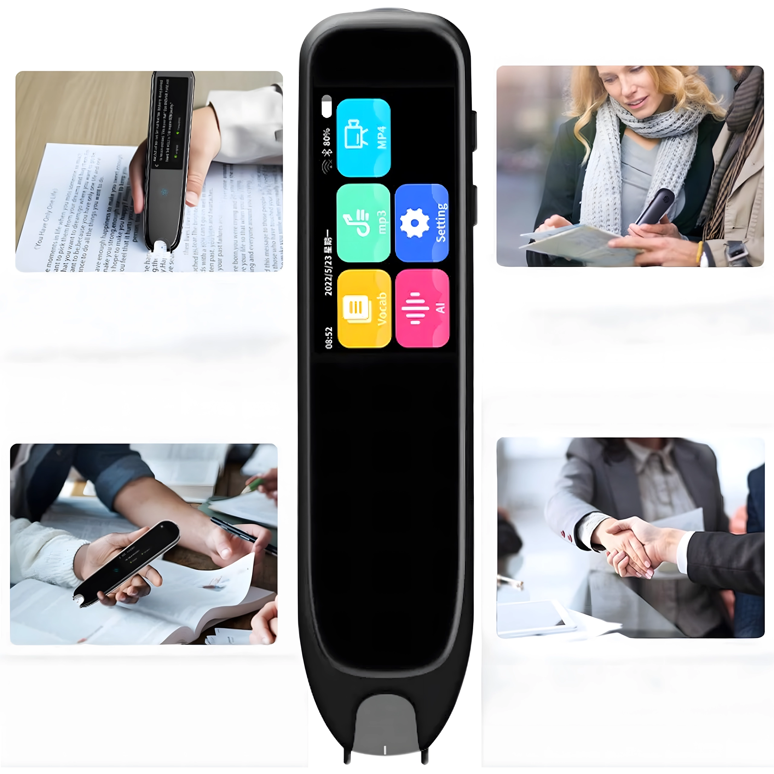 Chytré prekladateľské pero je moderný elektronický prekladač textu a reči, ktorý podporuje až 132 jazykov. Ponúka okamžité prekladanie hovoreného aj tlačeného textu v reálnom čase, má dotykový displej, OCR skenovanie, hlasité čítanie výslovnosti aj záznam zvuku – ideálne pre cestovateľov, študentov, učiteľov aj profesionálov v medzinárodnom prostredí. Vyžaduje pripojenie na internet.