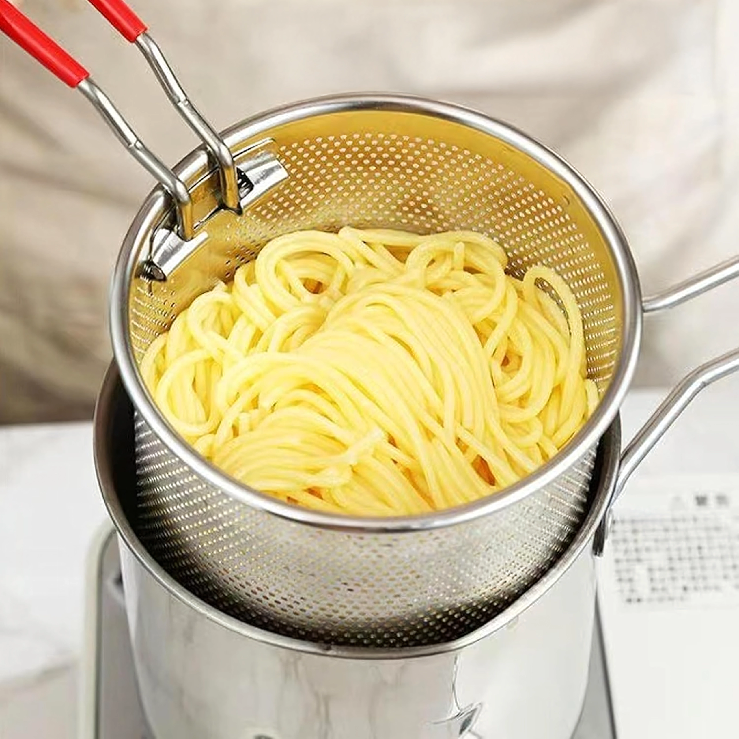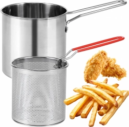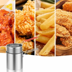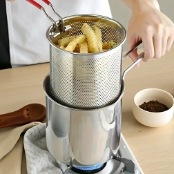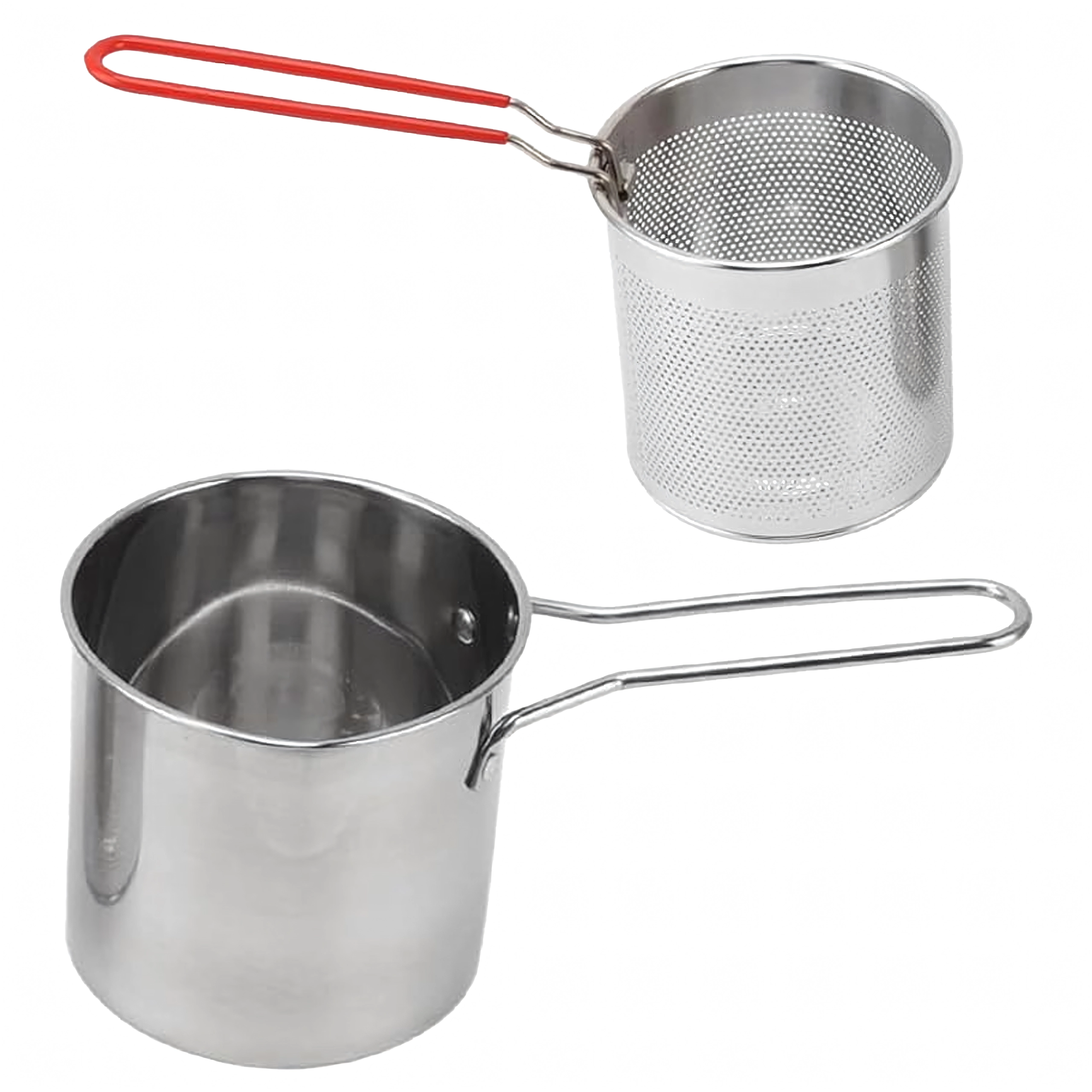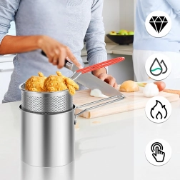 Praktický mini hrniec s fritovacím košíkom prináša bezpečné a čisté vyprážanie obľúbených dobrôt – od hranoliek a kuracích kúskov po zeleninu. Jemne perforovaný košík umožňuje rýchle odkvapkanie oleja, takže jedlo je chrumkavé a menej mastné. Nehrdzavejúca oceľ 304 zaručuje dlhú životnosť, jednoduchú údržbu a neutrálnu chuť.