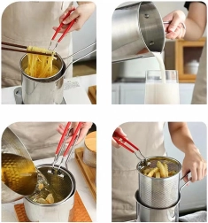 Kompaktný hrniec s košíkom z kvalitnej nehrdzavejúcej ocele 304 je ideálny na hlboké vyprážanie aj varenie a cedenie cestovín či zeleniny. Vyberateľný košík účinne filtruje olej, odnímateľná rukoväť šetrí miesto a konštrukcia z nerezu je odolná, ľahko sa čistí a pomáha šetriť spotrebu oleja doma aj na cestách.