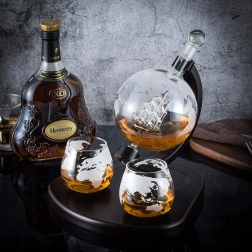 Vo vnútri karafy sa nachádza dekoratívna sklenená loď, ktorá dodáva celej sade prémiový a originálny vzhľad.