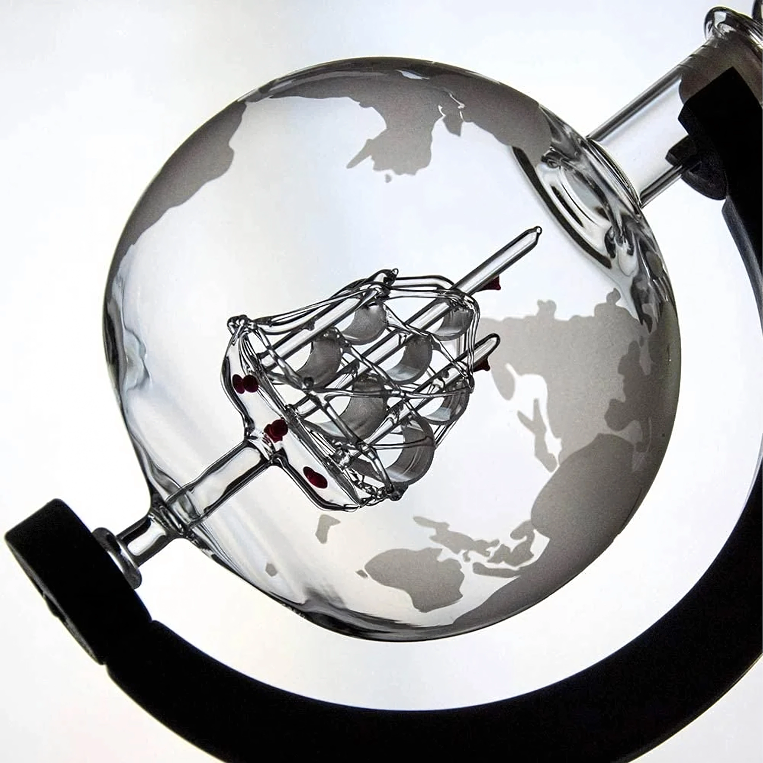 Karafa v tvare glóbusu sa elegantne otáča a vďaka stojanu ponúka stabilné a pôsobivé vystavenie na každom bare či stole.