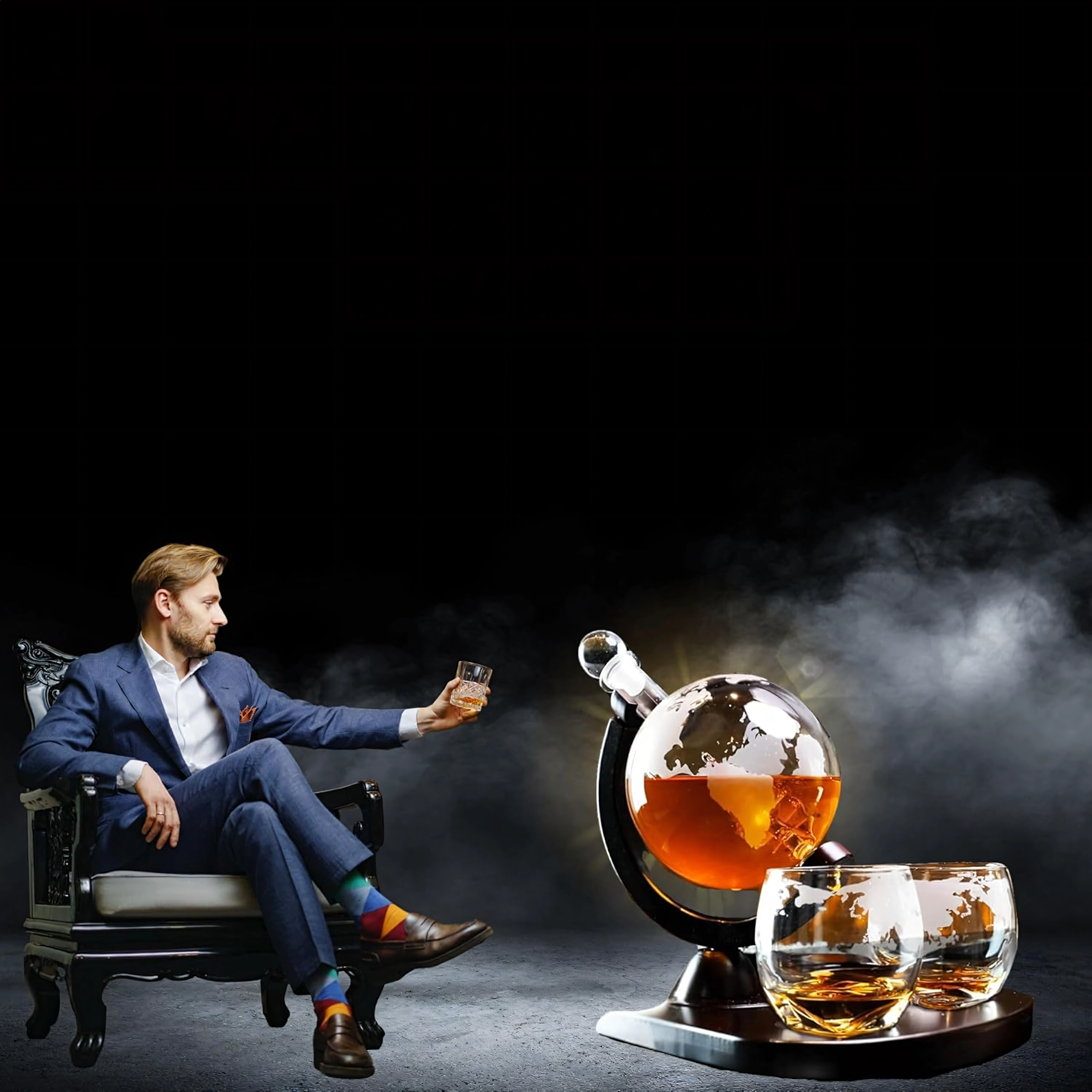 Súčasťou balenia sú dva okrúhle poháre s matným mapovým motívom, ideálne na whisky, rum či ďalšie prémiové destiláty. Set je perfektný ako reprezentatívny darček pre milovníkov kvalitných nápojov, do pracovne aj domáceho baru.