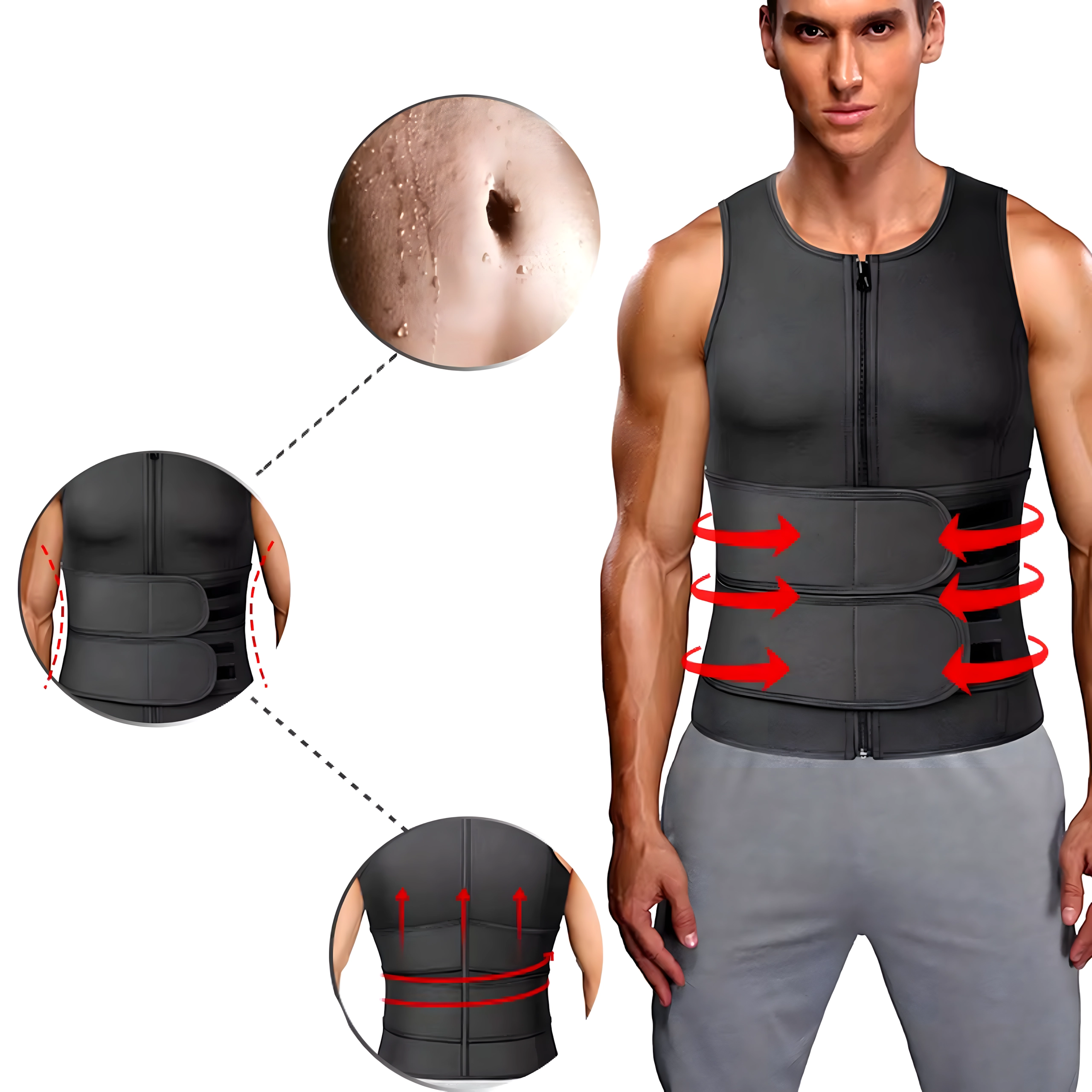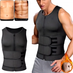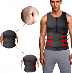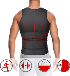 Táto pánska kompresná sauna vesta kombinuje elastický materiál s praktickým predným zipsom a dvojitými sťahovacími pásmi na suchý zips. Zvýšením tepelného efektu napomáha intenzívnejšiemu poteniu a môže podporiť tvarovanie postavy, zatiaľ čo pevná konštrukcia zabezpečuje stabilizáciu stredu tela a chrbta.