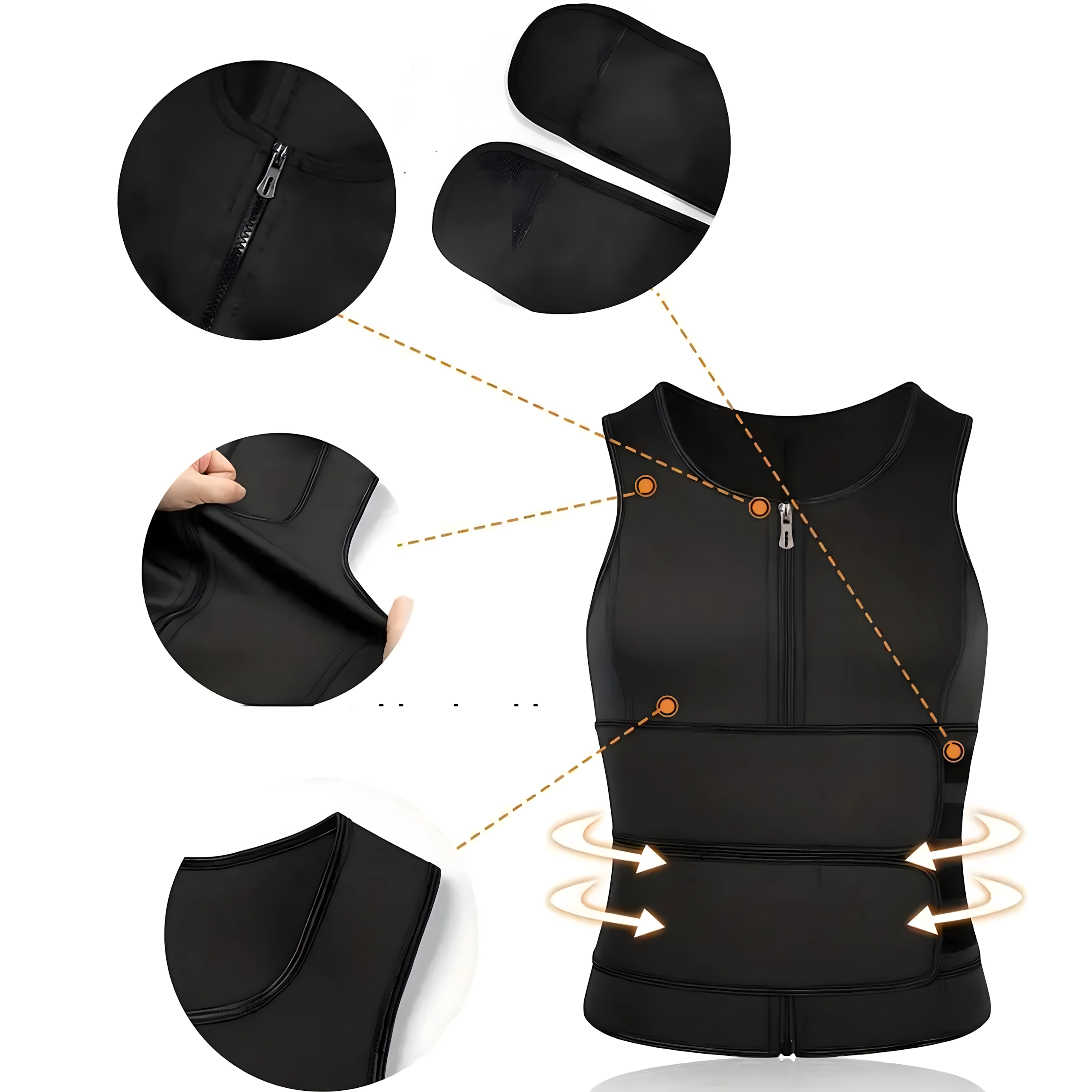 Zrýchlite výsledky cvičenia s pánskou neoprénovou vestou, ktorá zvyšuje teplotu tela, podporuje potenie a pomáha spaľovať kalórie. Vďaka zipsu a nastaviteľným pásom ponúka pevnú kompresiu, tvarovanie pása a podporu chrbta pri každodennom tréningu aj bežnom nosení.