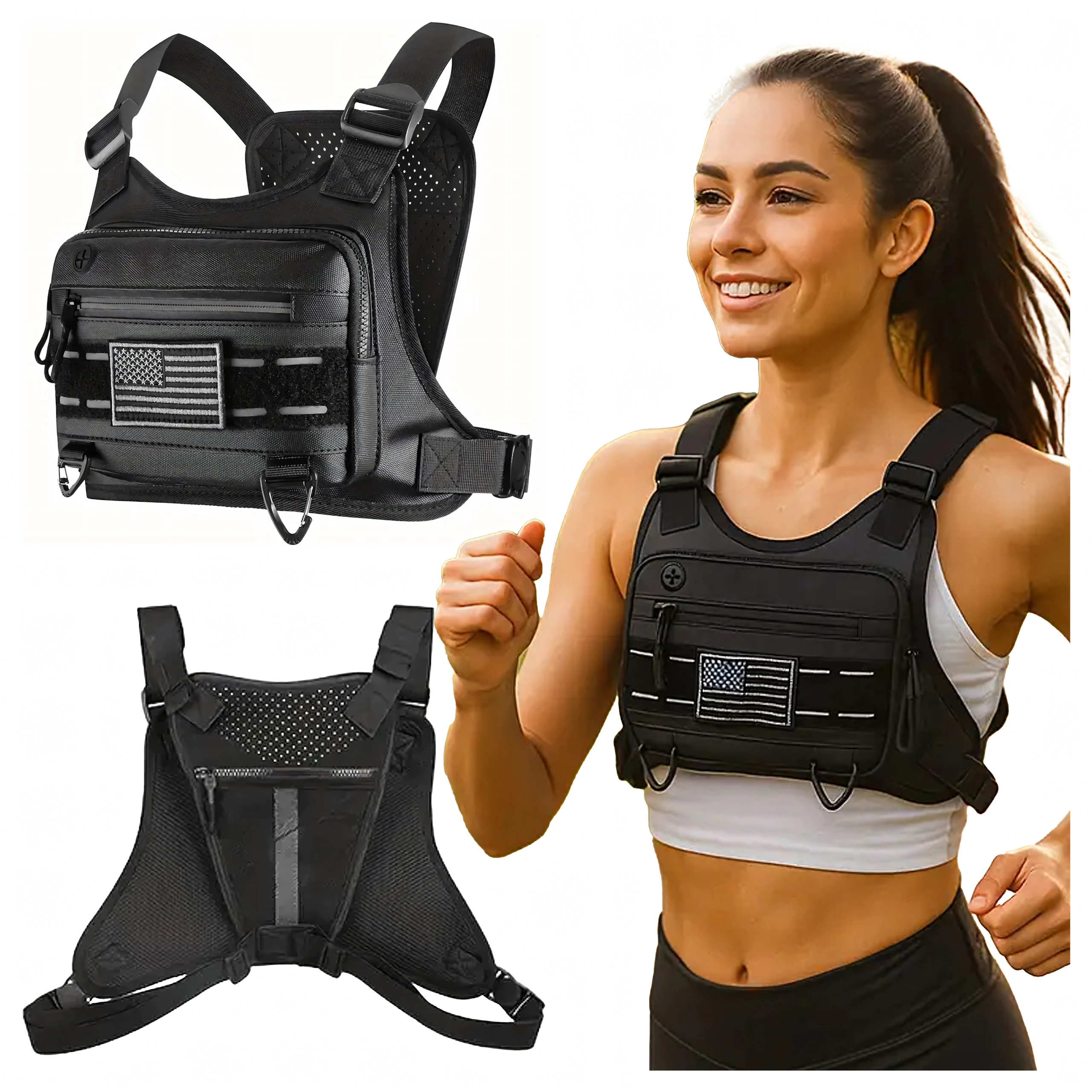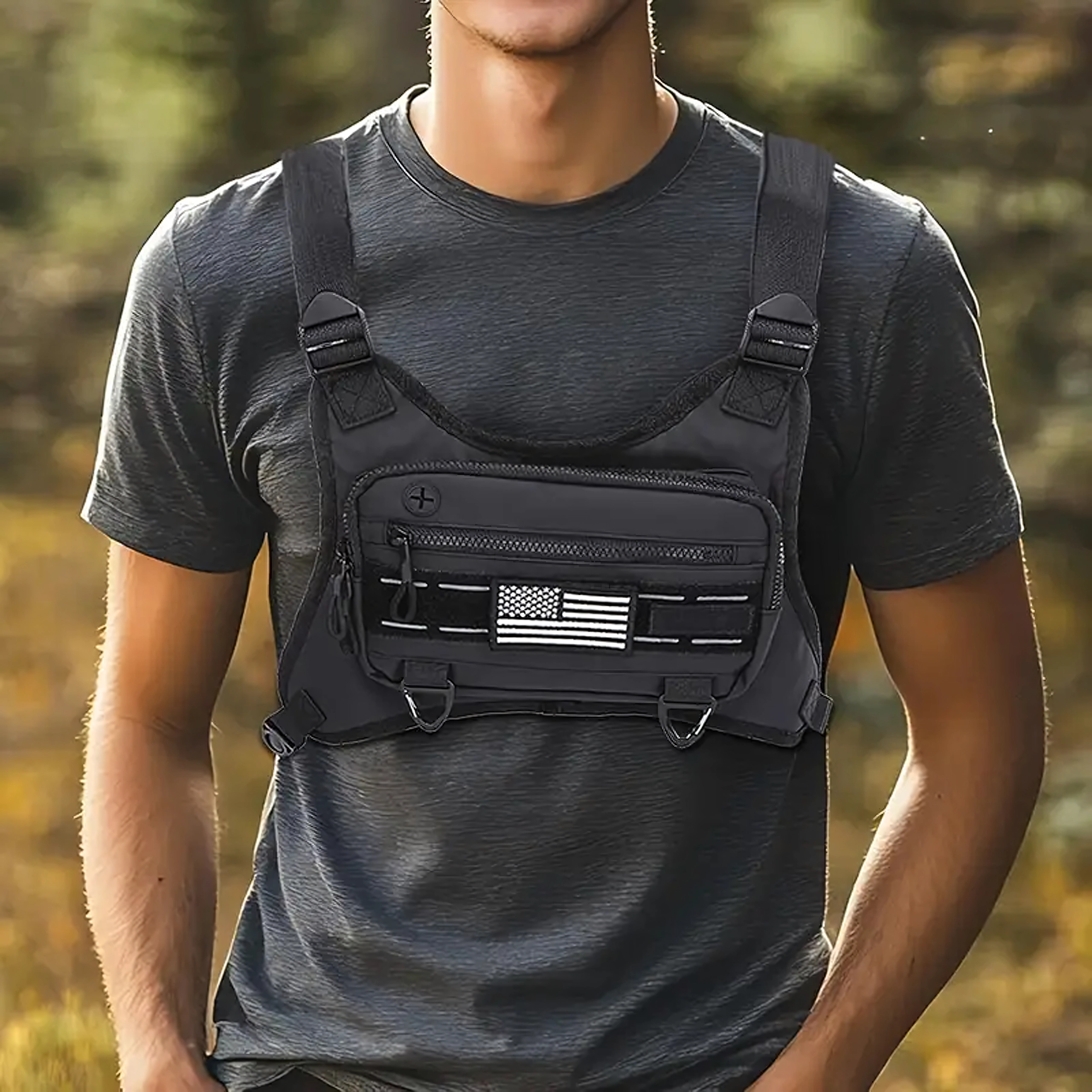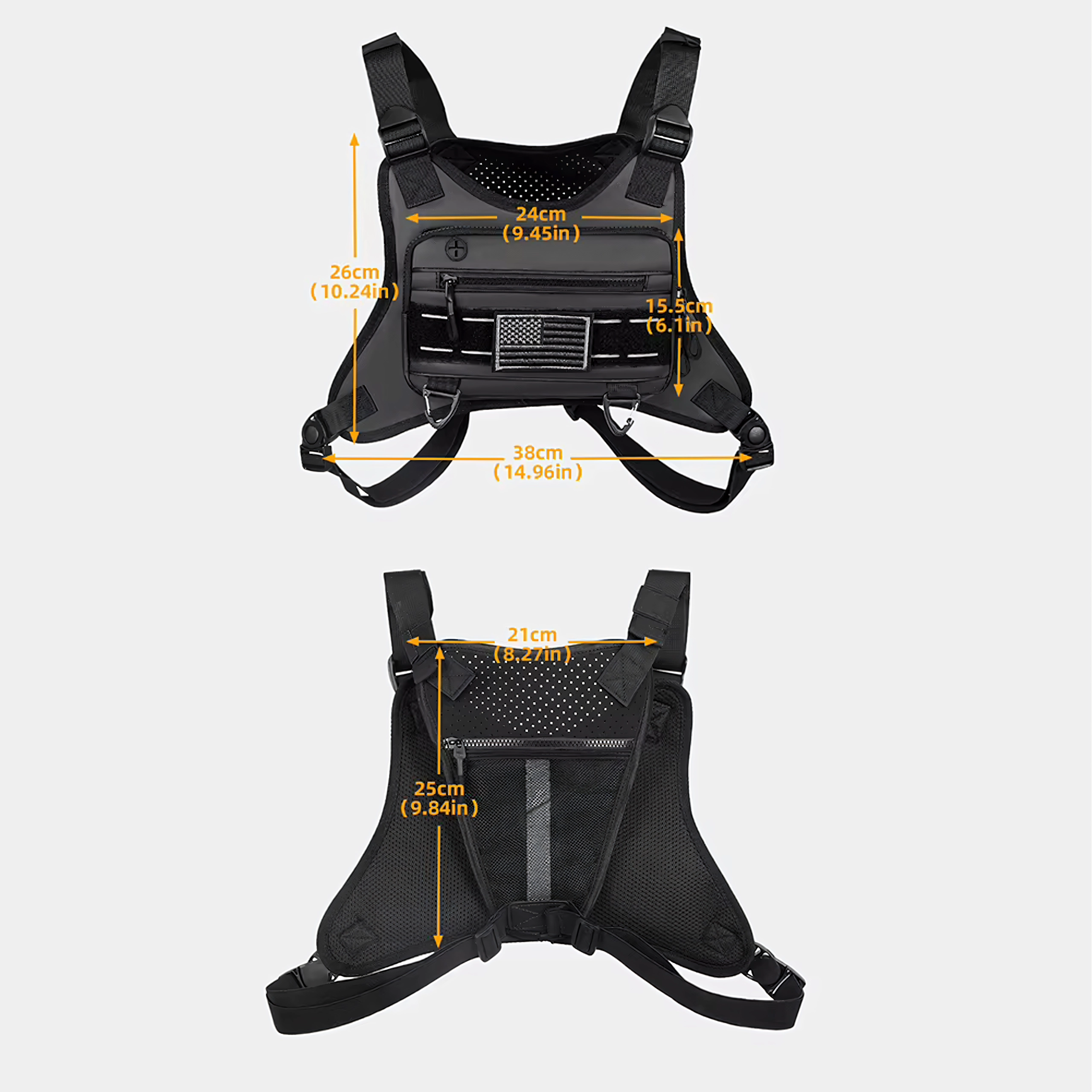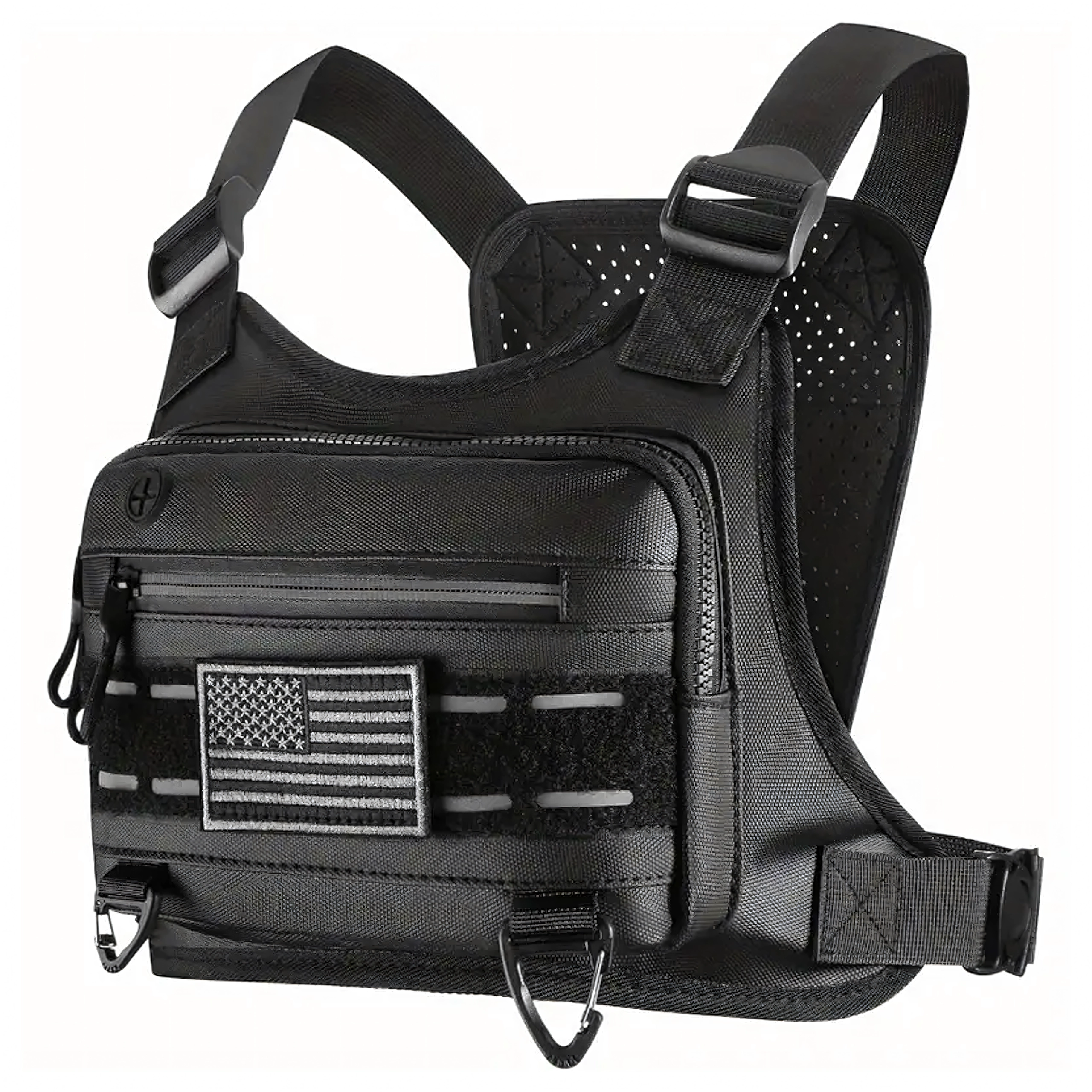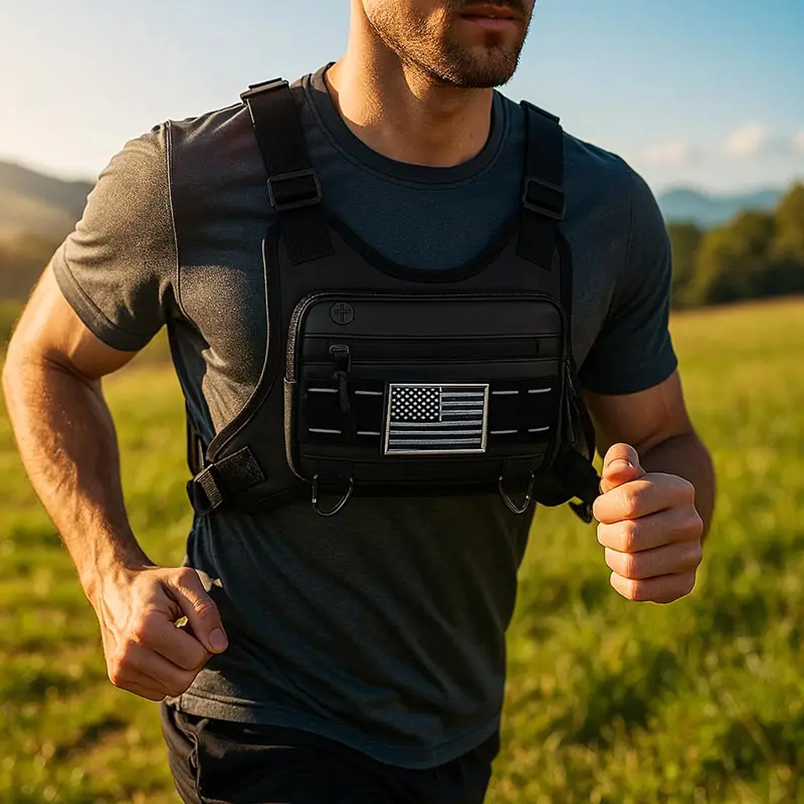 Táto univerzálna hrudná taška kombinuje taktický dizajn s pohodlím pre každodenný šport aj outdoor. Robustný materiál 600D odpudzuje vodu, zatiaľ čo sieťovaný zadný diel zabezpečuje ventiláciu a stabilné usadenie. Vďaka nastaviteľným ramenným a hrudným popruhom si tašku ľahko prispôsobíte na beh, cyklistiku, turistiku aj mestské dochádzanie.