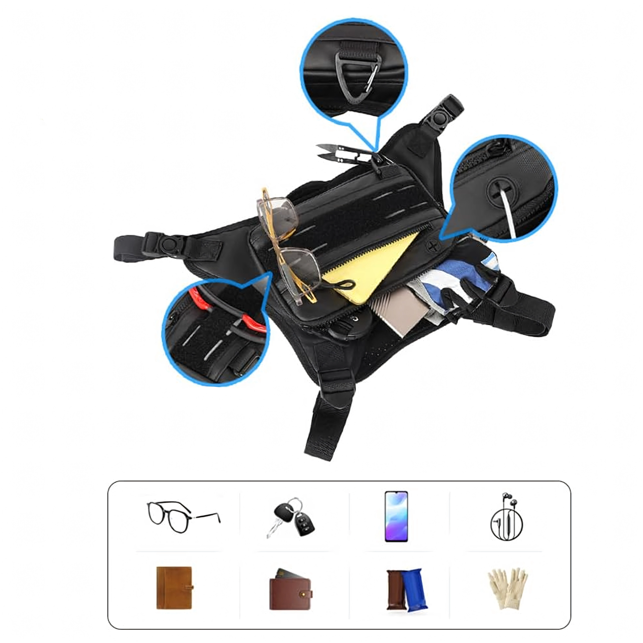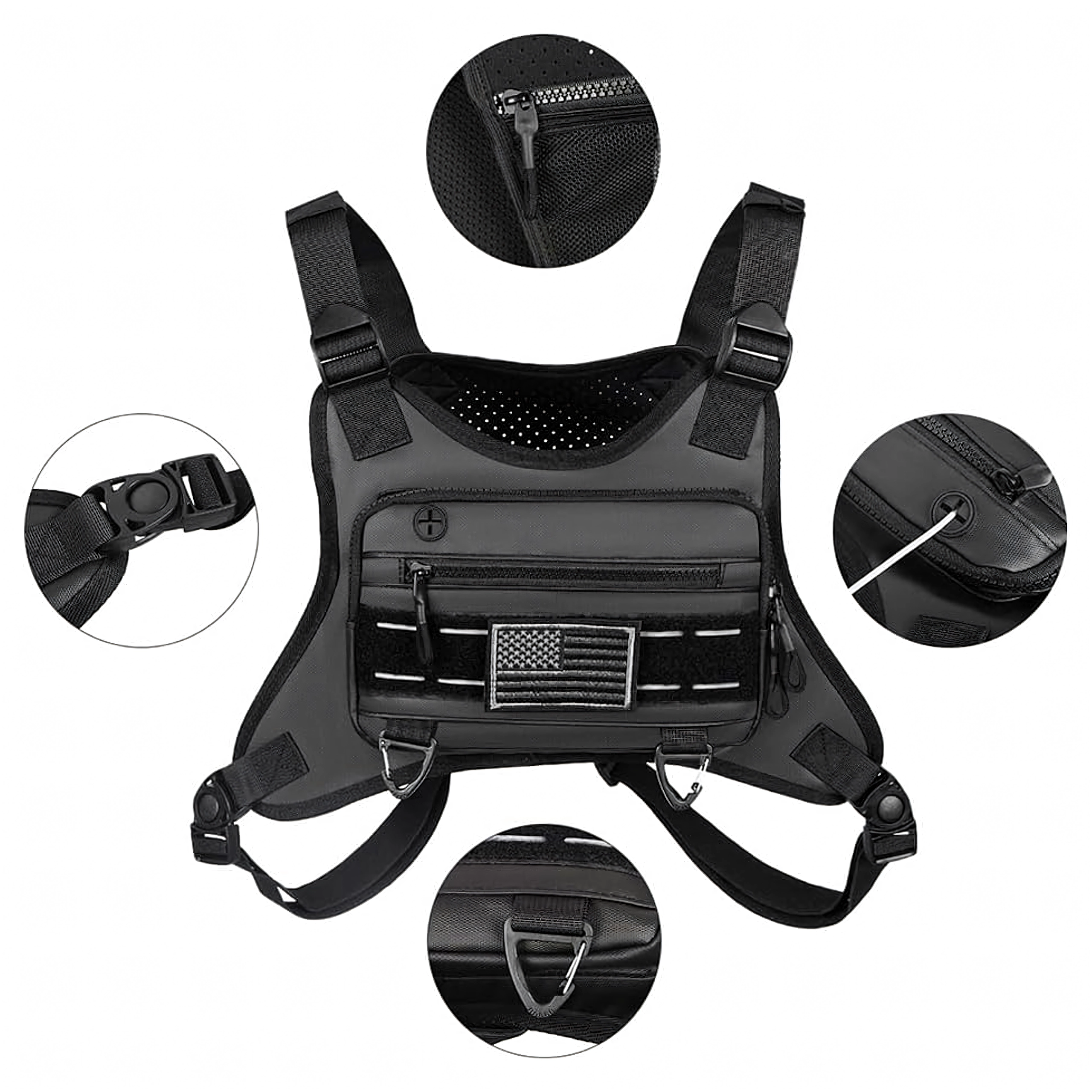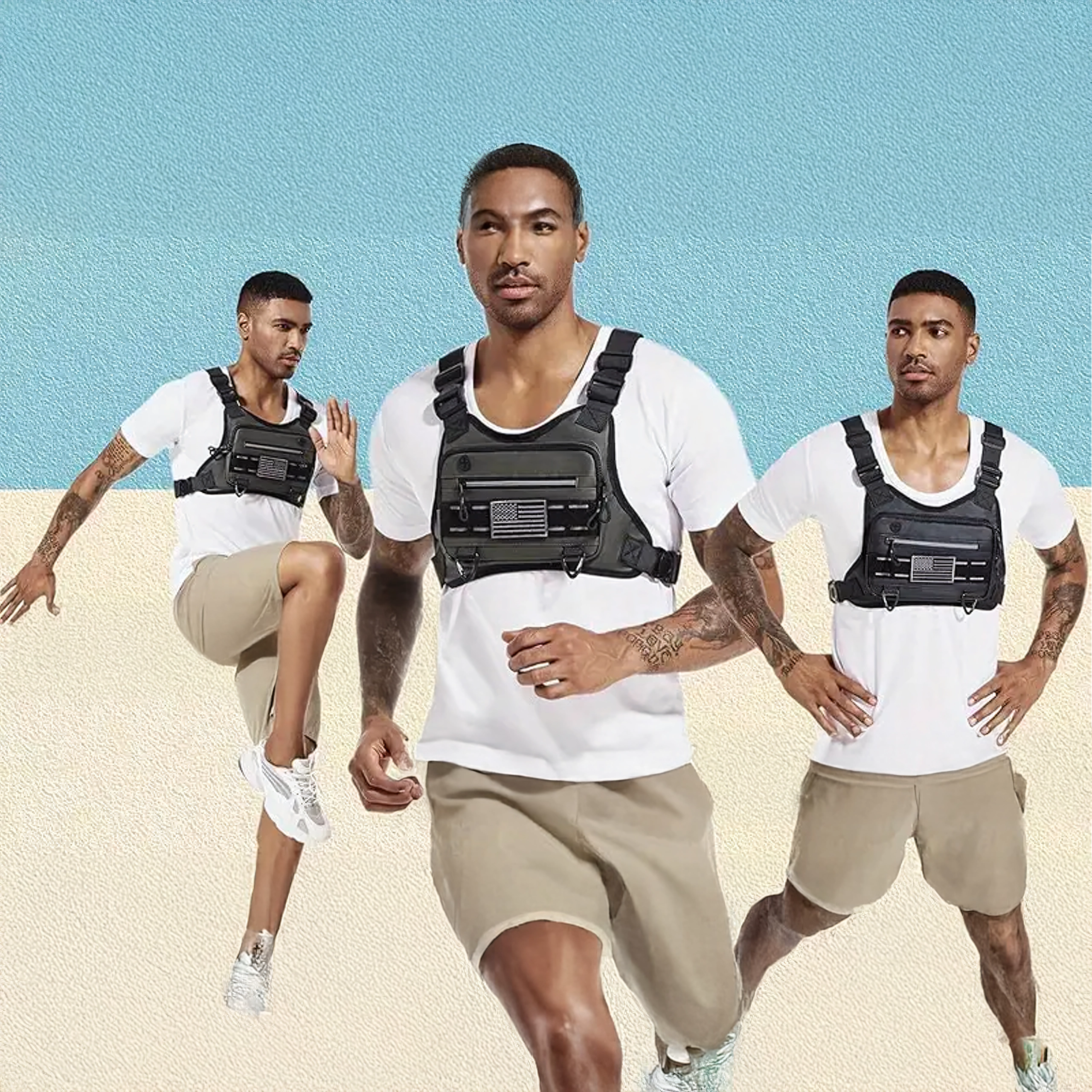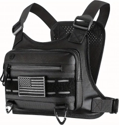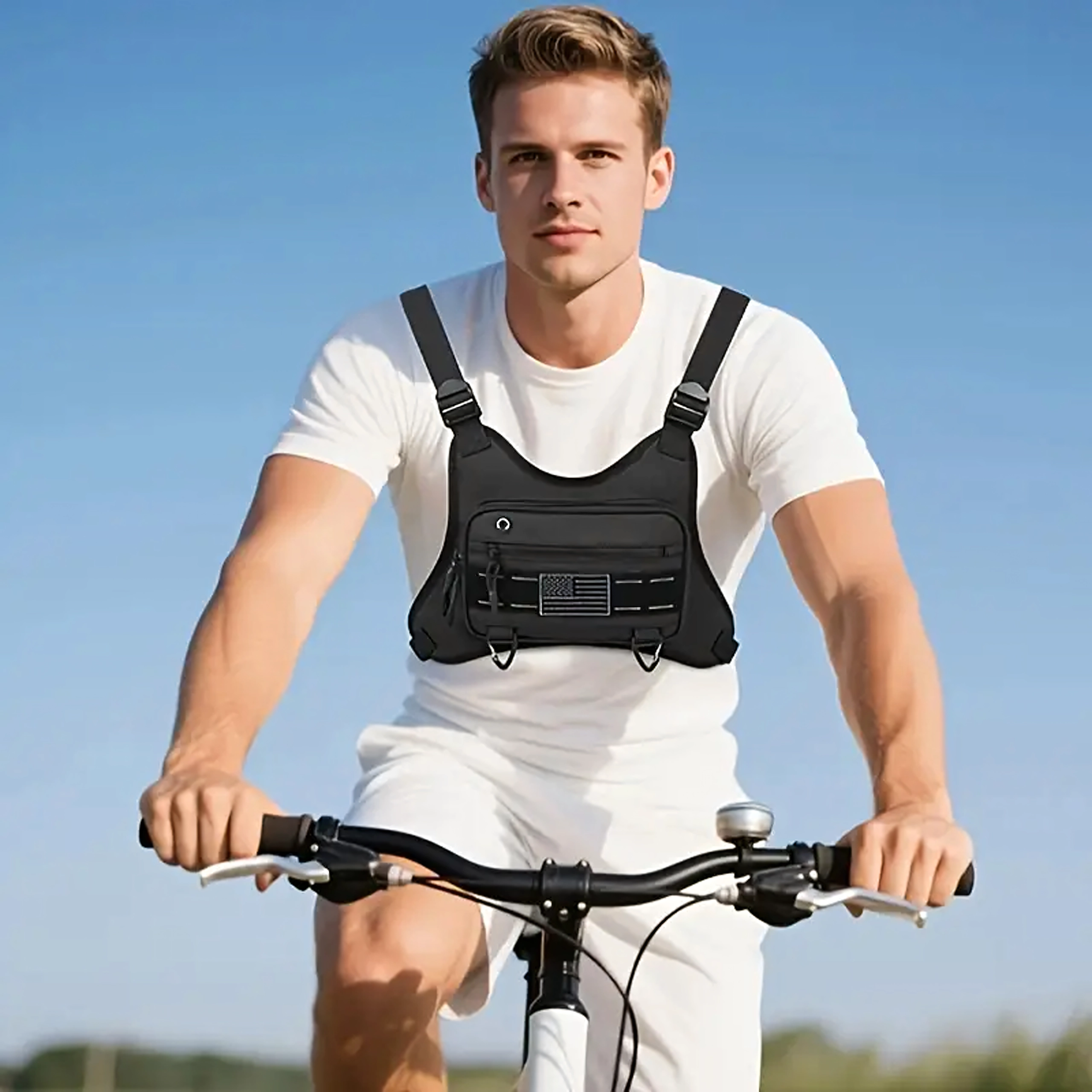 Táto univerzálna hrudná taška kombinuje taktický dizajn s pohodlím pre každodenný šport aj outdoor. Robustný materiál 600D odpudzuje vodu, zatiaľ čo sieťovaný zadný diel zabezpečuje ventiláciu a stabilné usadenie. Vďaka nastaviteľným ramenným a hrudným popruhom si tašku ľahko prispôsobíte na beh, cyklistiku, turistiku aj mestské dochádzanie.