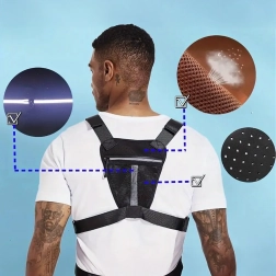 Nastaviteľné ramenné popruhy, hrudné spojky a vetraný zadný panel držia tašku pevne na mieste aj pri behu či jazde na bicykli.