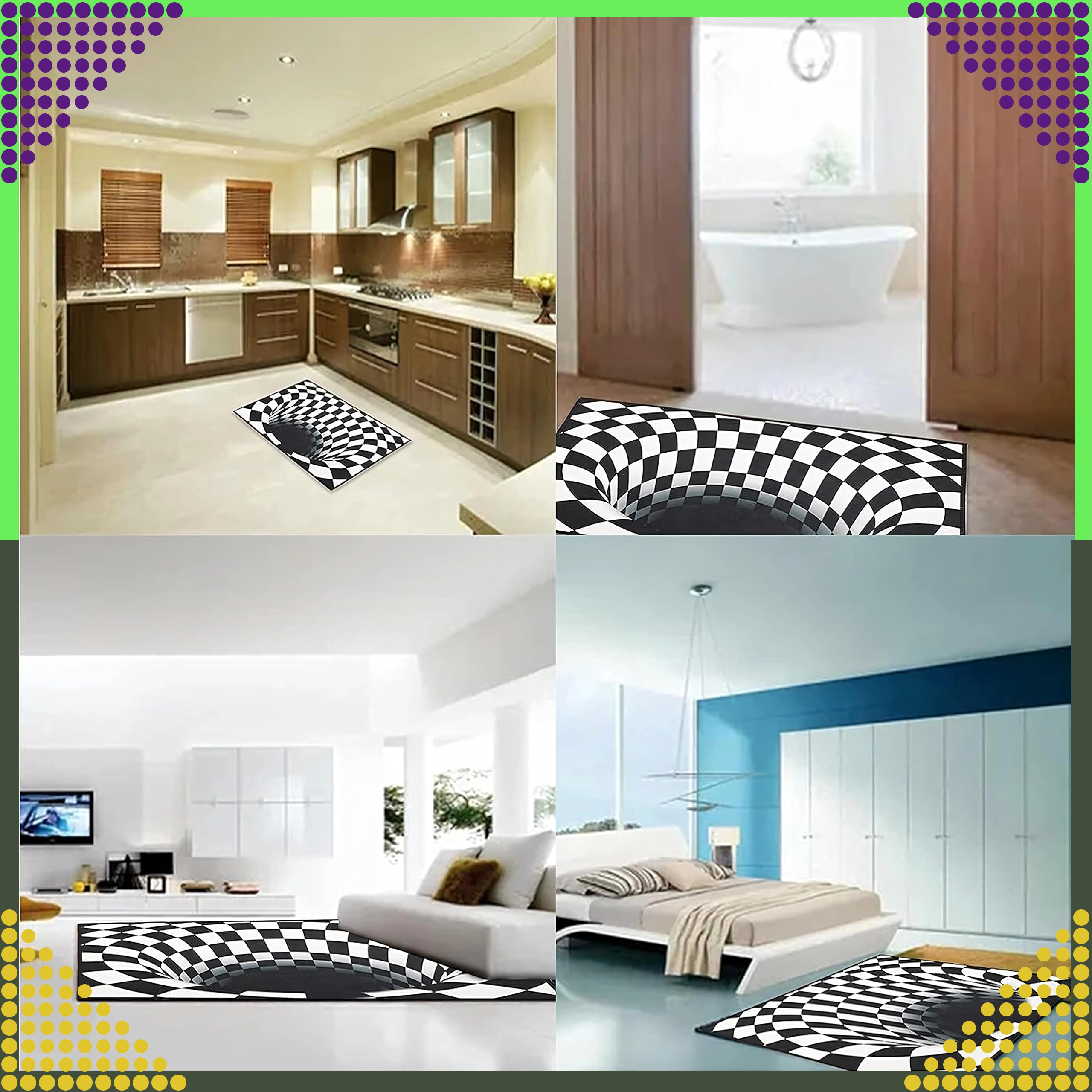 Táto moderná vstupná rohož s 3D ilúziou víru vytvára pôsobivý optický efekt, ktorý zaujme každého návštevníka. Nízky profil a príjemný povrch zabezpečujú komfort pri došliapnutí a praktické použitie v predsieňach, chodbách, kúpeľniach alebo pri dverách.