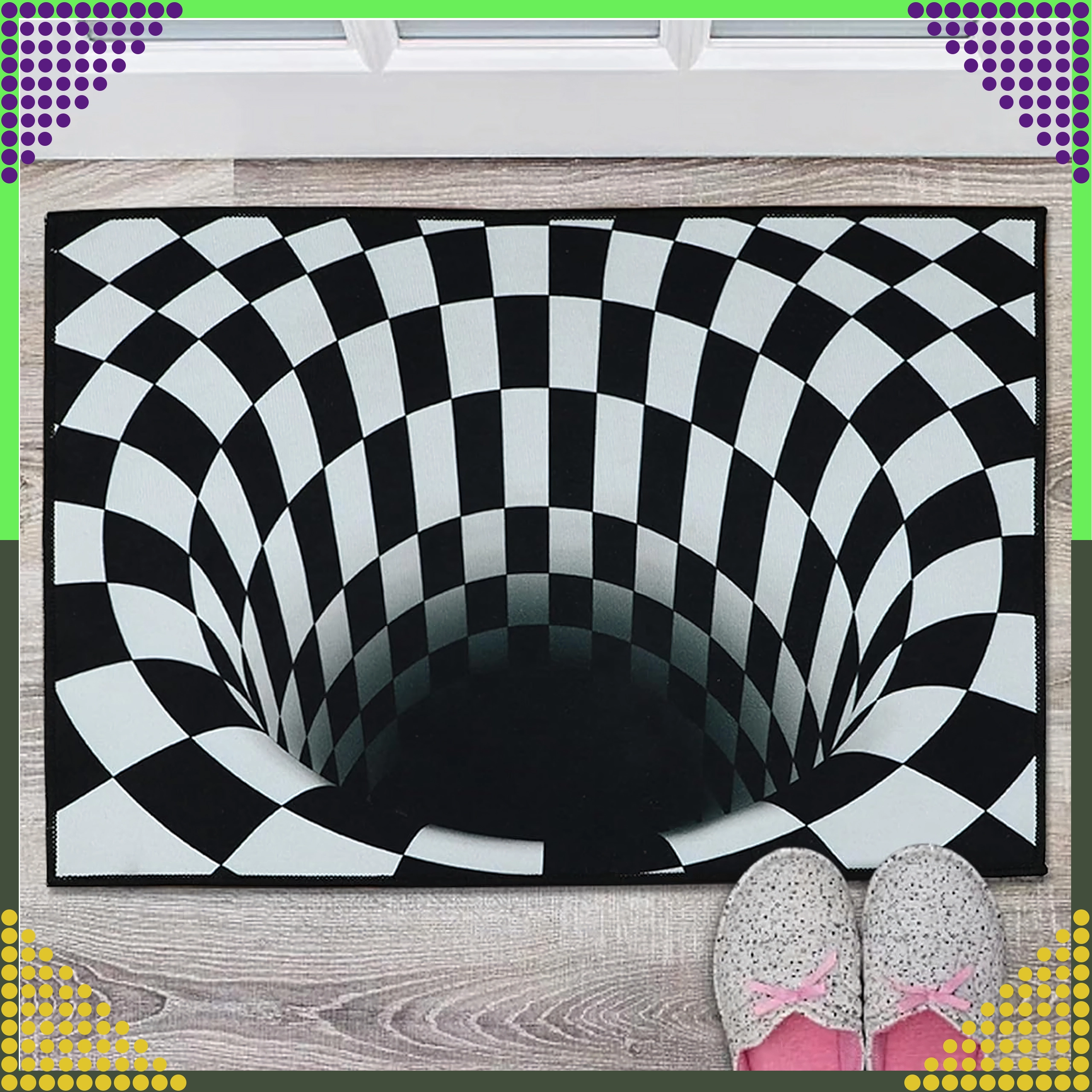 Vneste do predsiene aj interiéru hravý dizajn a praktickosť: táto rohož s efektom 3D ilúzie „bielej diery“ spoľahlivo zachytí nečistoty a vlhkosť, má protišmykový spodný povrch, je ľahko umývateľná a vhodná na vnútorné aj vonkajšie použitie.
