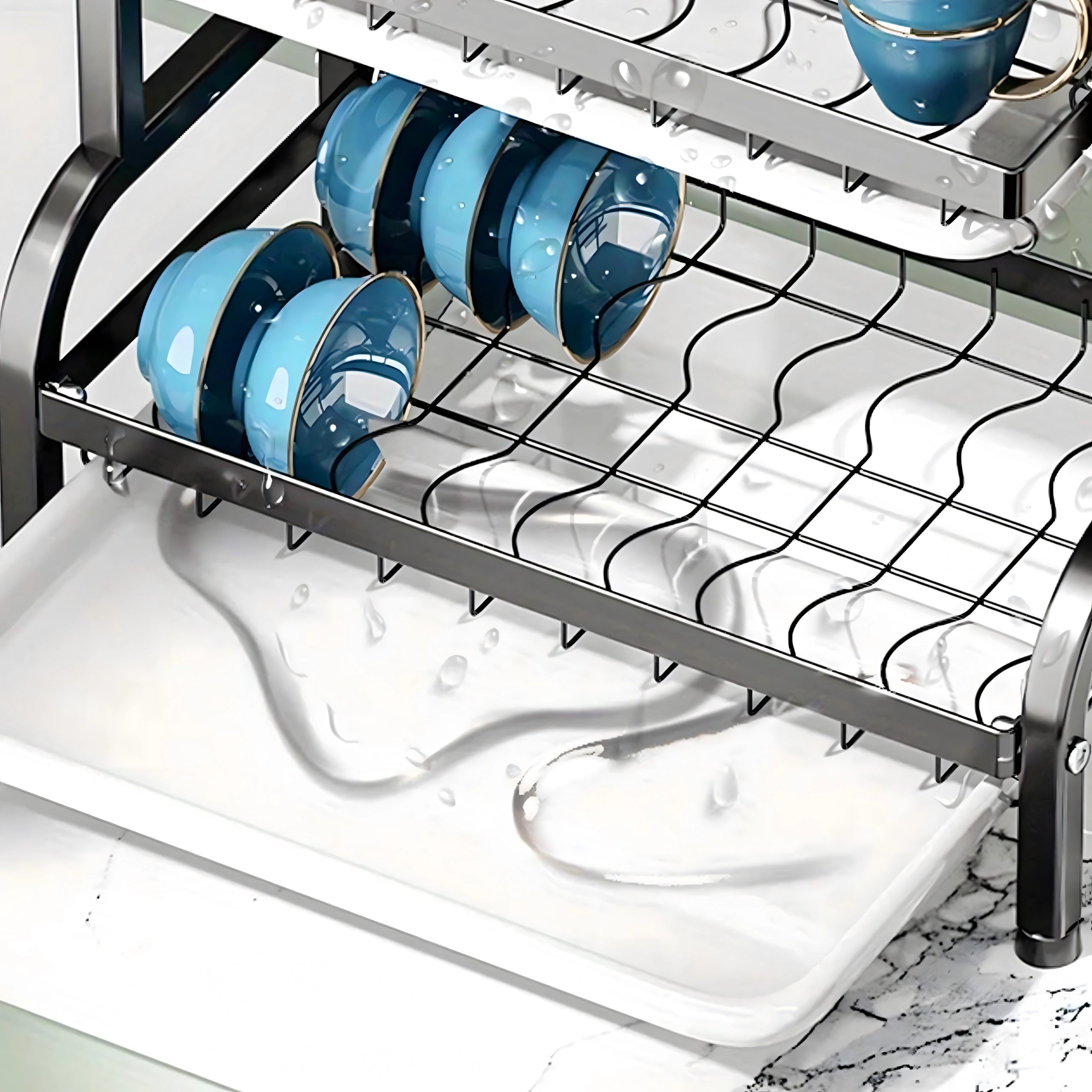 Vrstvené usporiadanie poskytuje vyhradené miesto pre taniere, misky, poháre aj hrnčeky, zatiaľ čo otvorená drôtená konštrukcia zaisťuje rýchle prúdenie vzduchu a efektívne sušenie. Skladacie riešenie šetrí priestor, kedykoľvek práve nie je v prevádzke.