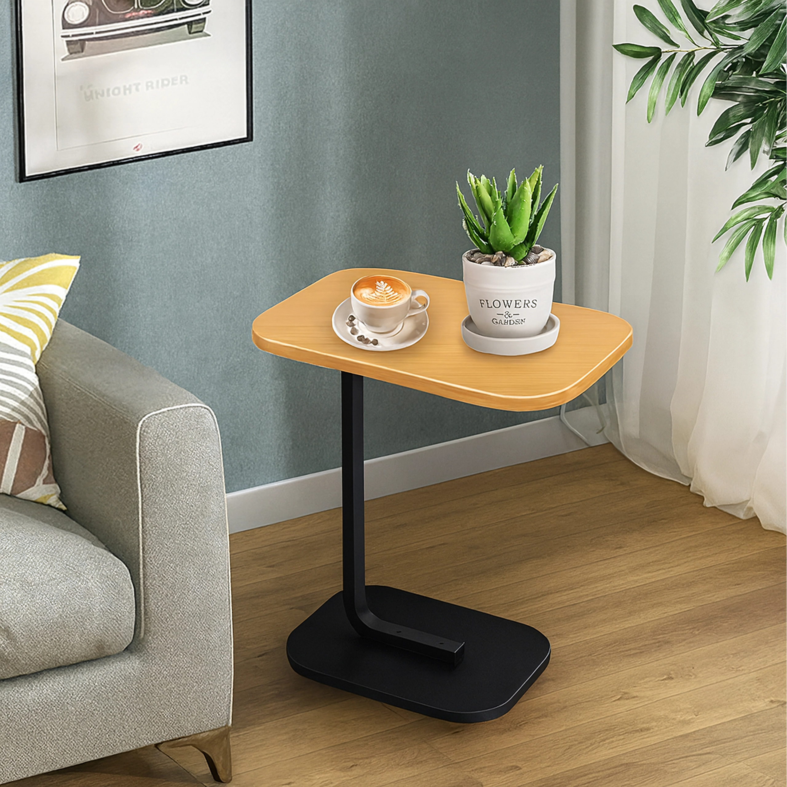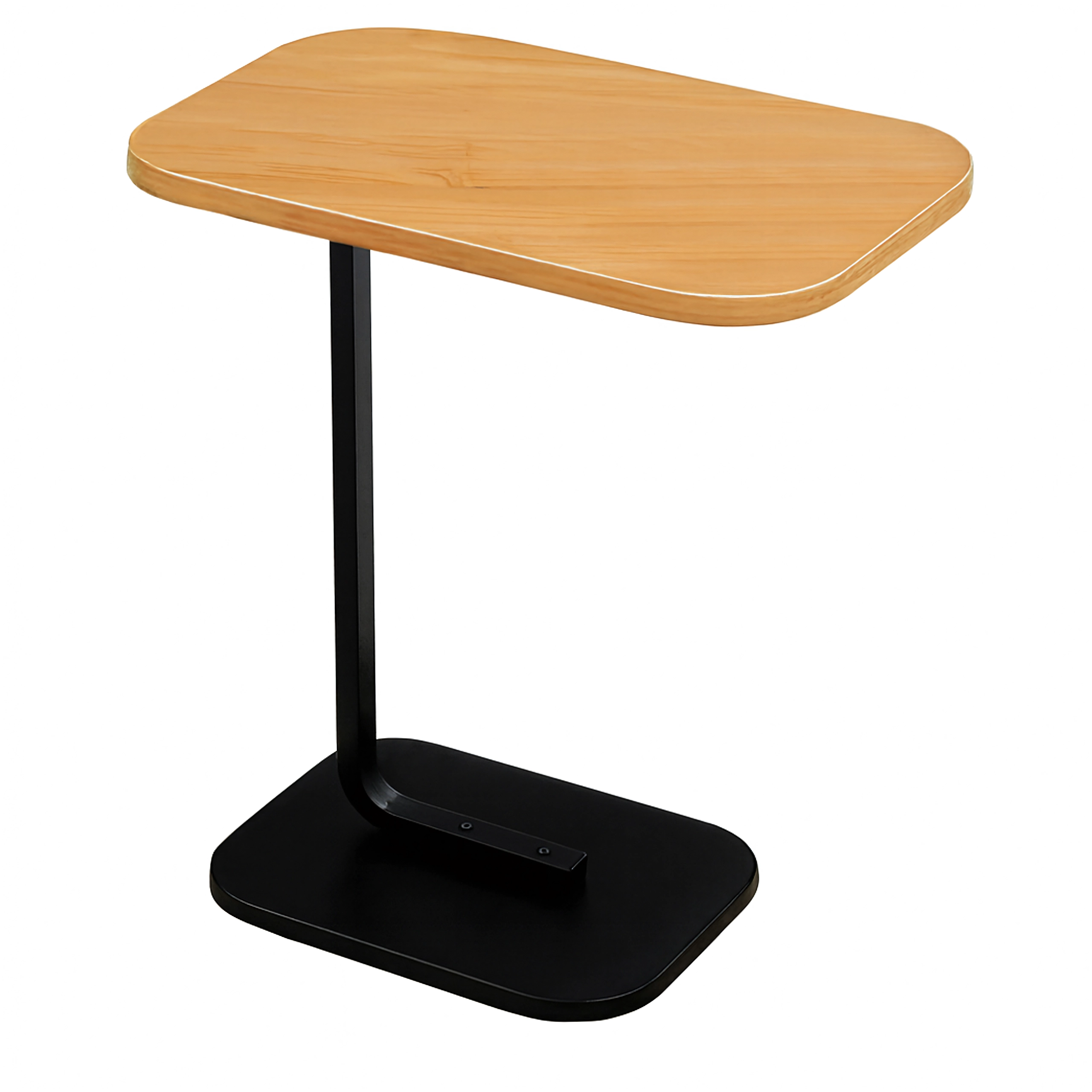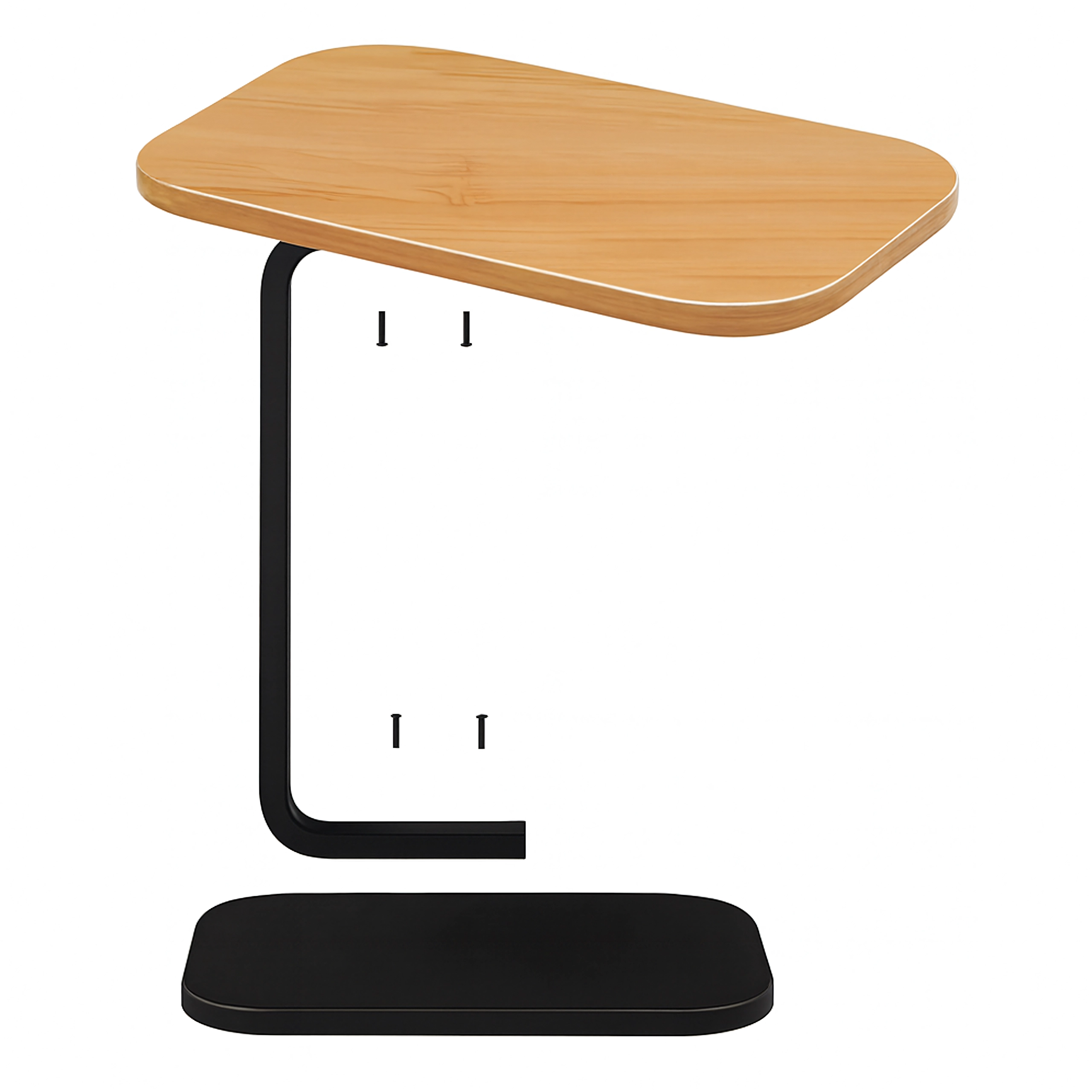 Elegantný C‑kový stolík kombinuje svetlú drevodekor dosku s odolnou čiernou kovovou konštrukciou. Je ideálny ako bočný stolík k sedačke, nočný stolík k posteli alebo mobilná podstava na prácu s notebookom. Vďaka štíhlej základni ho ľahko zasuniete pod nábytok a ušetríte miesto.