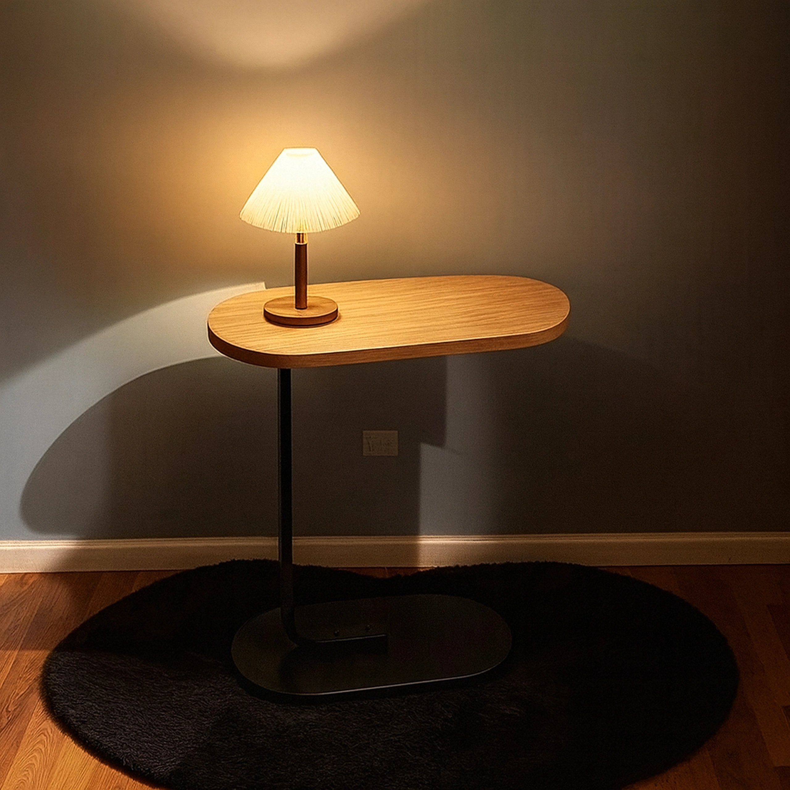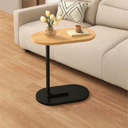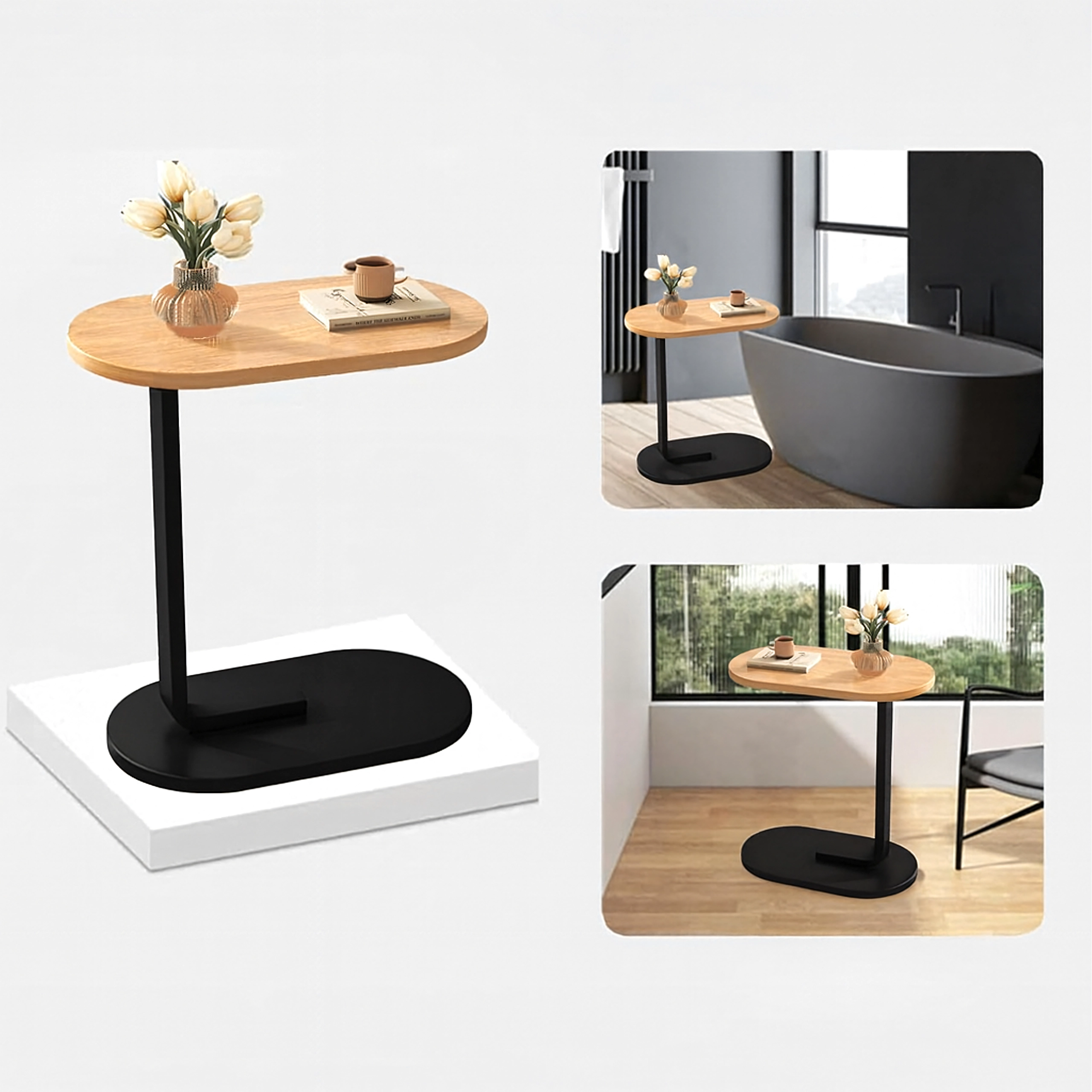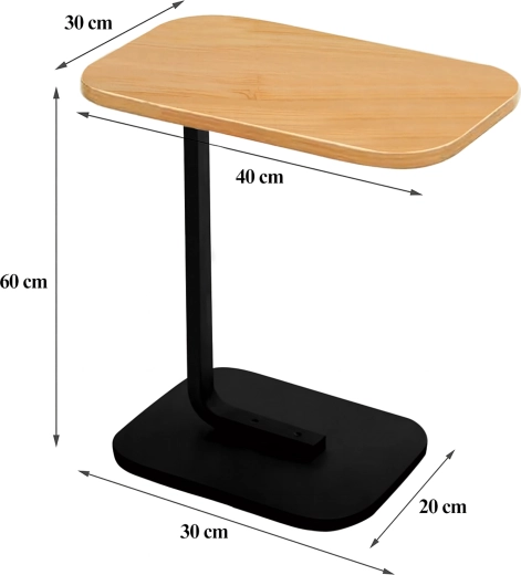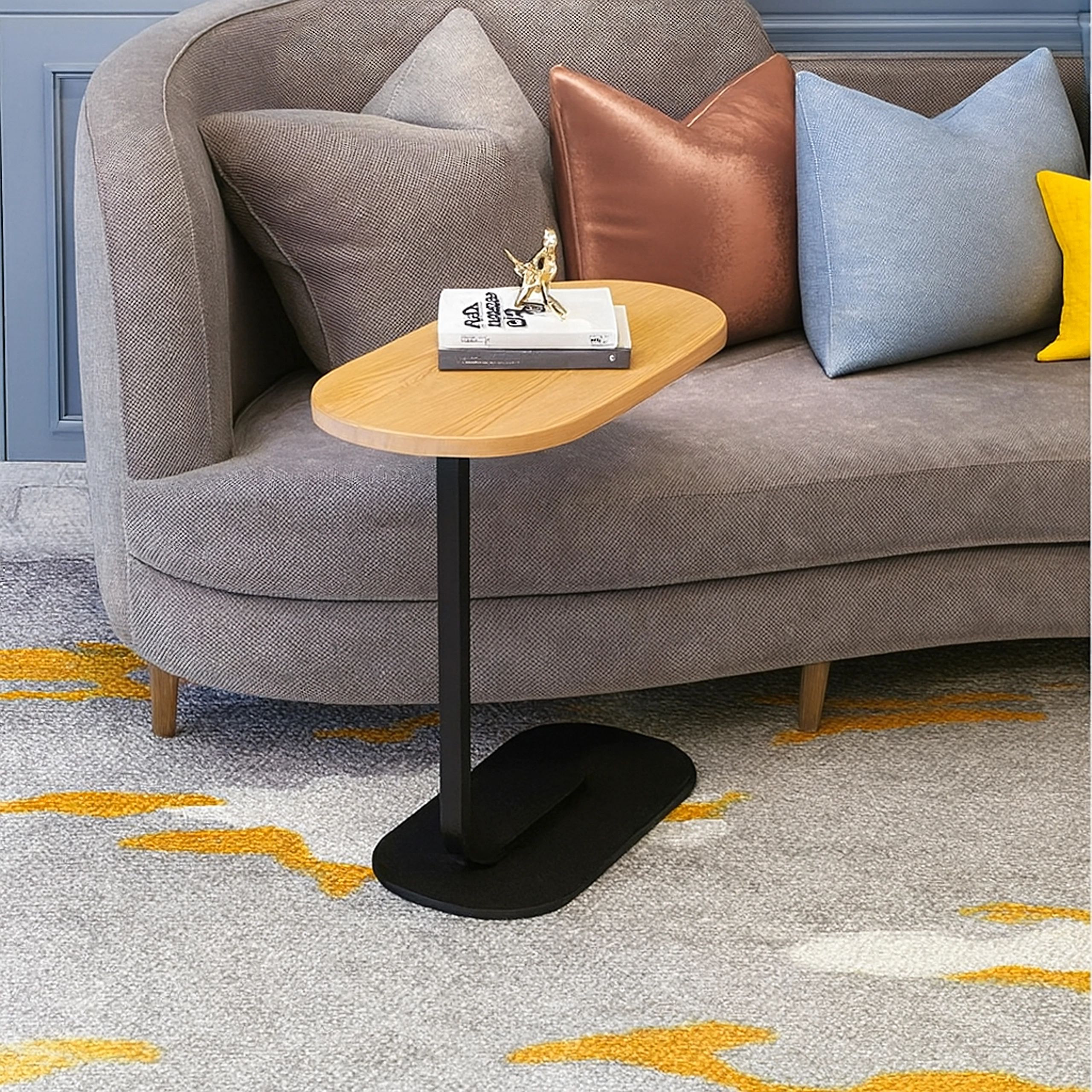Elegantný C‑kový stolík kombinuje svetlú drevodekor dosku s odolnou čiernou kovovou konštrukciou. Je ideálny ako bočný stolík k sedačke, nočný stolík k posteli alebo mobilná podstava na prácu s notebookom. Vďaka štíhlej základni ho ľahko zasuniete pod nábytok a ušetríte miesto.