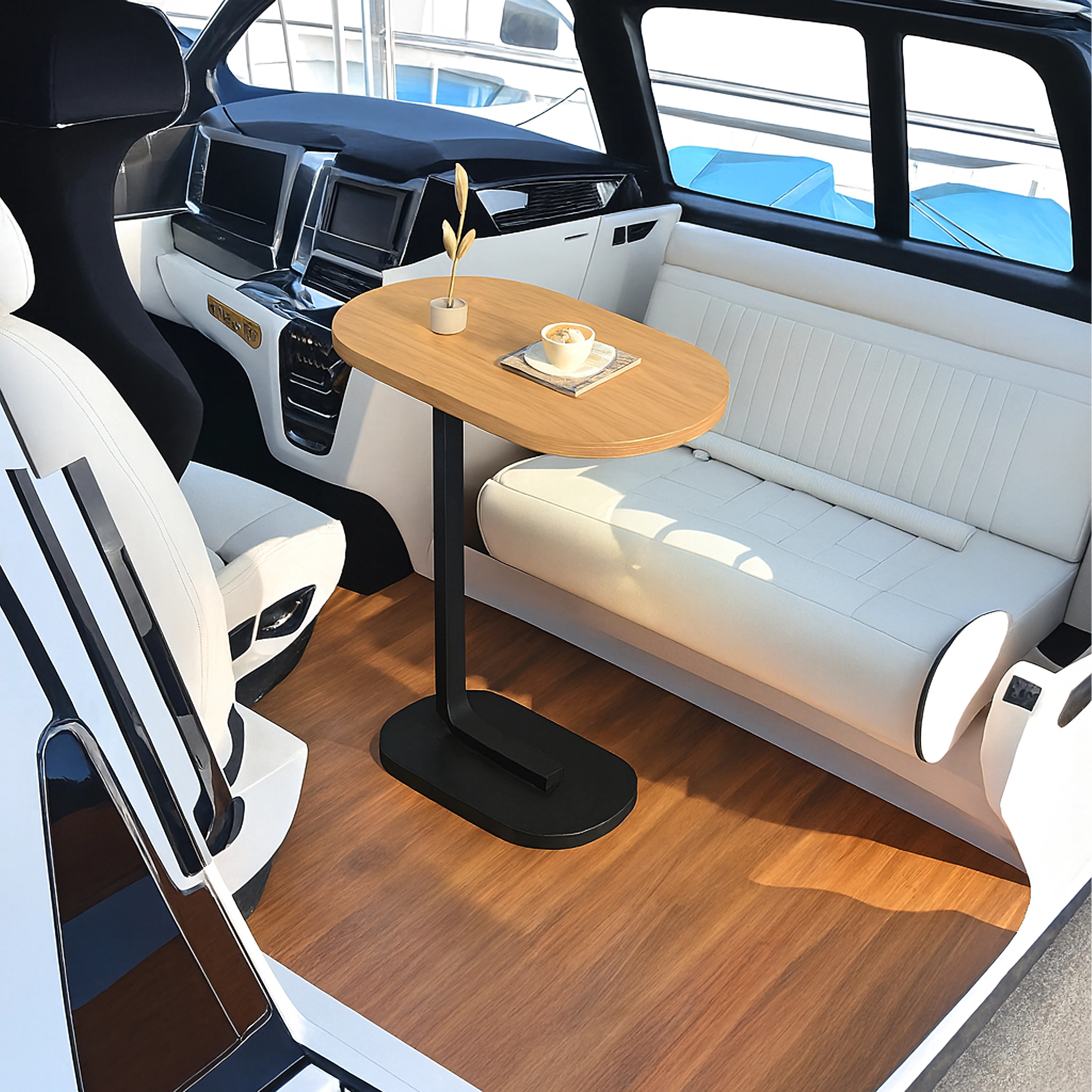 Moderný príručný stolík v tvare C je kompaktný, ľahko premiestniteľný a vďaka základni ľahko zasuniete pod pohovku či kreslo. Ponúka praktickú odkladaciu plochu na kávu, notebook aj dekorácie a skvelo zapadne do obývacej izby, spálne aj pracovne.