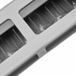 - Prehľad a poriadok: zásuvná/odklápacia lišta pre jednoduchý prístup k pohárikom.