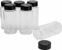 Súprava obsahuje šesť jednotných nádobiek na koreniny. Priehľadné steny uľahčujú identifikáciu obsahu a viečka udržiavajú čerstvosť.