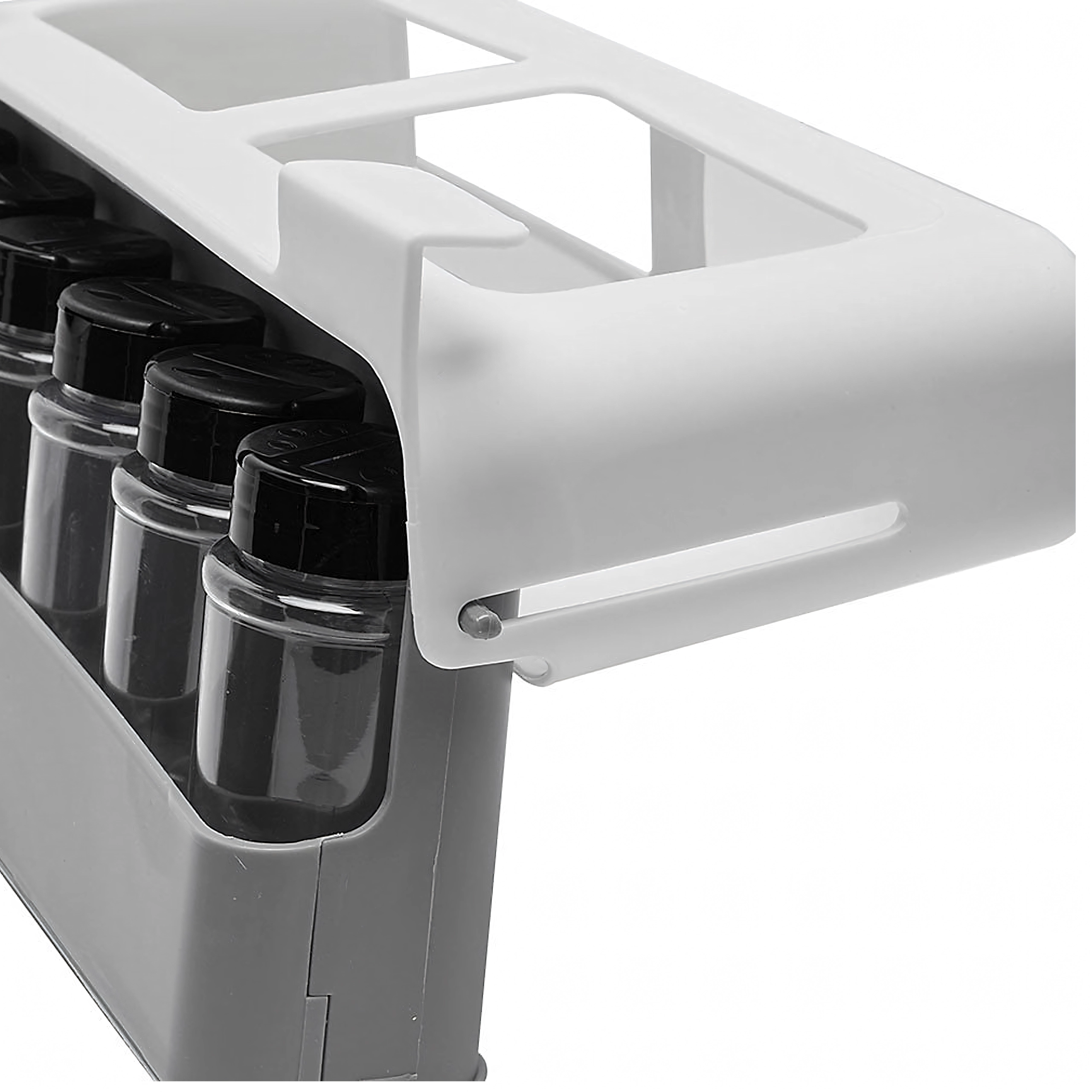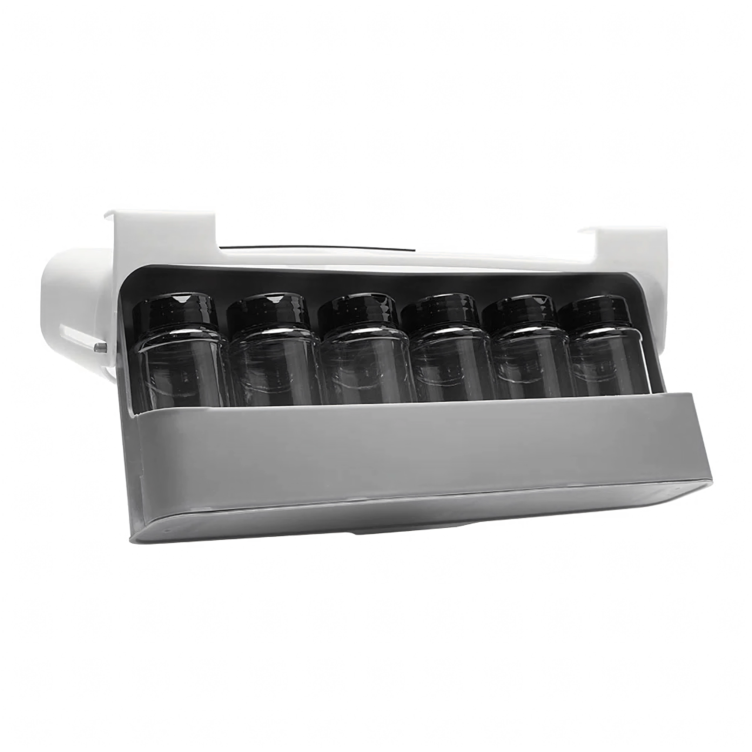 Udržte kuchyňu prehľadnú a ušetrite miesto so zásuvným organizérom na koreniny pre 6 priehľadných pohárikov, ktorý sa montuje bez vŕtania pomocou samolepiacej pásky 3M. Rýchly prístup, kompaktný dizajn a kompatibilita s väčšinou políc a skriniek robia z tohto organizéra ideálnu voľbu do každej kuchyne.