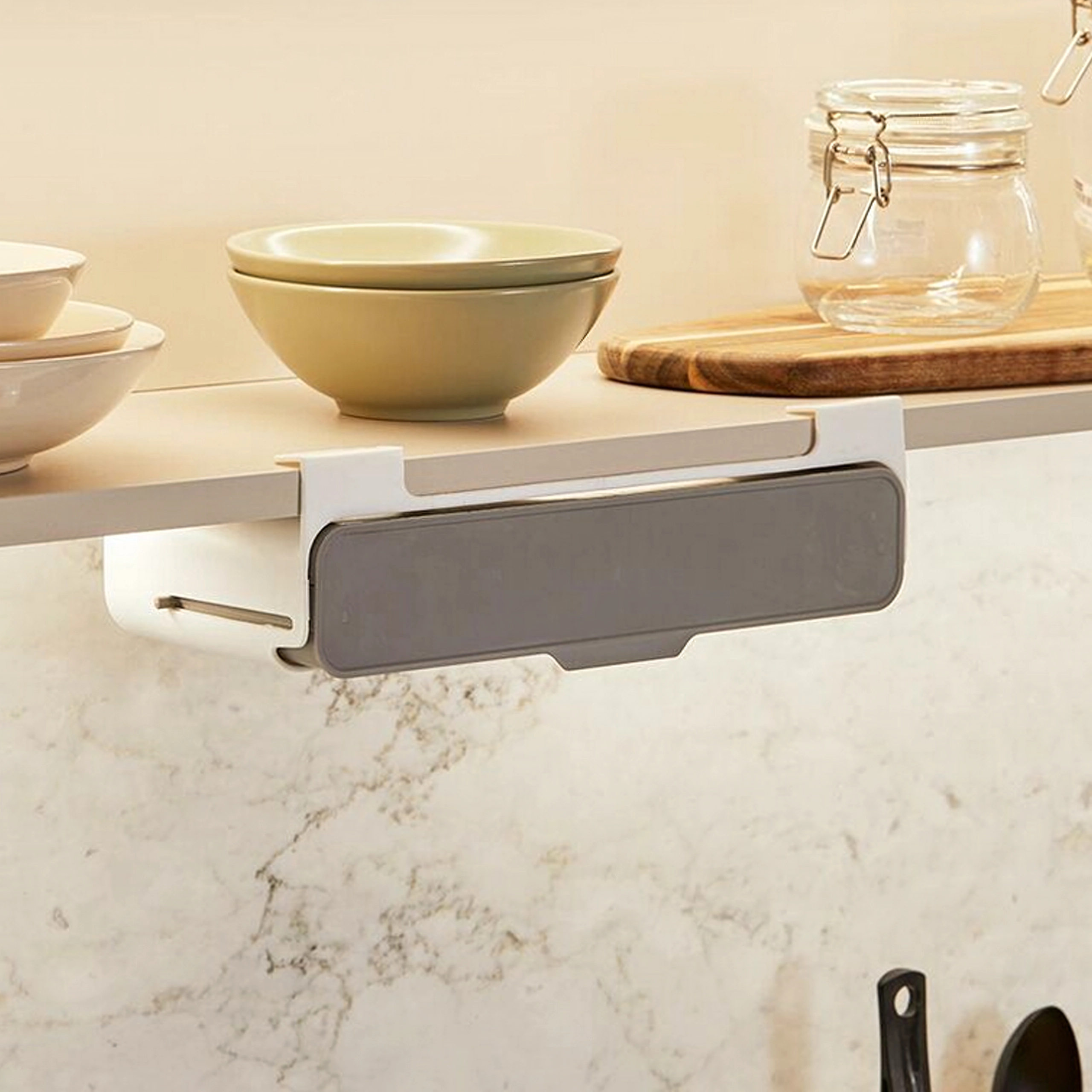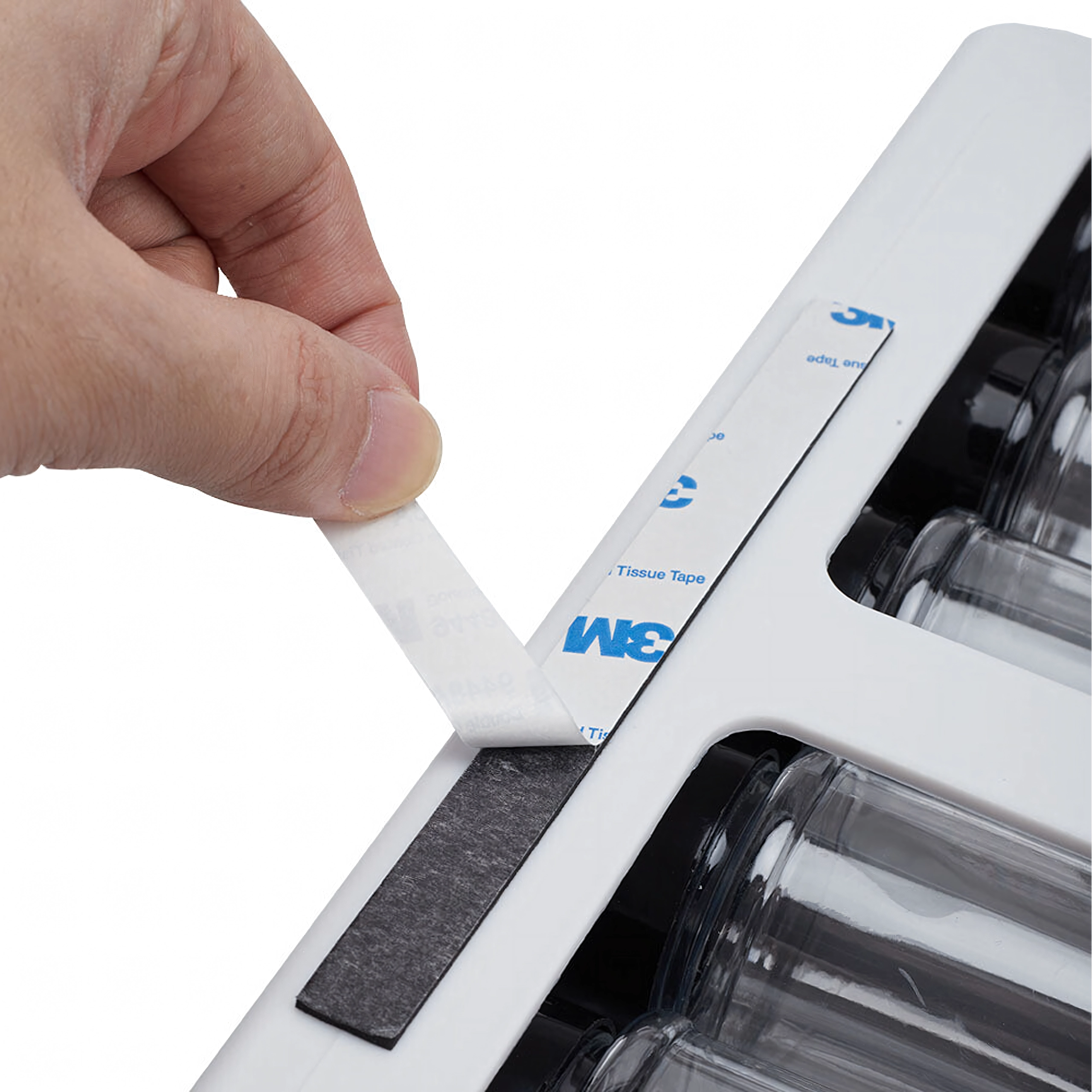 Silná samolepiaca páska 3M pevne drží organizér pod policou alebo v skrinke. Inštalácia zaberie pár minút a zaobíde sa bez náradia aj vŕtania.