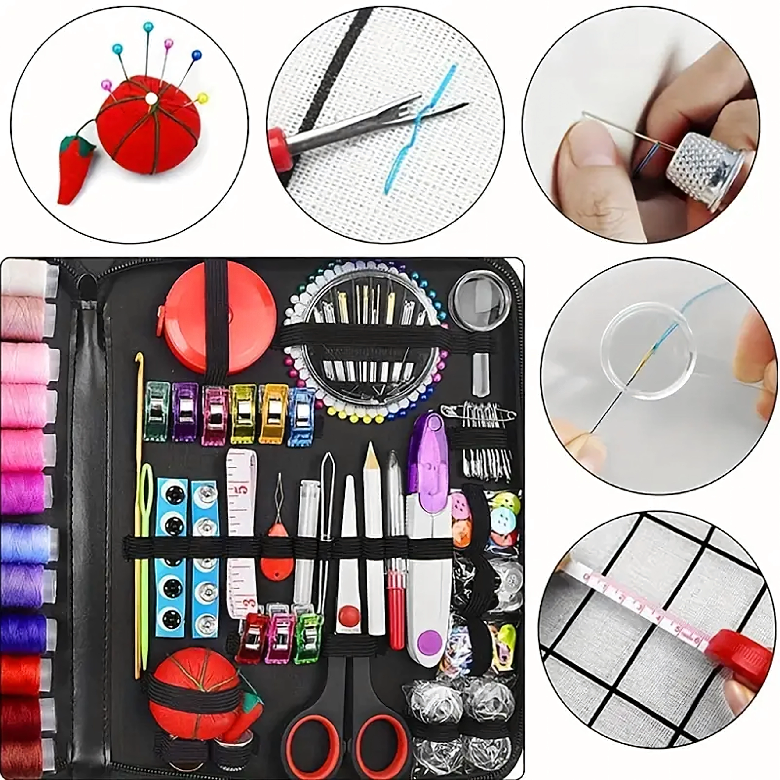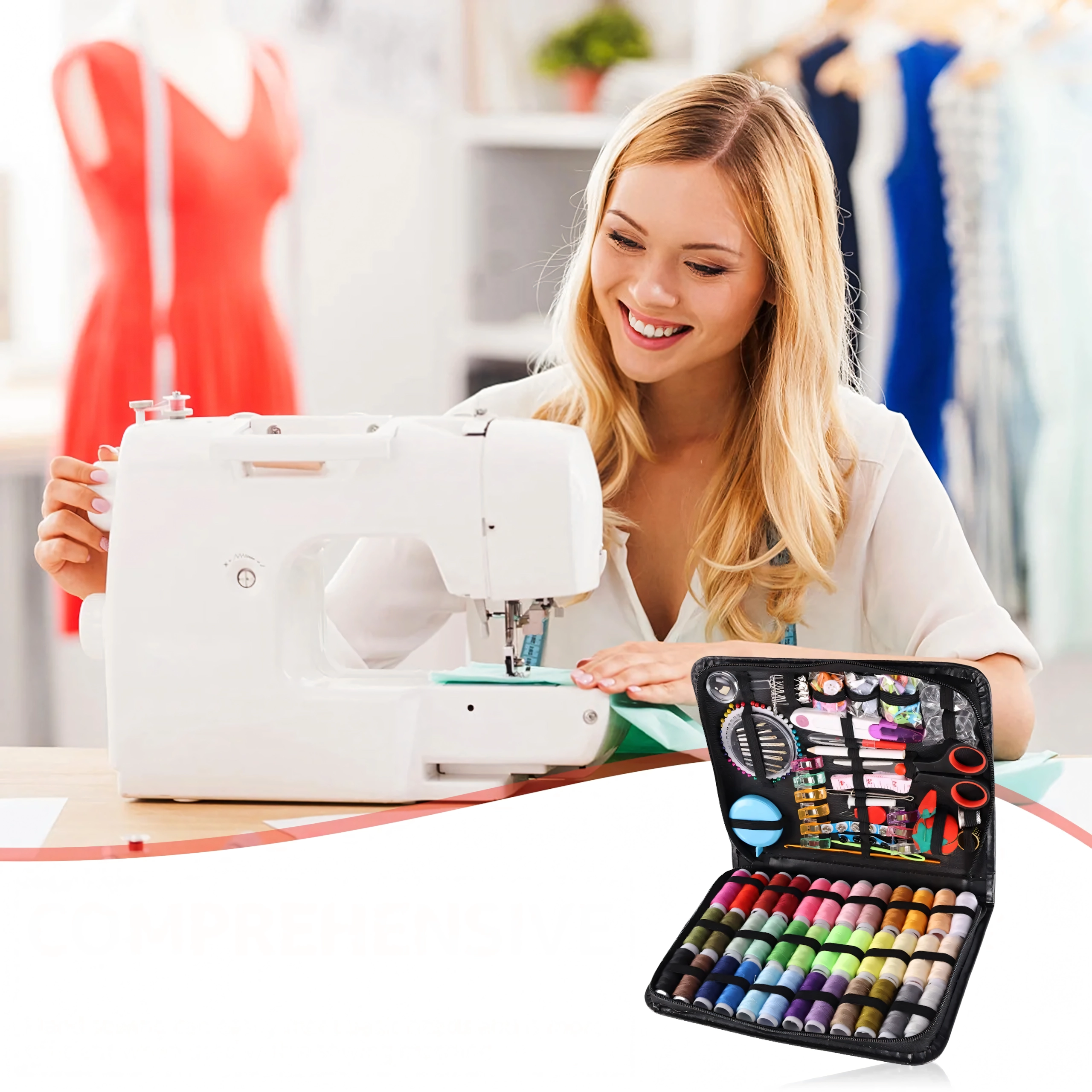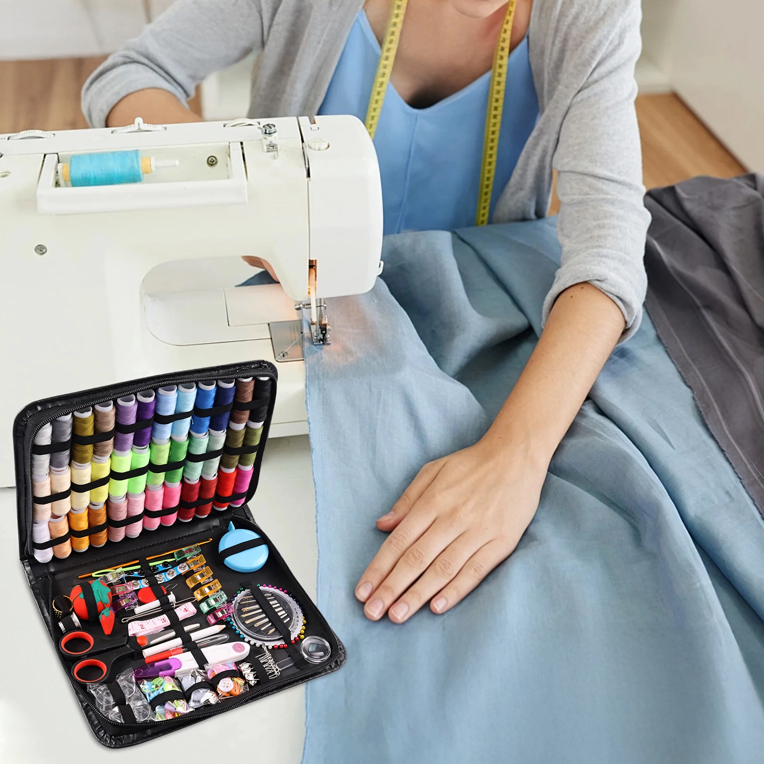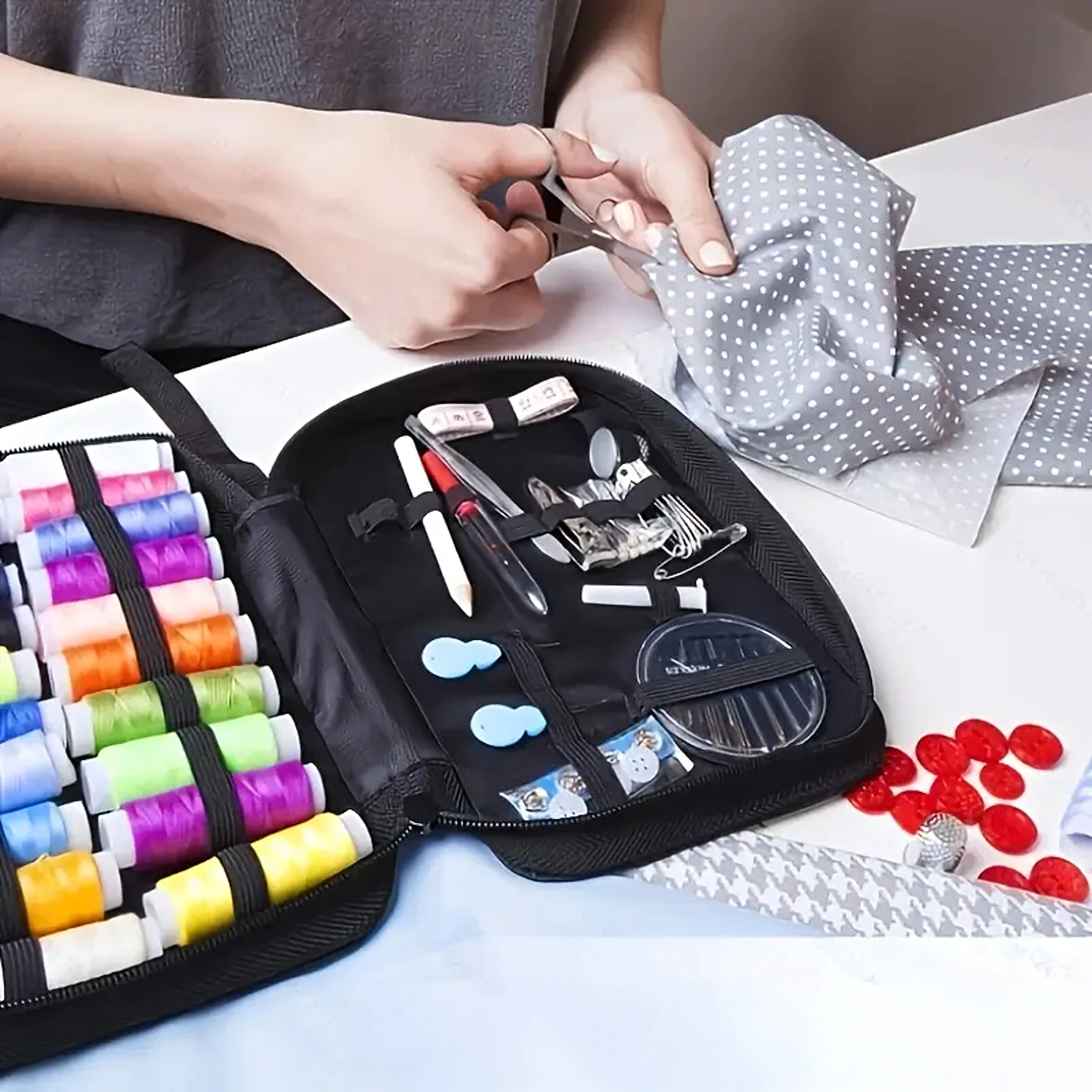 Táto prenosná šijacia sada v pevnom puzdre je navrhnutá na každodenné opravy aj kreatívne projekty. Vďaka širokej palete nití v mnohých farbách ľahko zladíte švy s vašimi odevmi a doplnkami. Organizácia pomocou elastických pások a priehradiek udržiava nástroje na svojom mieste, či už šijete doma alebo cestujete.