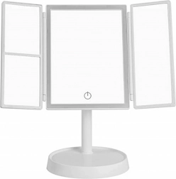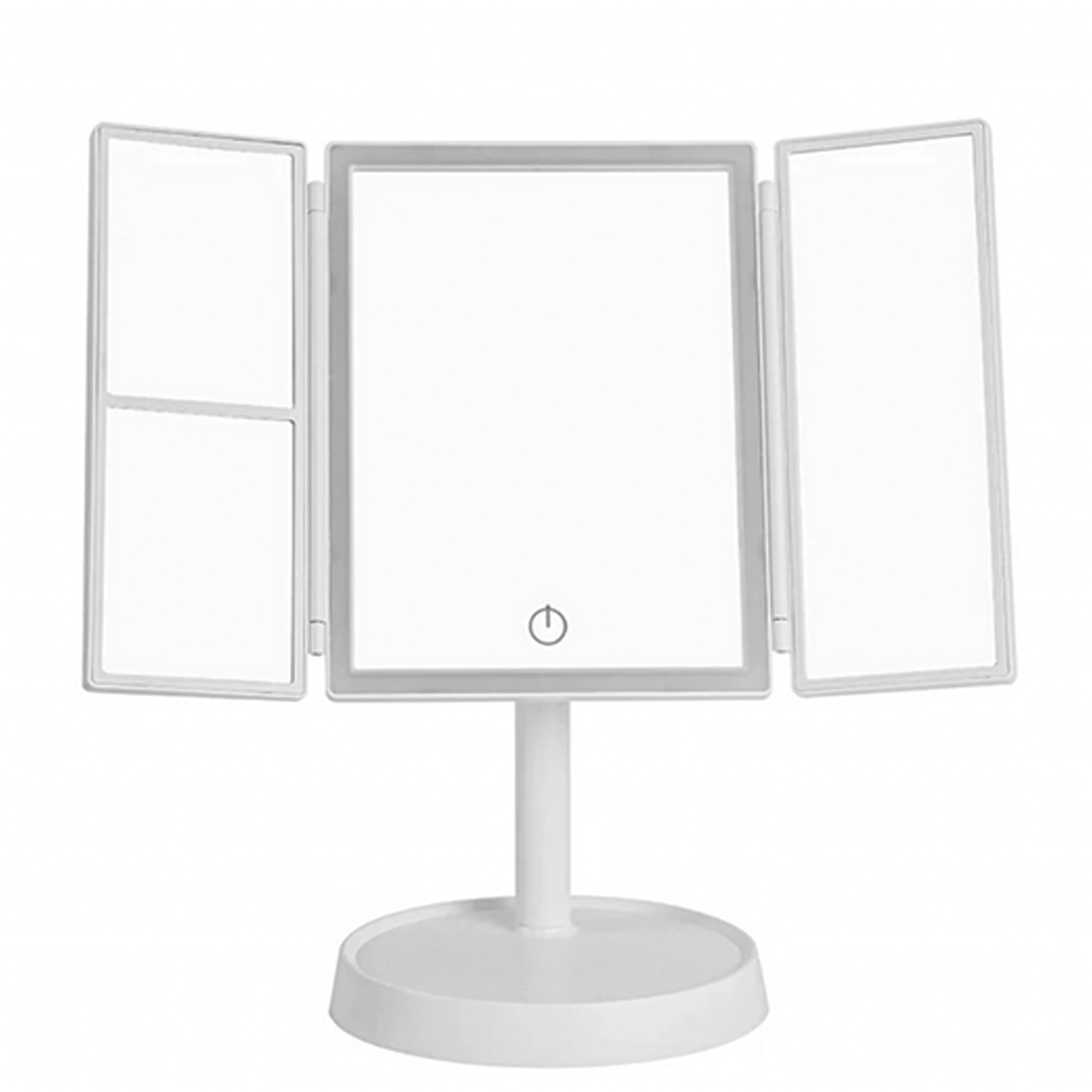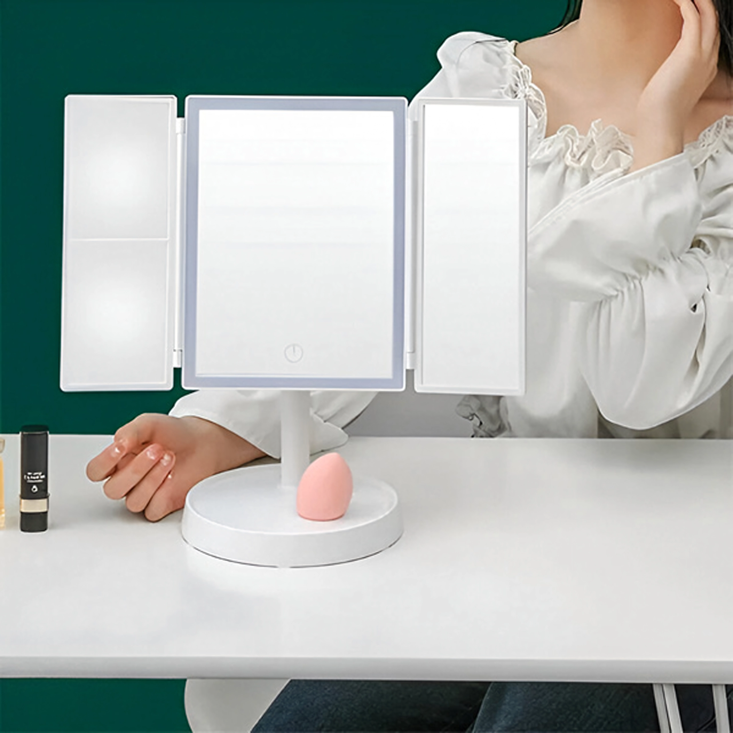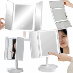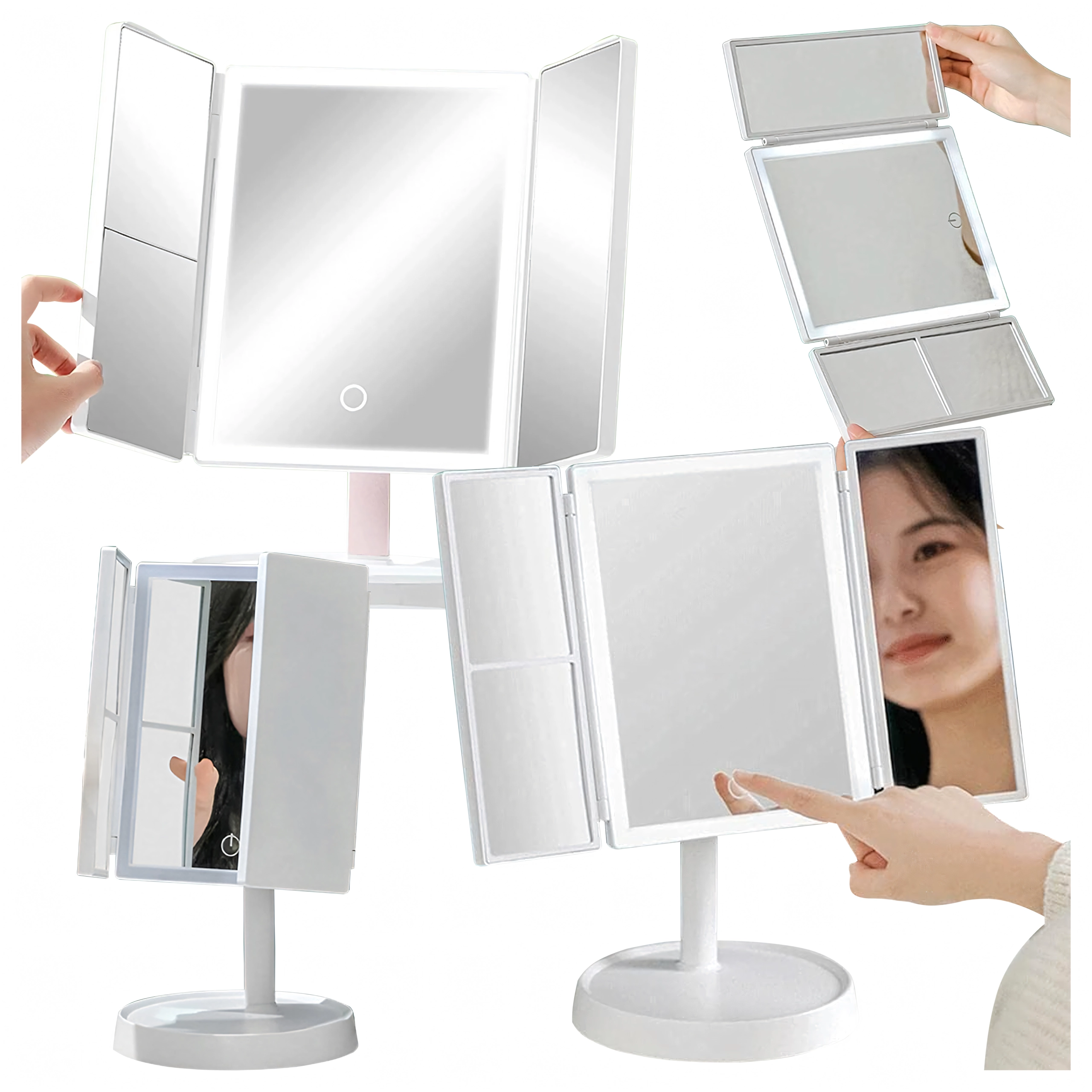 Objavte praktické a štýlové zrkadlo, ktoré vám pomôže vytvoriť bezchybný make-up kedykoľvek počas dňa. Stredový panel s dotykovým ovládaním a integrovaným LED podsvietením poskytuje jasné, rovnomerné svetlo, zatiaľ čo bočné krídla rozšíria zorné pole a uľahčia detailné úpravy.