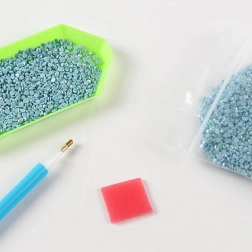 - Figúrka – základ, špeciálne lepidlo, aplikátor/perá, mištička, sada diamantových kamienkov
