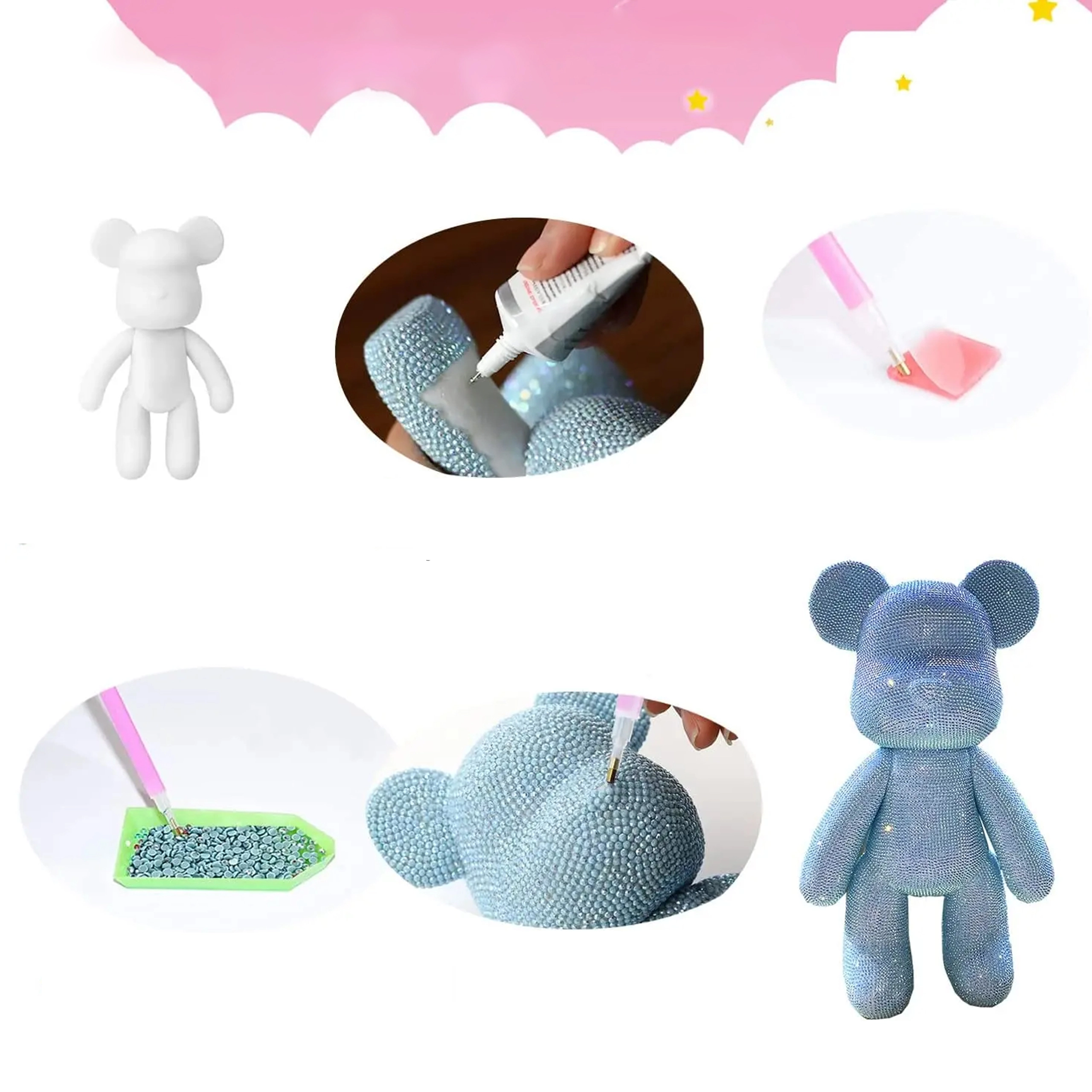 Kreatívna sada 5D diamond painting s veľkou figúrkou medvedíka s výškou 38 cm na tvorenie žiarivej dekorácie. Obsahuje farebné kamienky, aplikátor, lepidlo a mištičku na jednoduché vykladanie. Ideálny darček pre deti aj dospelých, farba kamienkov je zasielaná náhodne.