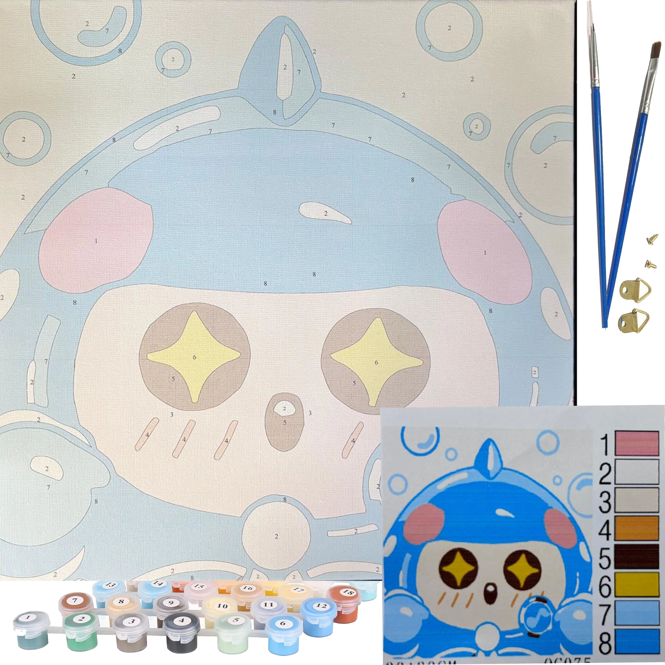 - Plátno na ráme, očíslované akrylové farby, štetce, závesné príslušenstvo