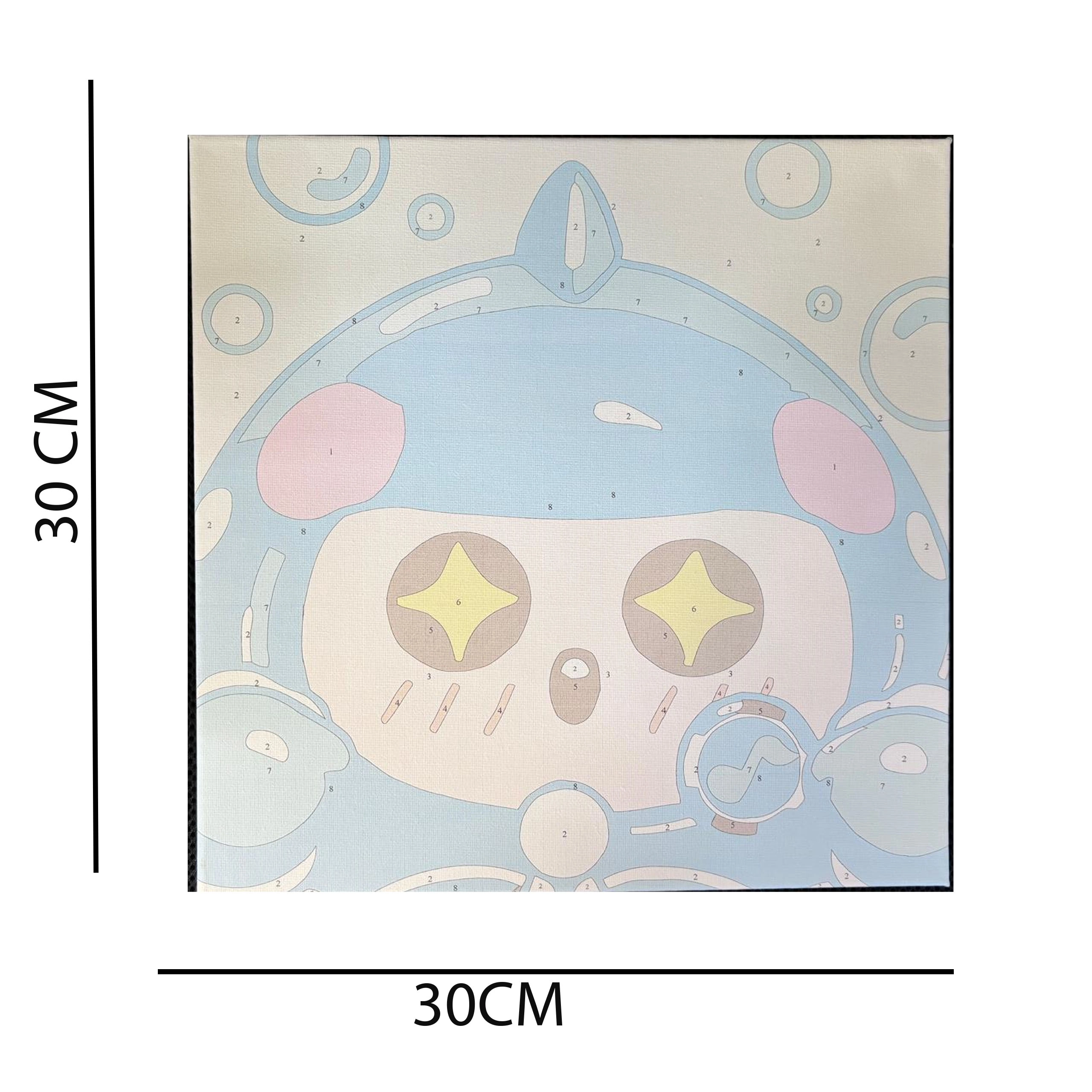 - Kompletná sada: plátno 30 × 30 cm na ráme, očíslované akrylové farby, 2 štetce, závesné príslušenstvo.