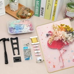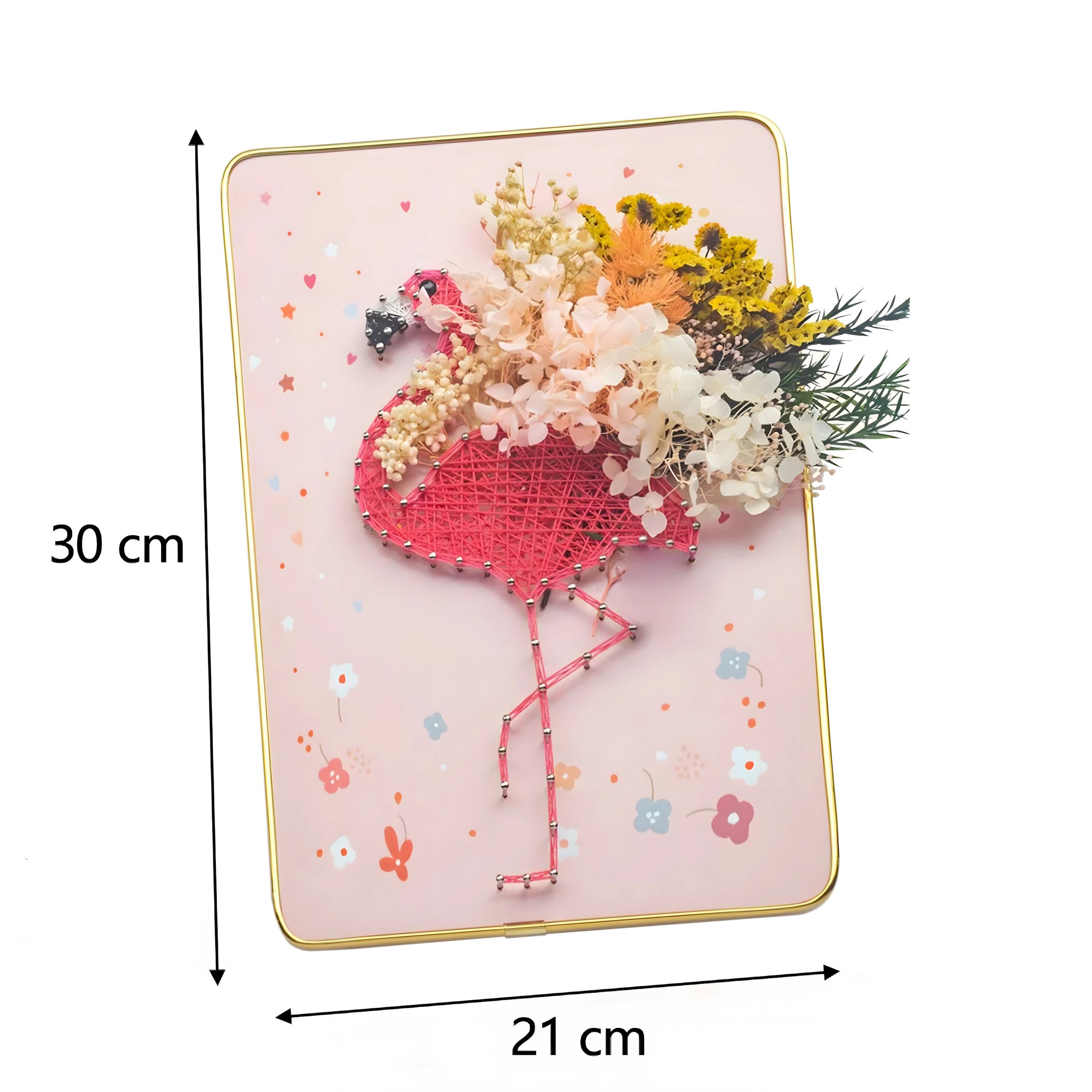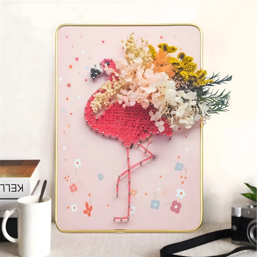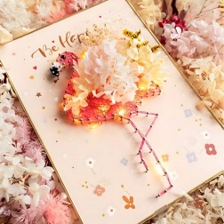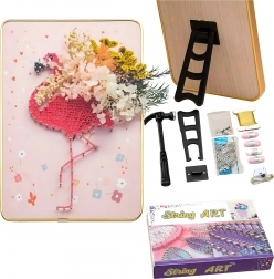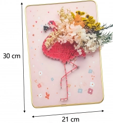 Táto kreatívna sada pre string art (omotávanie nití okolo klincov) vám umožní jednoducho vytvoriť štýlový obraz s motívom plameniaka a kvetov. Hotový obraz môžete zavesiť na stenu alebo postaviť na poličku. Integrované LED osvetlenie rozžiari výsledný motív a premení ho na pôsobivú svetelnú dekoráciu.