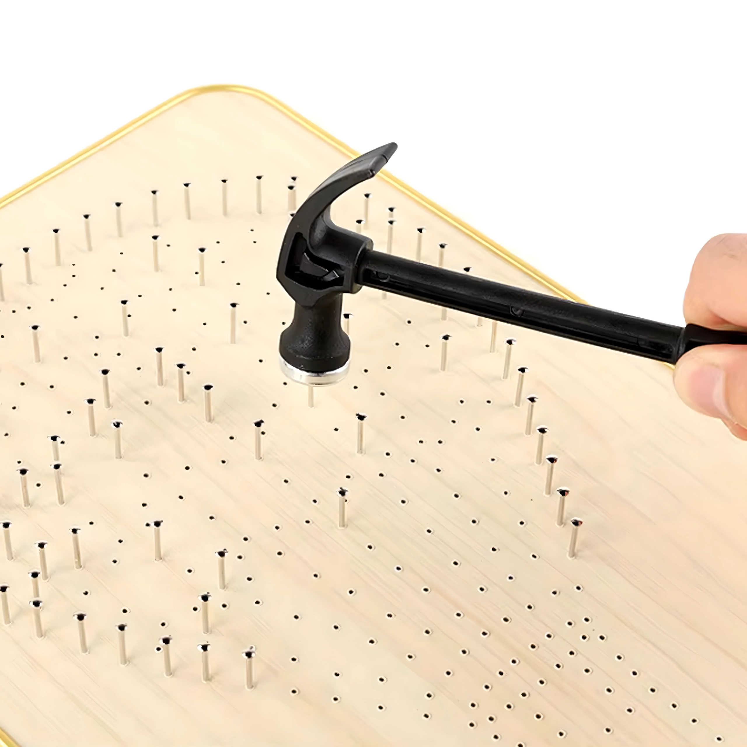 Mriežka pripravených otvorov a malé klince urýchlia prácu a spresnia tvarovanie motívu. Vhodné aj pre začiatočníkov a deti pod dohľadom.