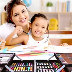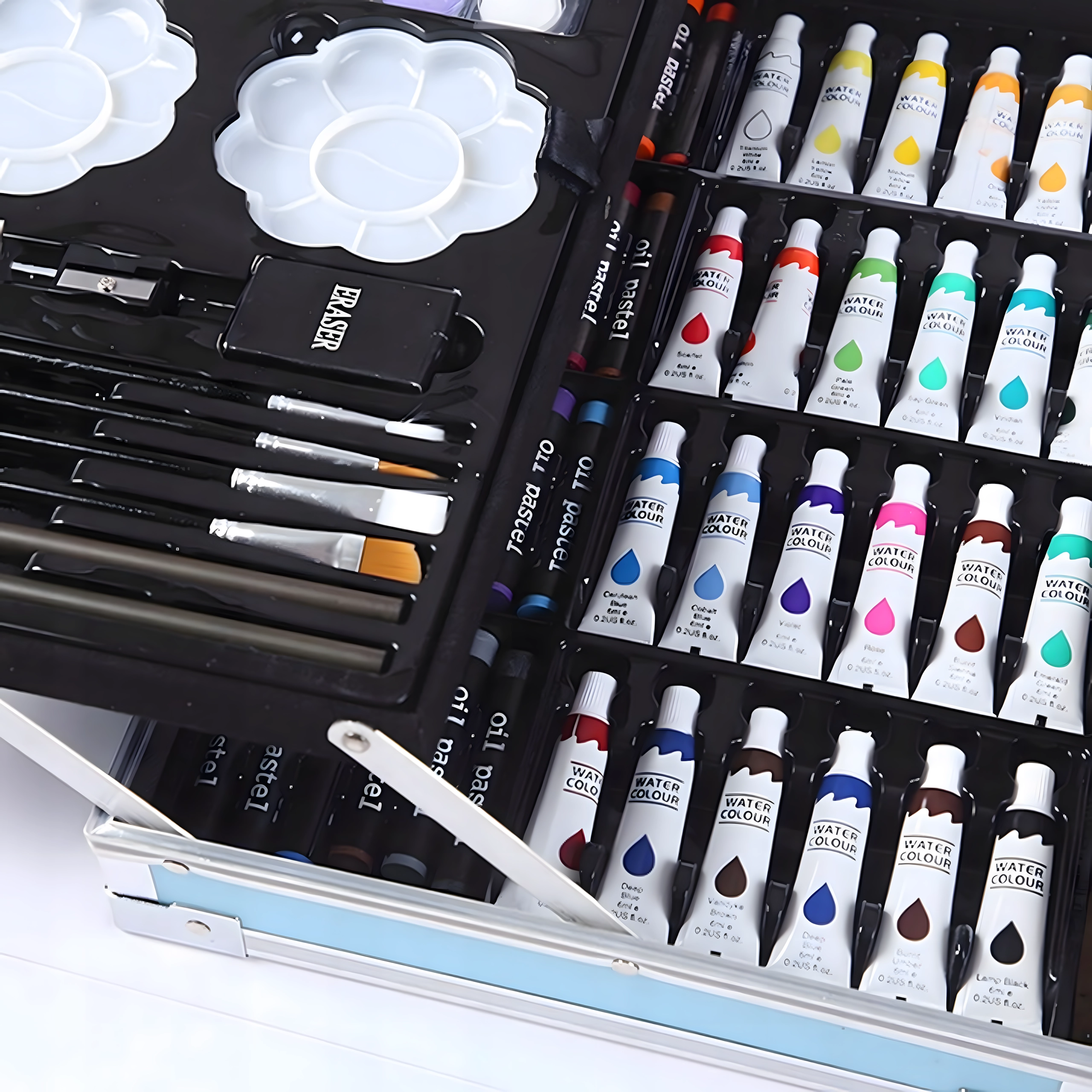 Táto kompletná výtvarná sada v pevnom prenosnom kufríku ponúka všetko, čo deti aj začínajúci umelci potrebujú na rozvoj fantázie. Nájdete v nej farebné pastelky, fixky, voskovky, olejové pastely, akvarelové tablety aj tuby farieb, štetce, palety a ďalšie nevyhnutné pomôcky. Vďaka premyslenej organizácii má každý kus svoje miesto a tvorenie je tak prehľadné a pohodlné.