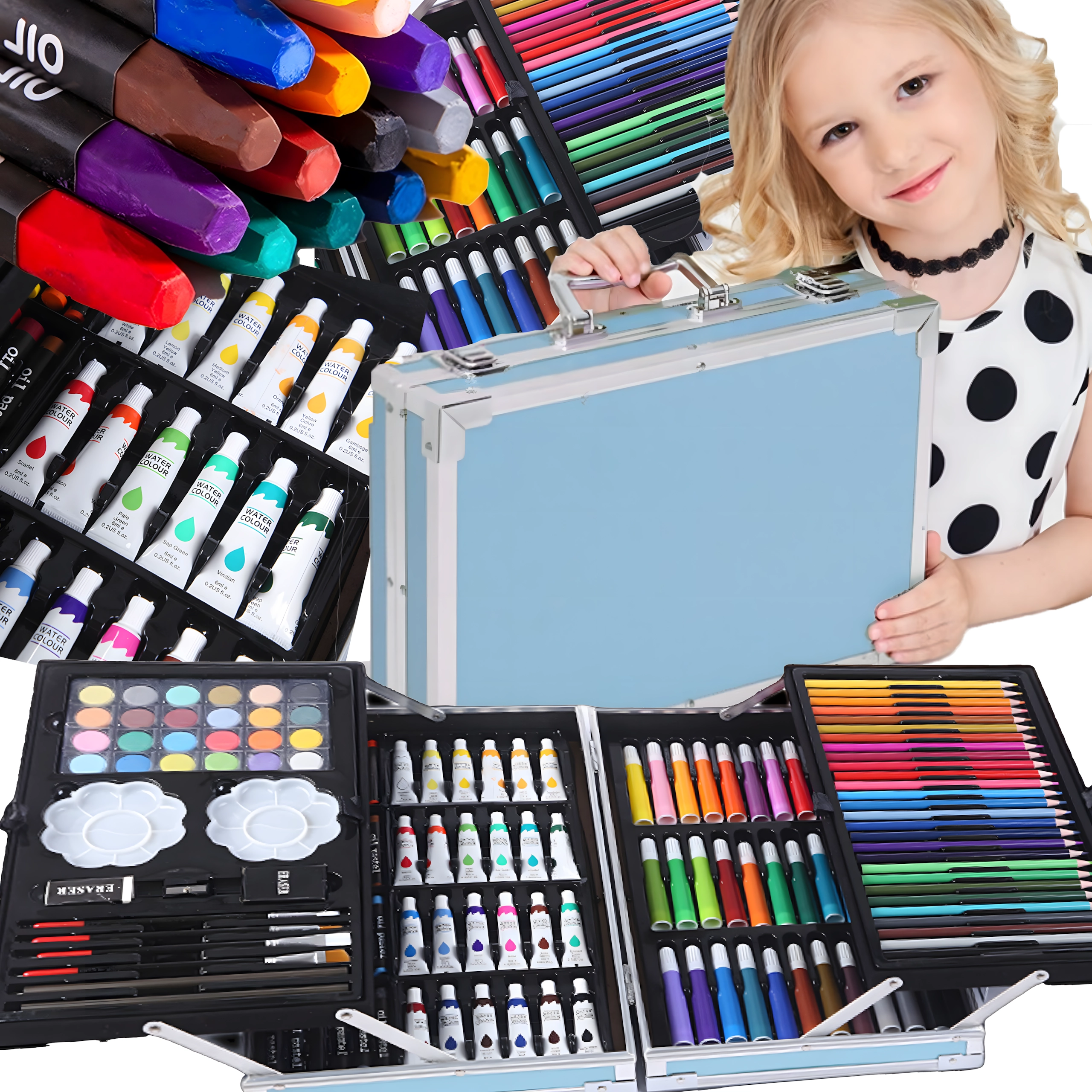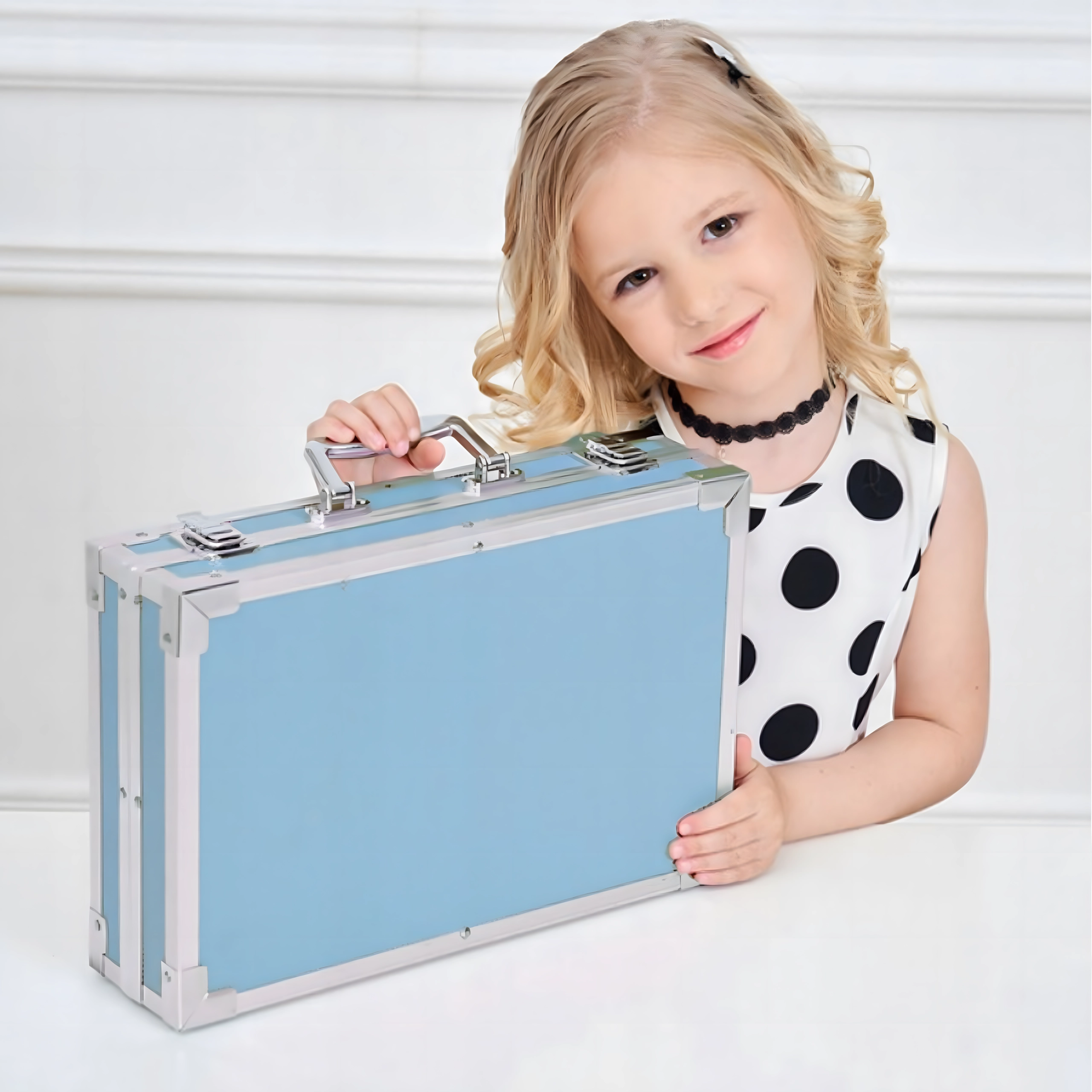 Od prvých čiar až po komplexné obrázky – sada je perfektná na domáce tvorenie, školské projekty aj darčeky. Pevný kufrík s kovovým držadlom a zámkami zaistí bezpečné uloženie a jednoduché prenášanie. Bohatá výbava podporuje jemnú motoriku, sústredenie a kreativitu detí.