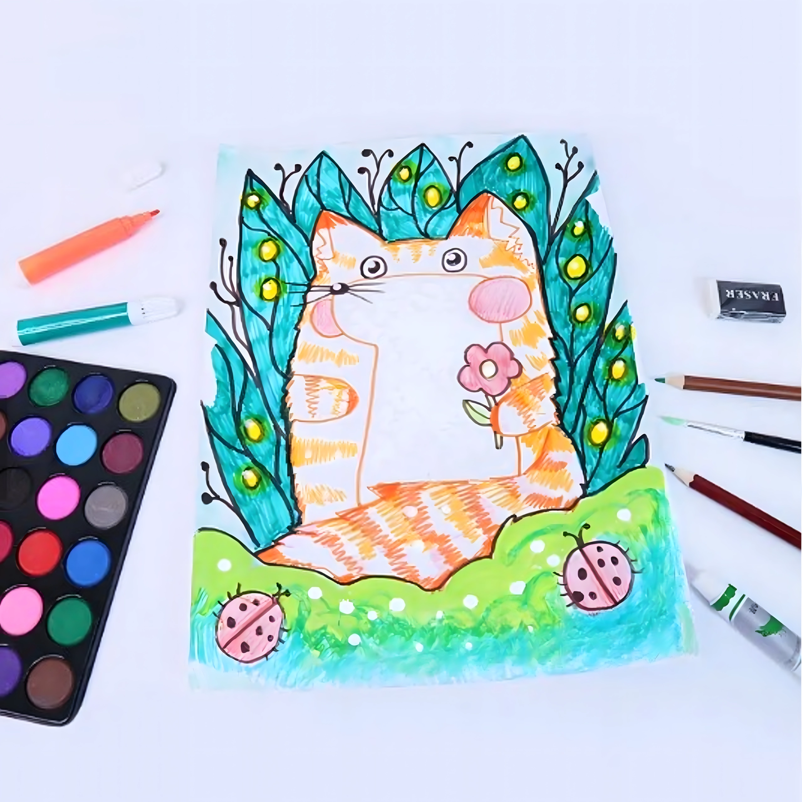 Sada kombinuje pastelky, fixky, voskovky, olejové pastely, akvarely, štetce, palety aj doplnky. Deti majú vždy po ruke správny nástroj na každý nápad.